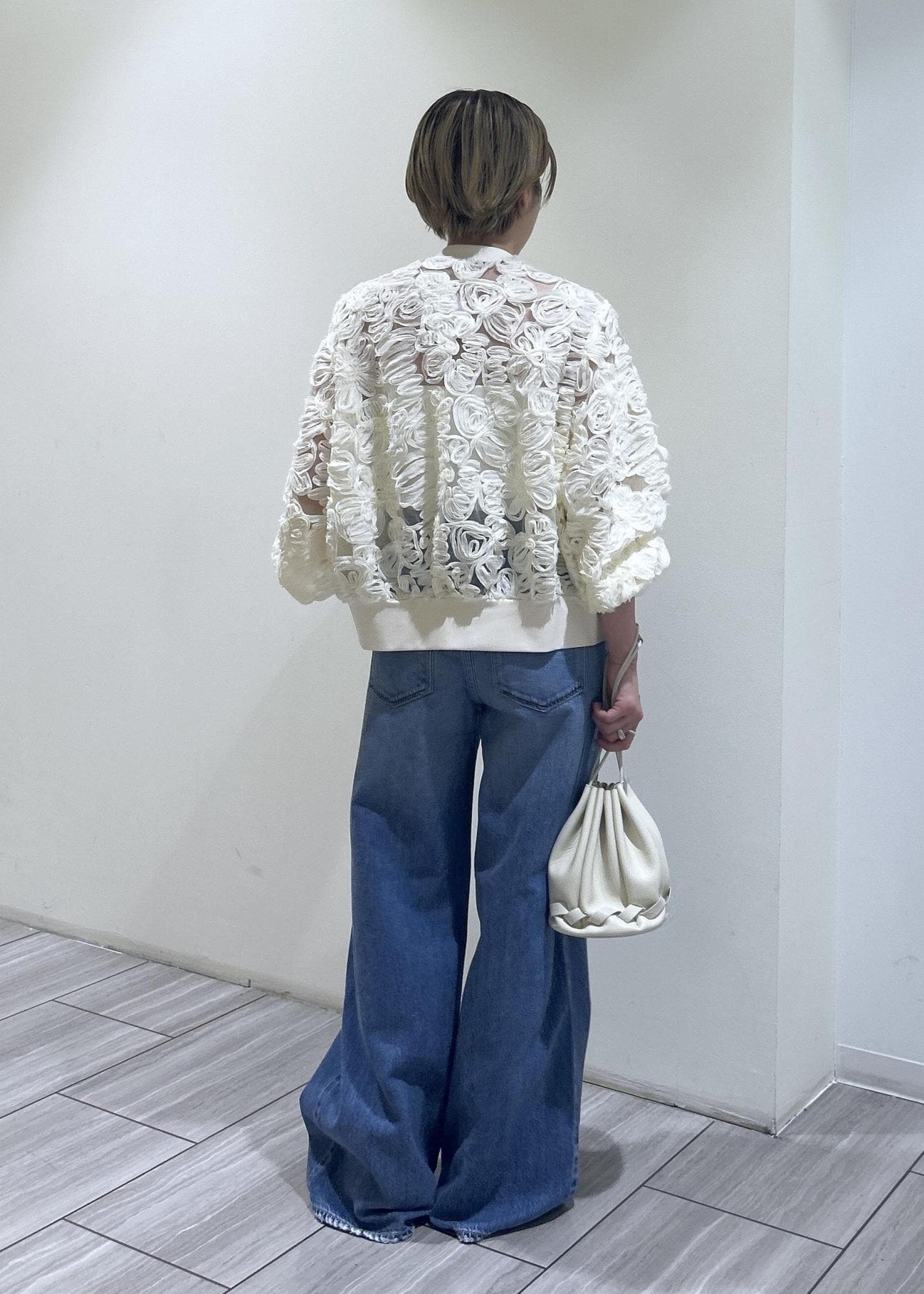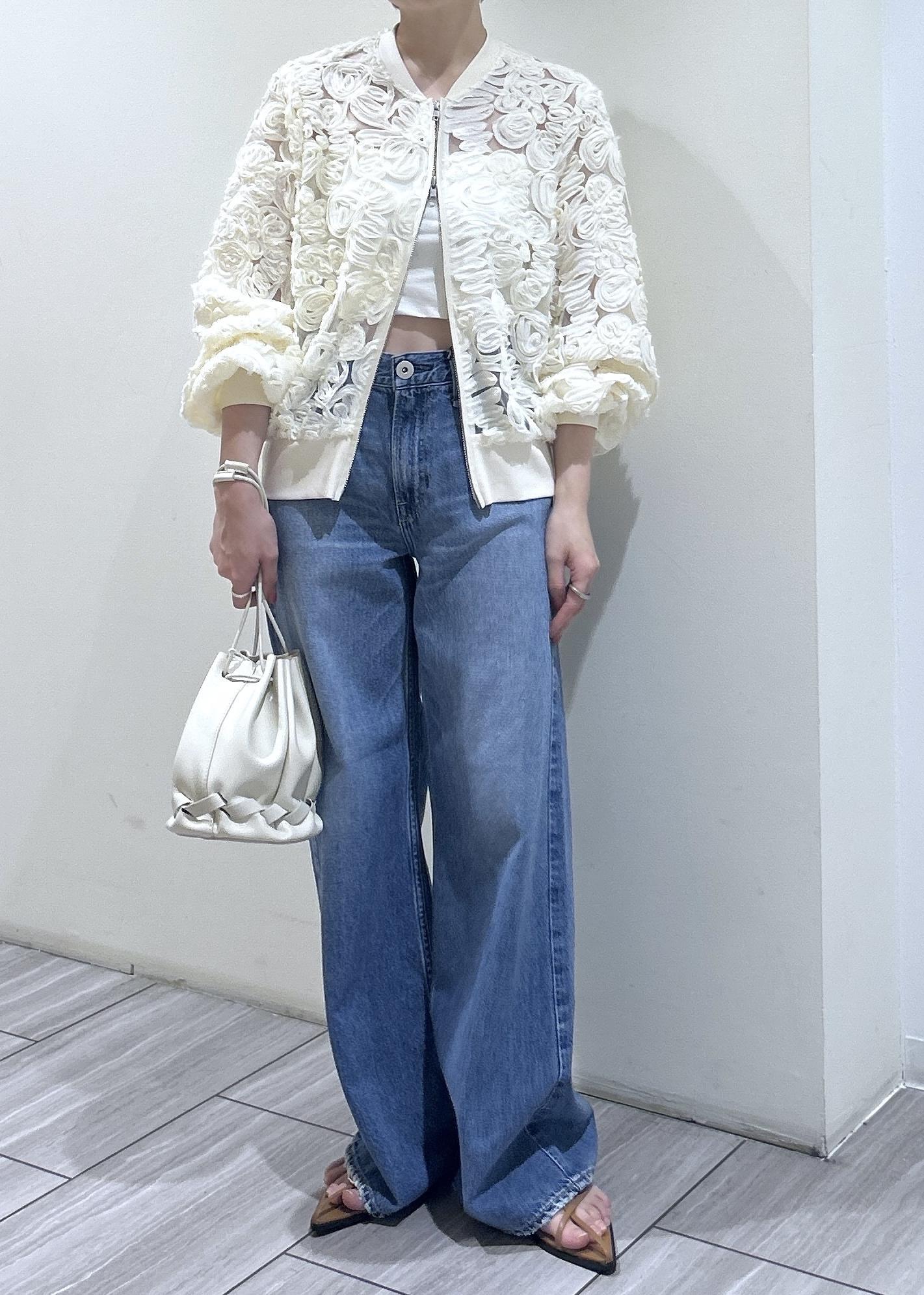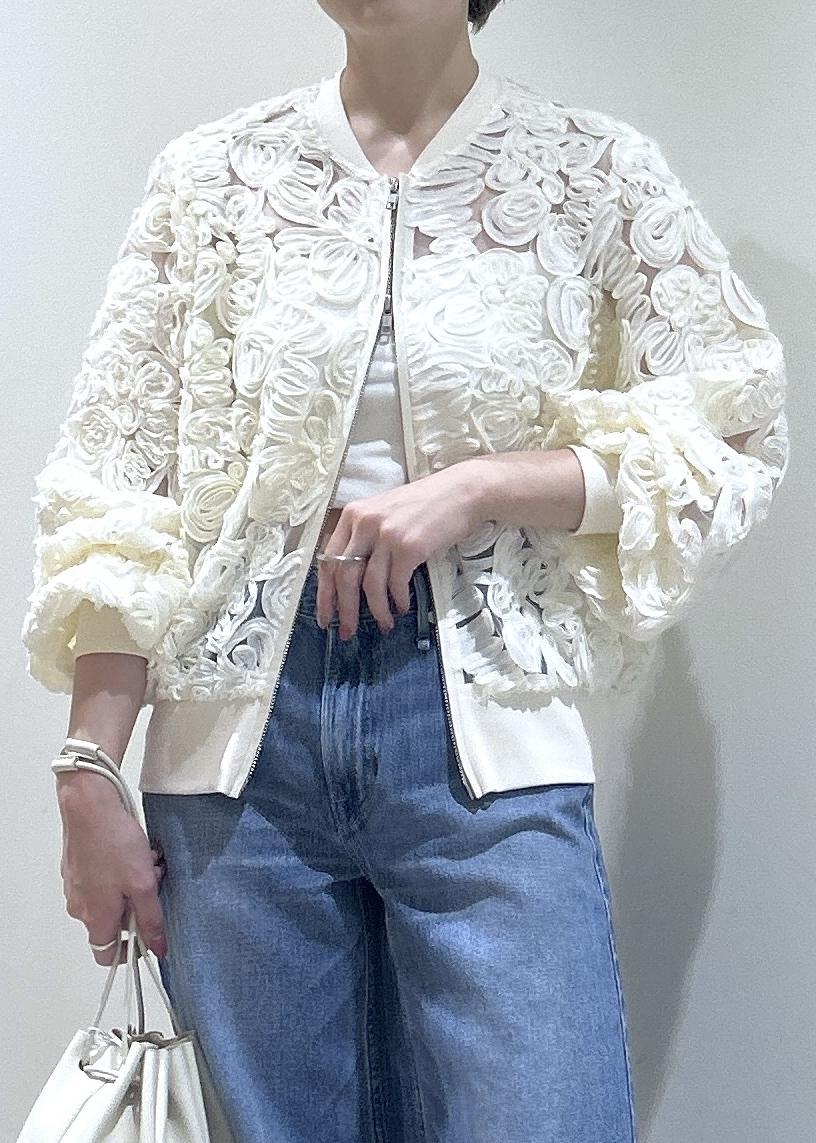 ADAM ET ROPÉ FEMMEラインアートレースブルゾンキナリ / F¥19,800レビューZIPタイプなので甘くなりすぎず、カジュアルなアイテムとも相性◎ボリューム感も強くないので、小柄でもバランス良く着用できます!