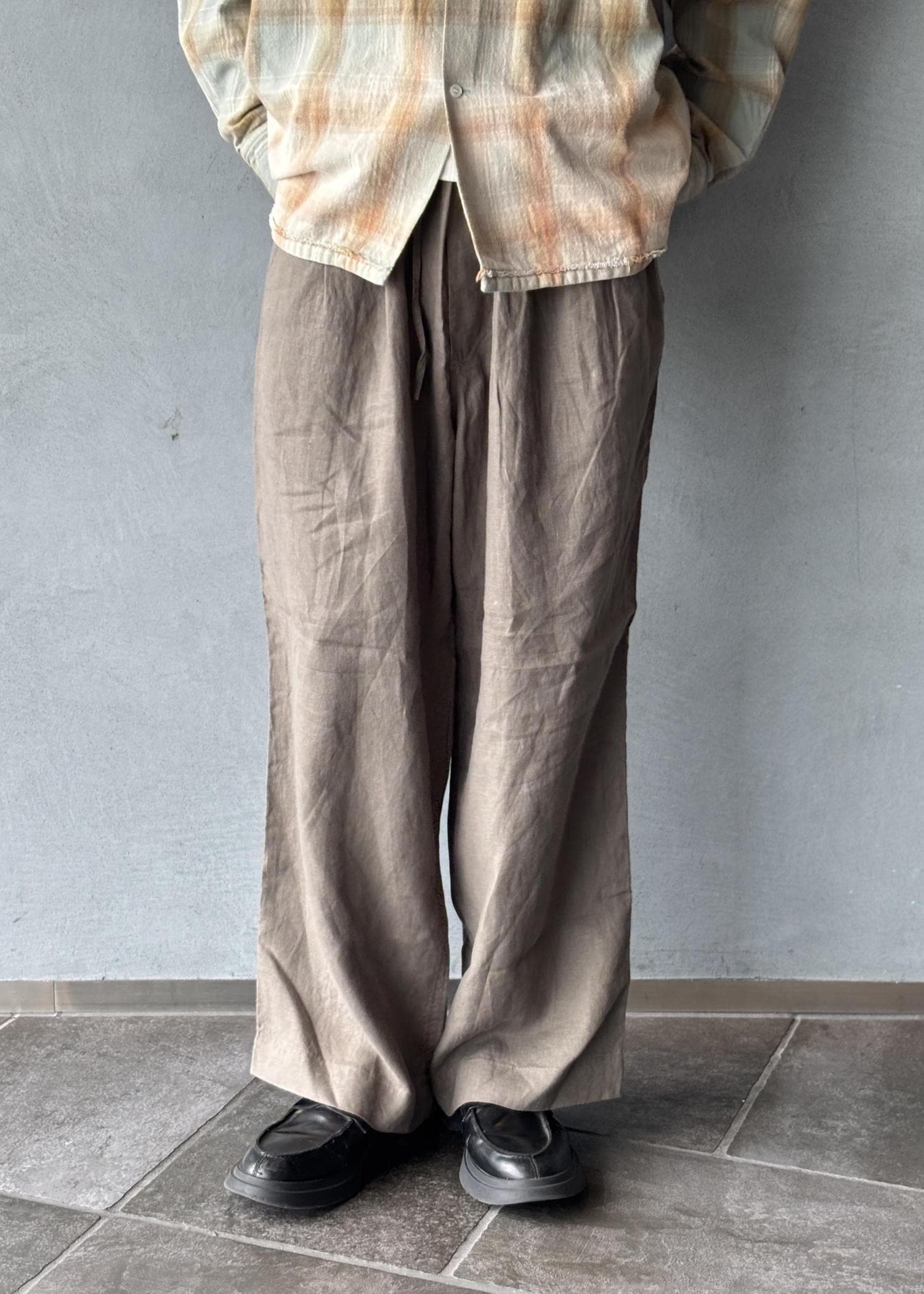 ADAM ET ROPÉ HOMMEワイドイージー リネンパンツ / セットアップ対応チャコール / L¥19,800レビューリネンの薄くて軽い素材感。