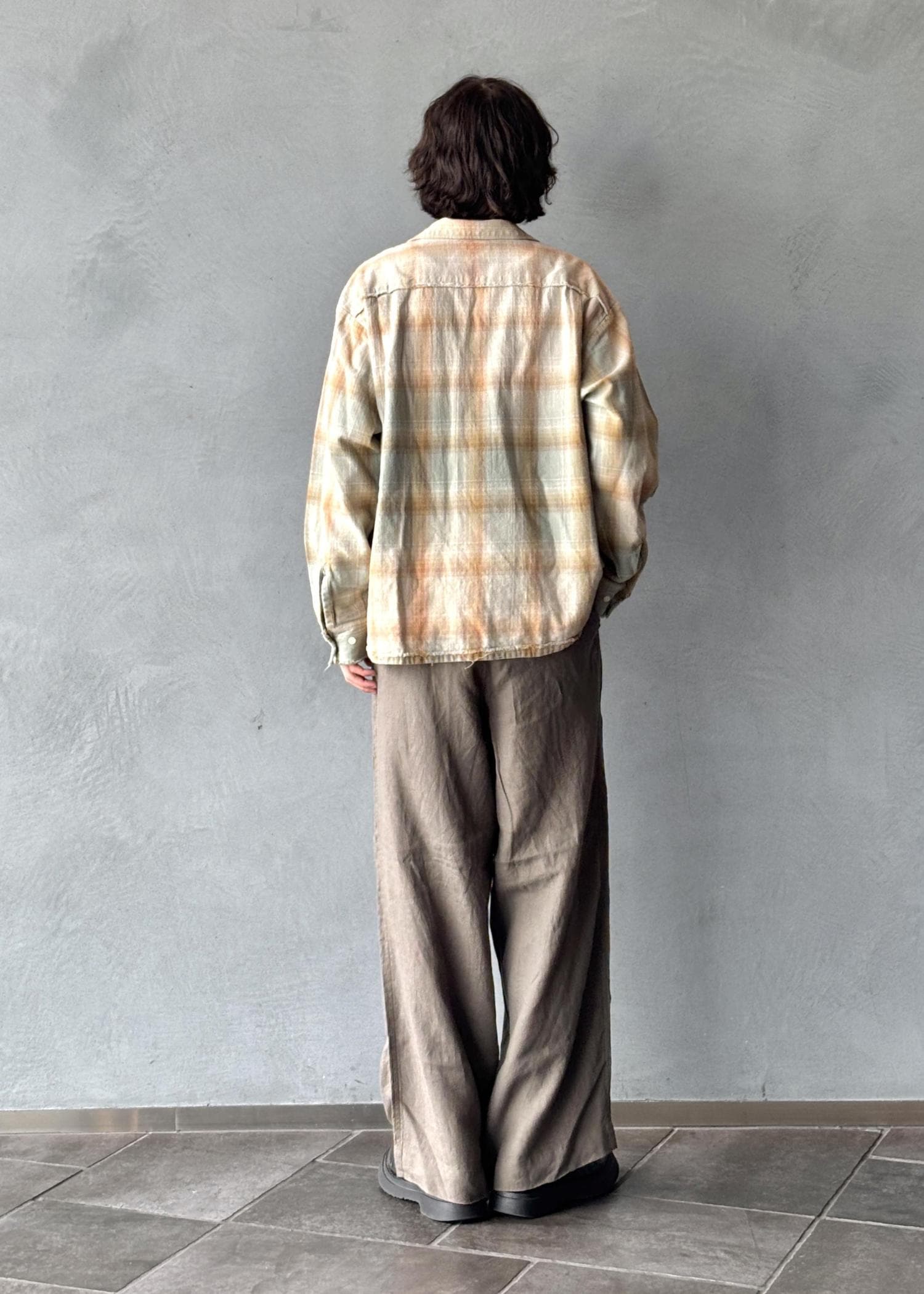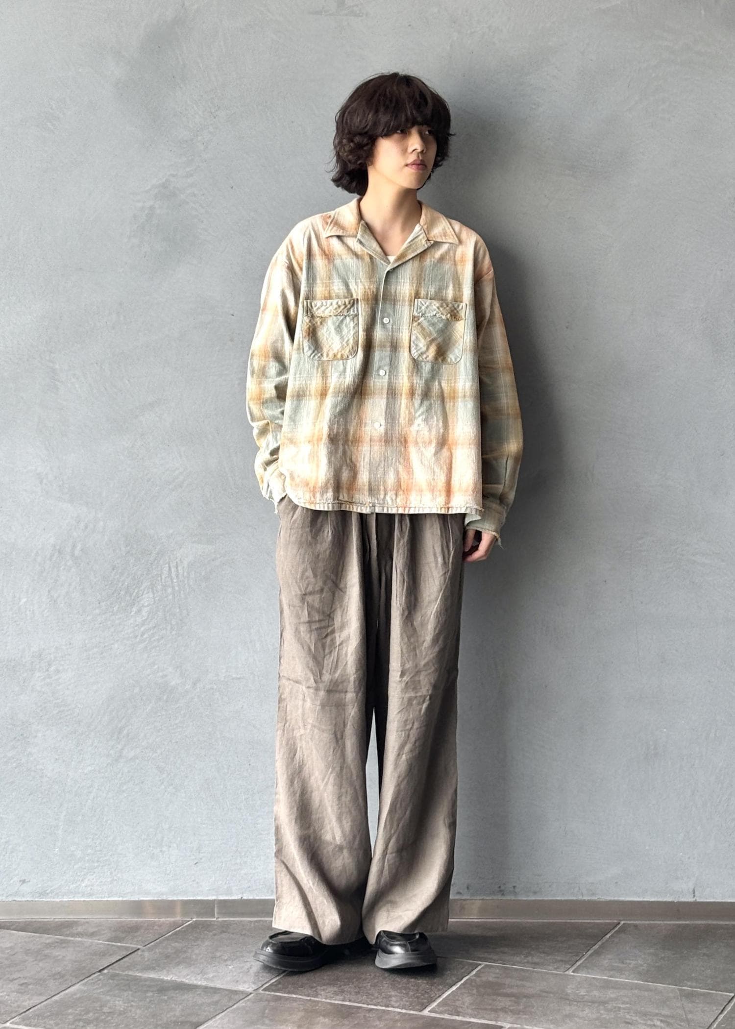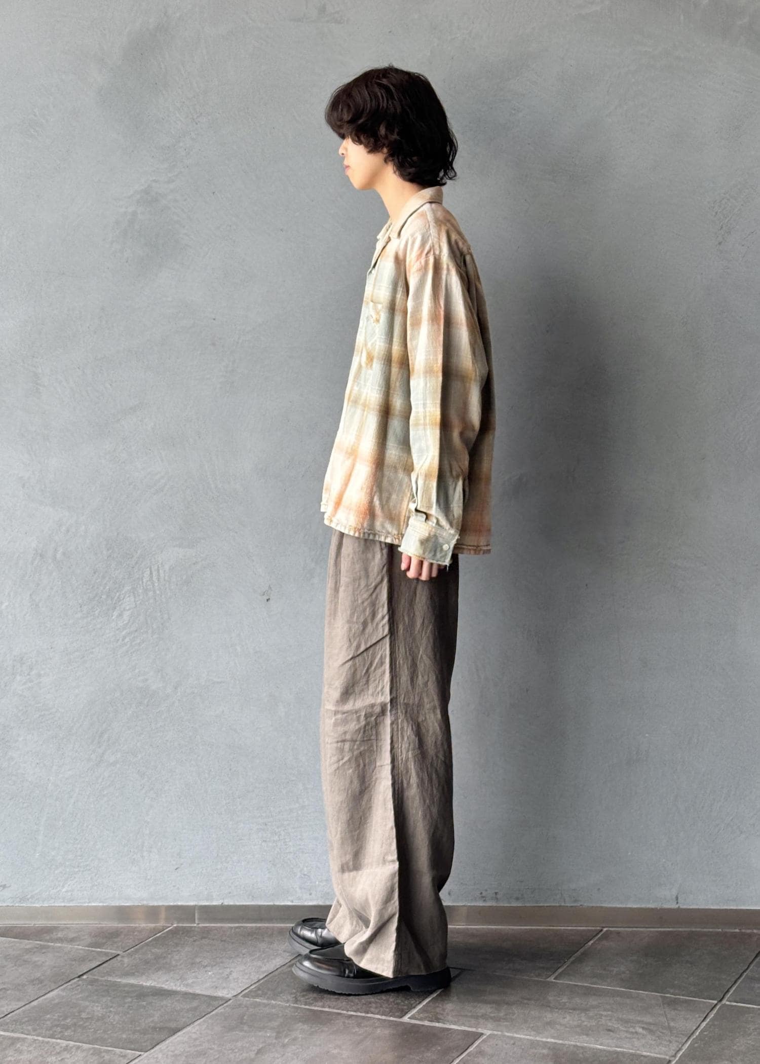 パンツにはオリジナルのリネンワイドイージーパンツを合わせ、軽やかでストレスのない穿き心地に。ゆとりのあるシルエットとリネン特有の風合いが、自然な抜け感を演出してくれます。