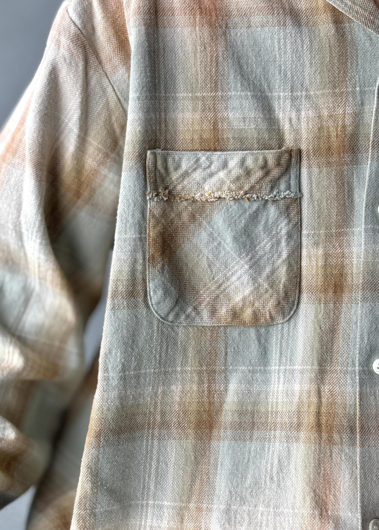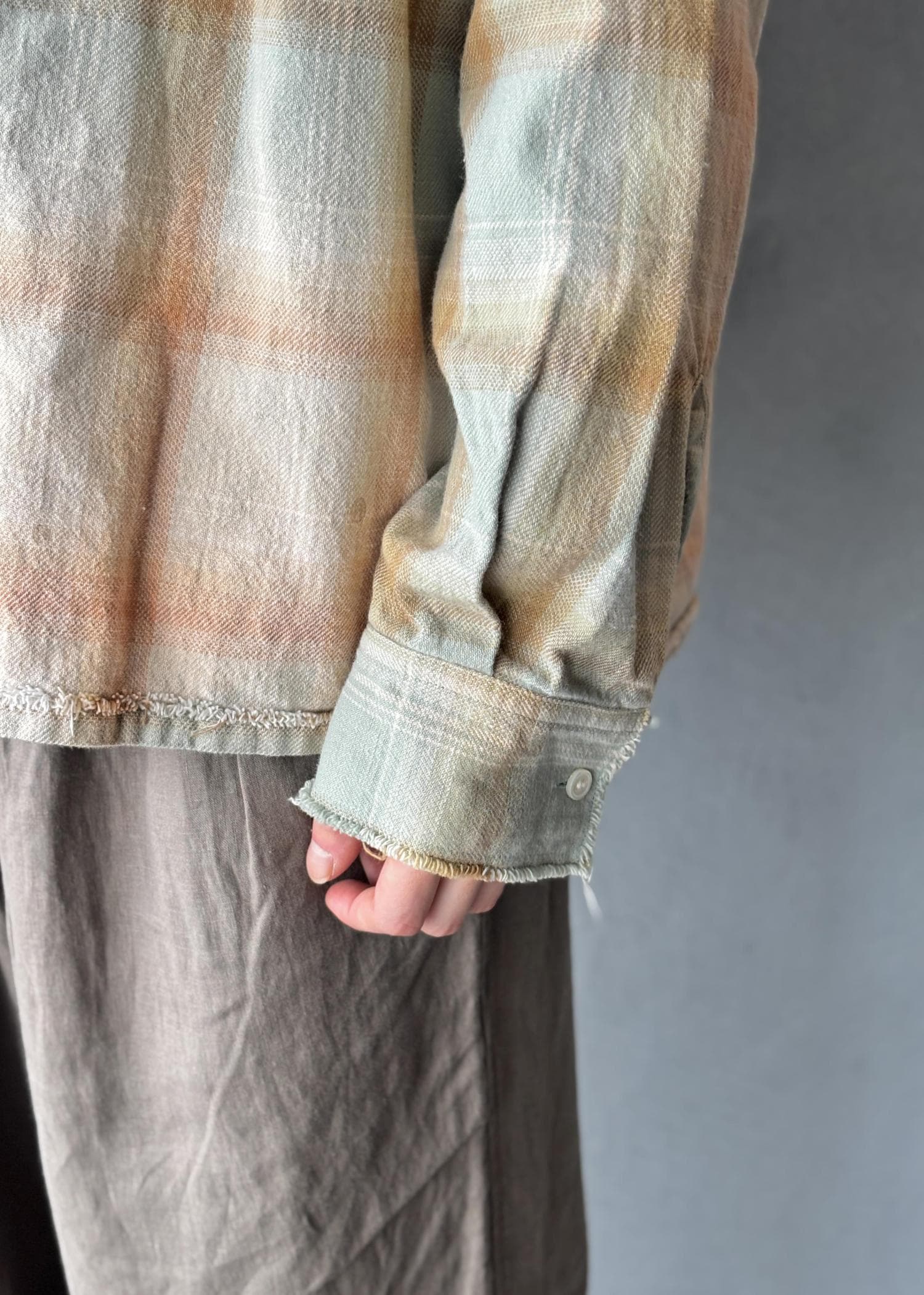主役は、今季より新たに入荷したName.の開襟チェックシャツ。柔らかな配色と程よい存在感のあるチェック柄が、シンプルなコーディネートの中でさりげないアクセントに。落ち着いたトーンの中に変化を加え、全体に奥行きを持たせています。