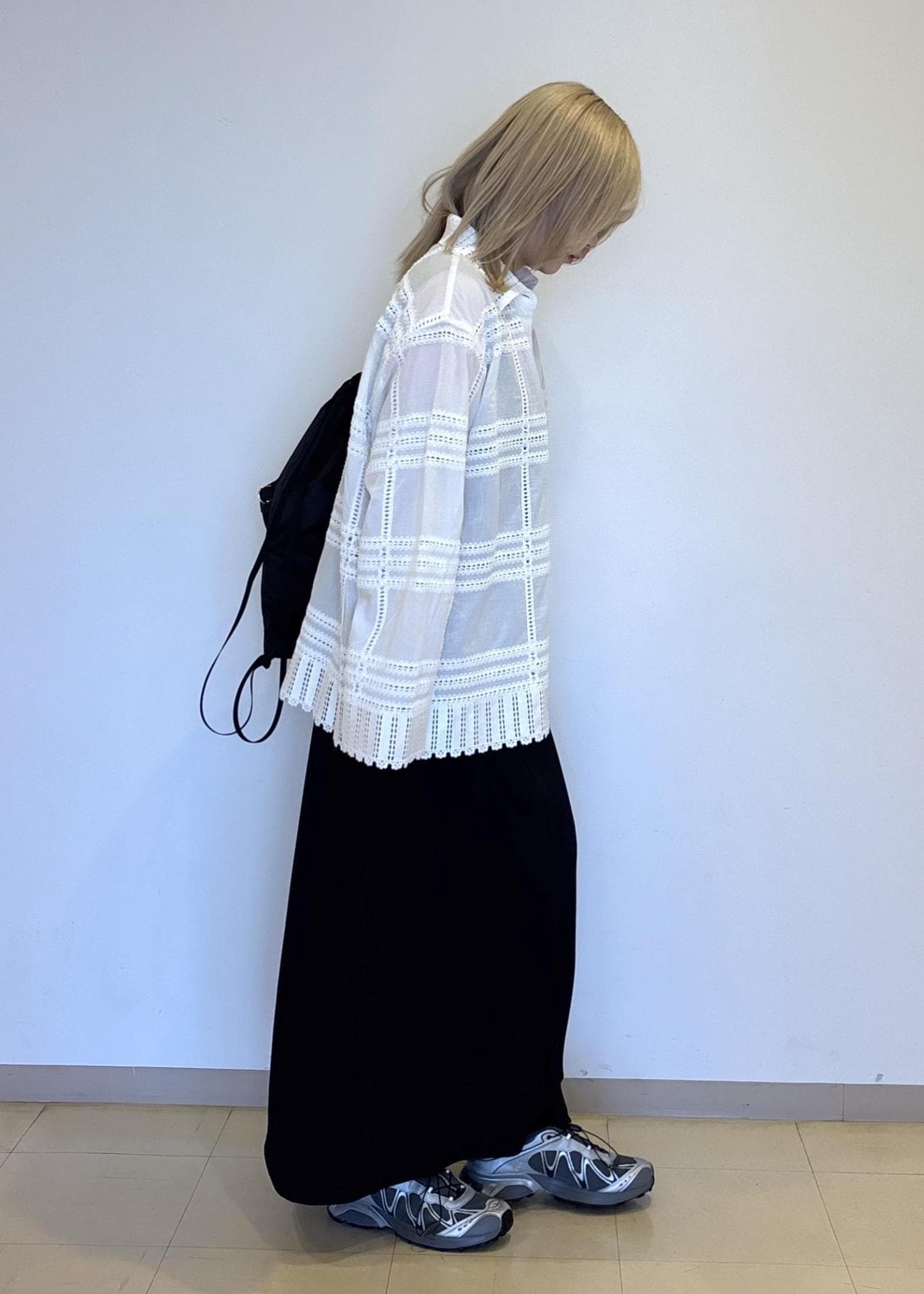 ADAM ET ROPÉ FEMME【一部WEB限定カラー】エンブロイダリーコンビシャツホワイト / F¥26,400レビュー160cm 袖は少し太さがあり、ヒップにかかる着丈で長すぎない丈感ですっきりと着ていただけるサイズ感です。