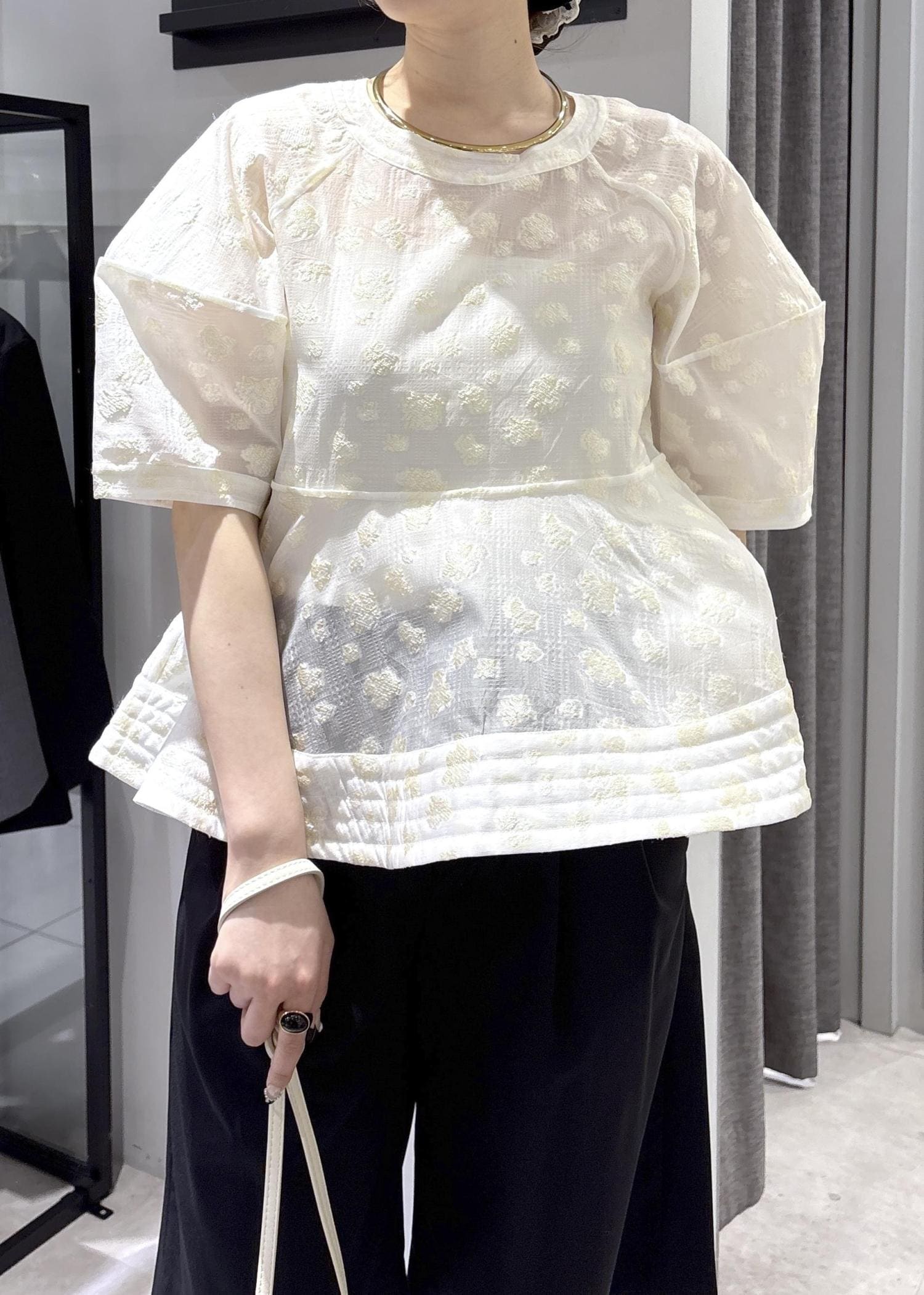 ADAM ET ROPÉ FEMMEコクーンスリーブペプラムトップスホワイト系 / F¥17,600レビュー二の腕しっかり隠してくれるデザイン性あるトップスです。透け感があります