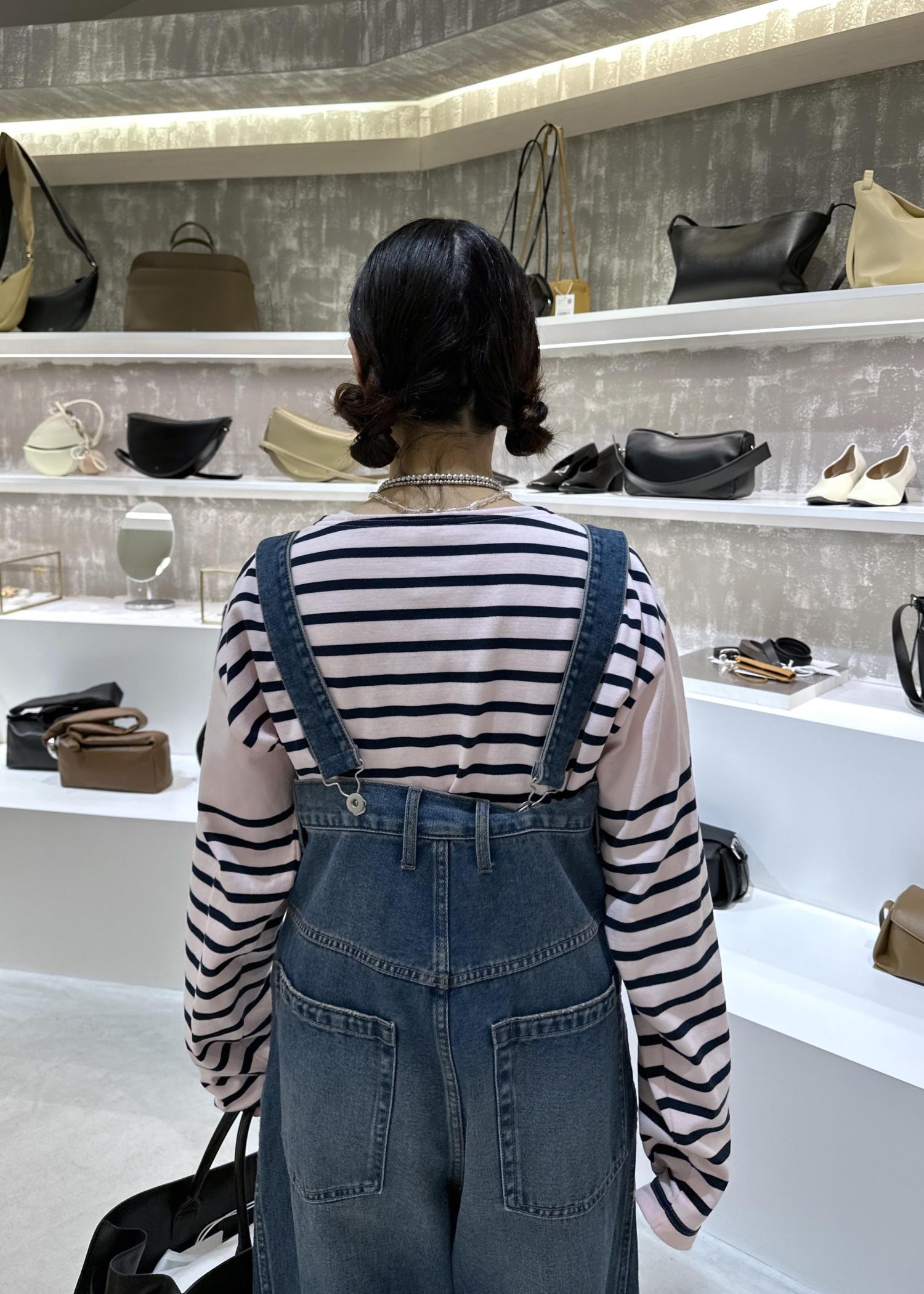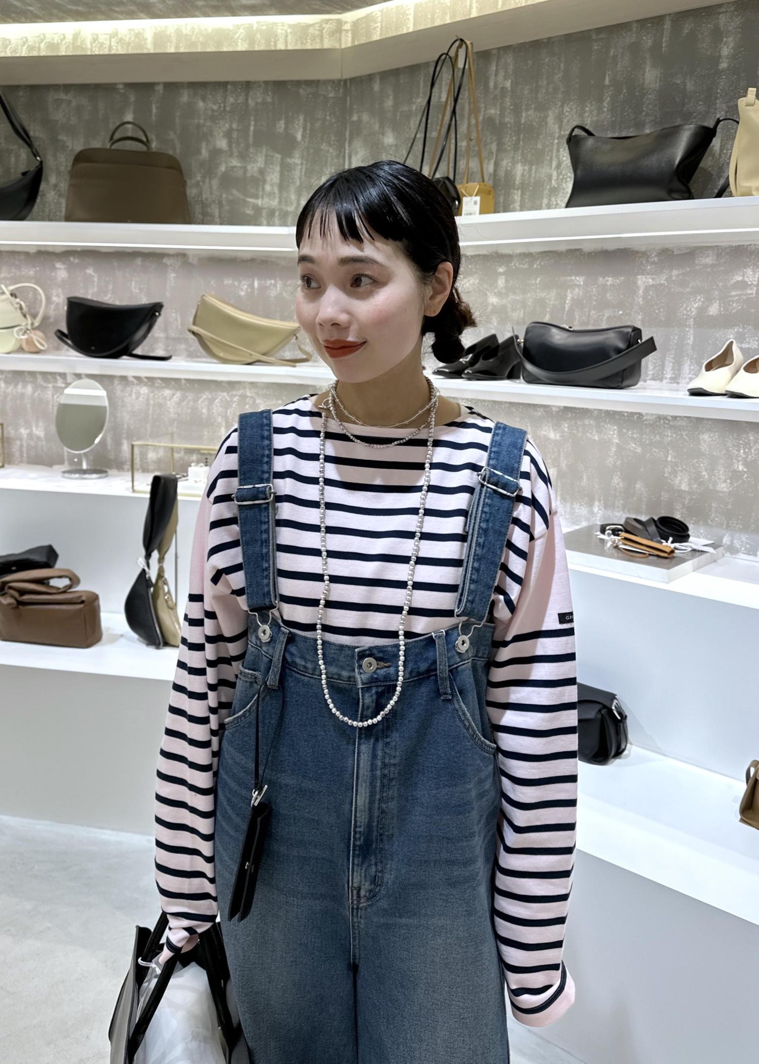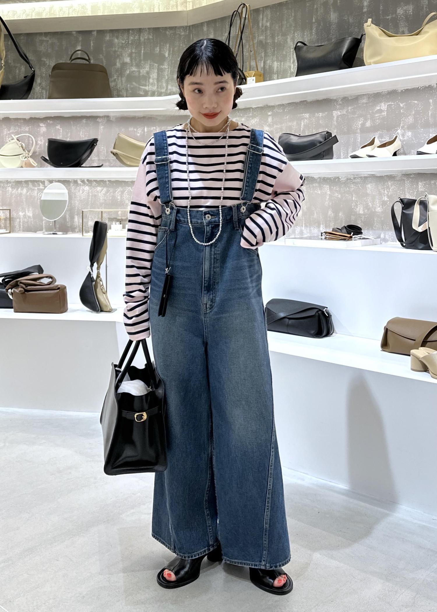 デニムロンパースと合わせました。