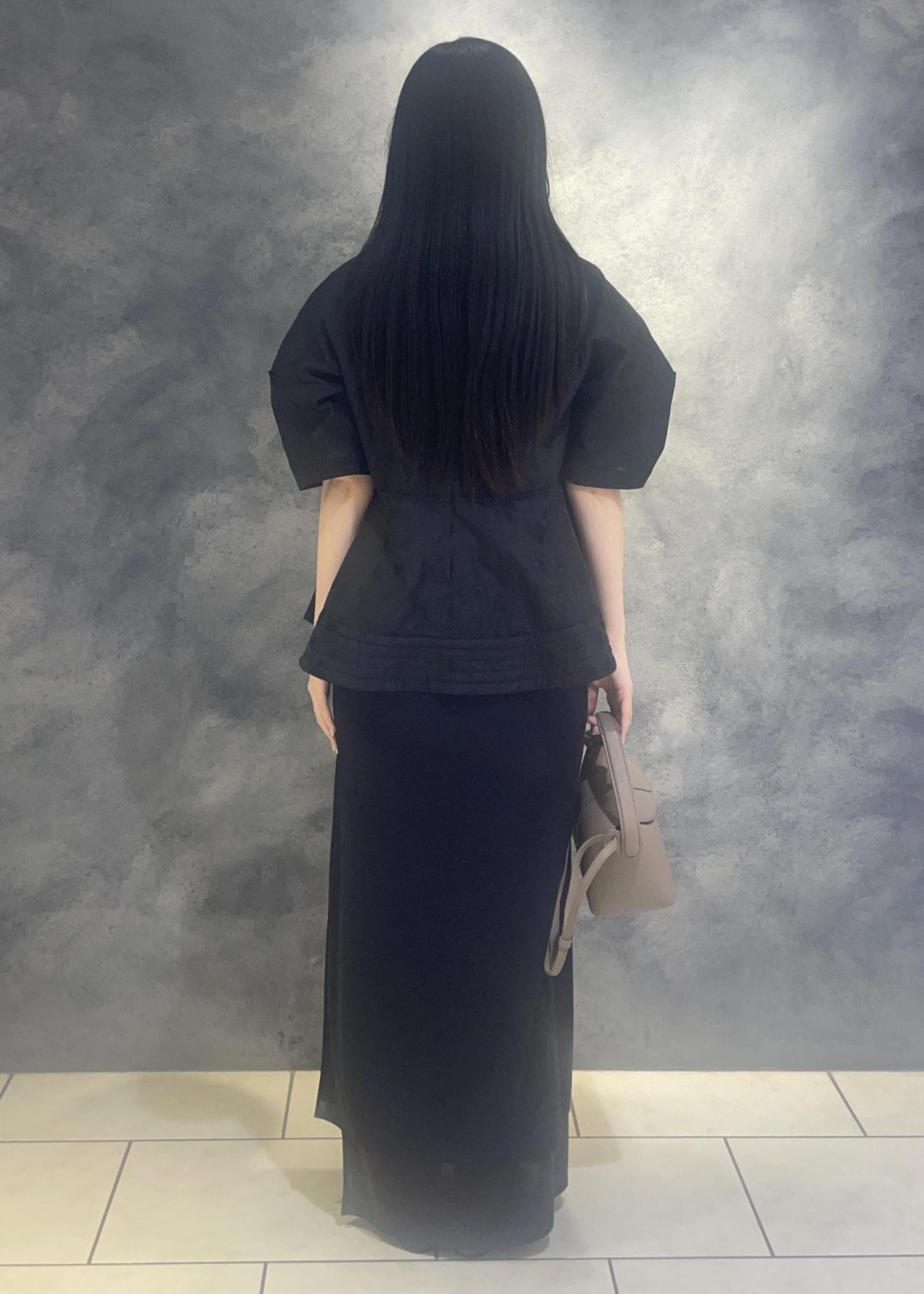 本日はコクーンスリーブペプラムトップスを使ったスタイリングをご紹介いたします。