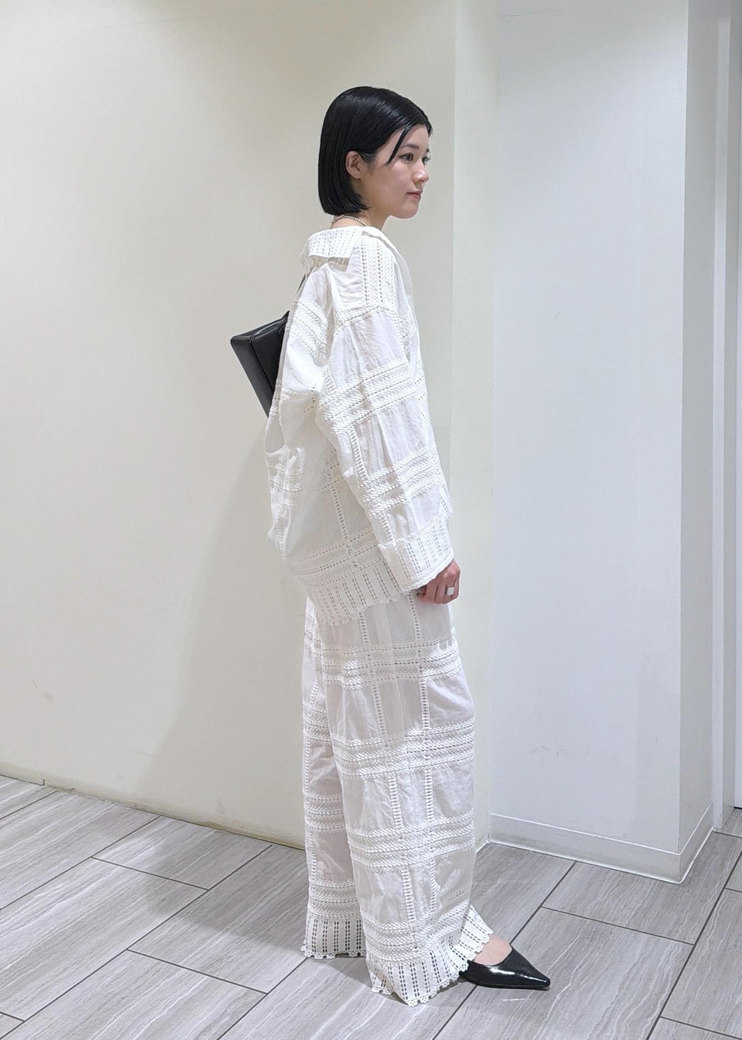 ADAM ET ROPÉ FEMME【一部WEB限定カラー】エンブロイダリーコンビシャツホワイト / F¥26,400レビューゆったりとしたサイズ感で、羽織りにもピッタリです。
