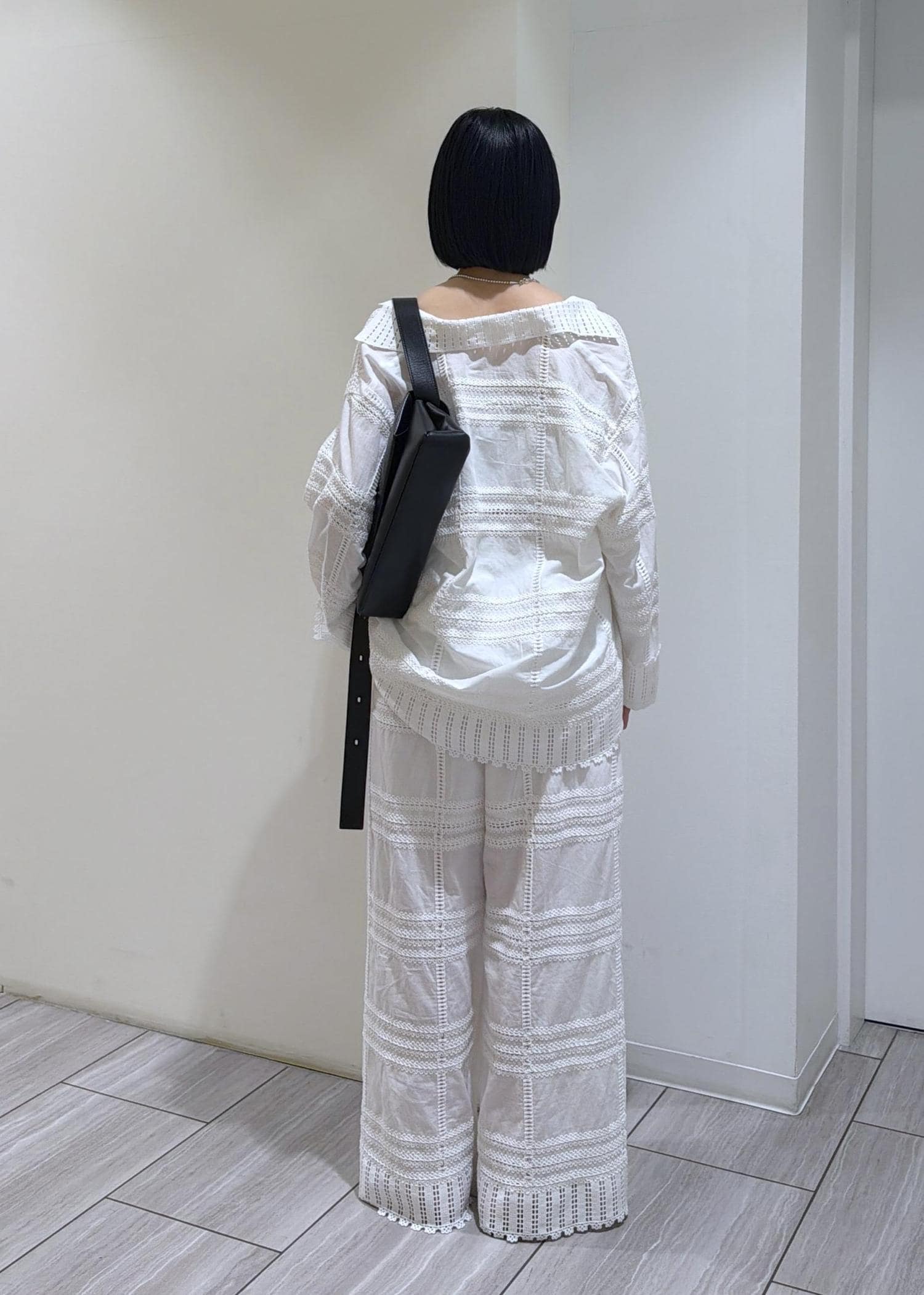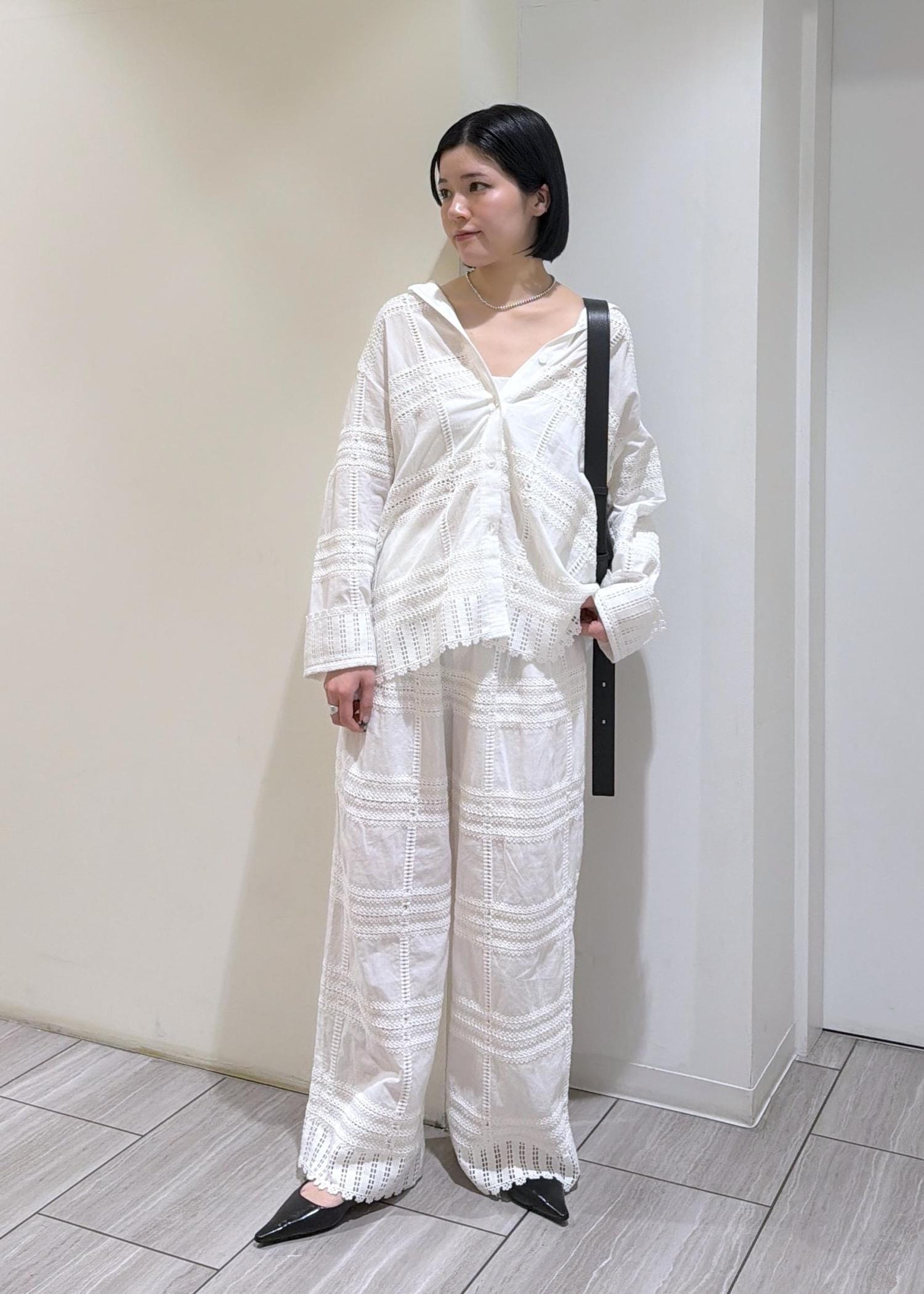ADAM ET ROPÉ FEMME【一部WEB限定カラー】エンブロイダリーイージーパンツホワイト / 36¥26,400レビュー余裕のあるウエストのサイズ感で、紐で調節できます。