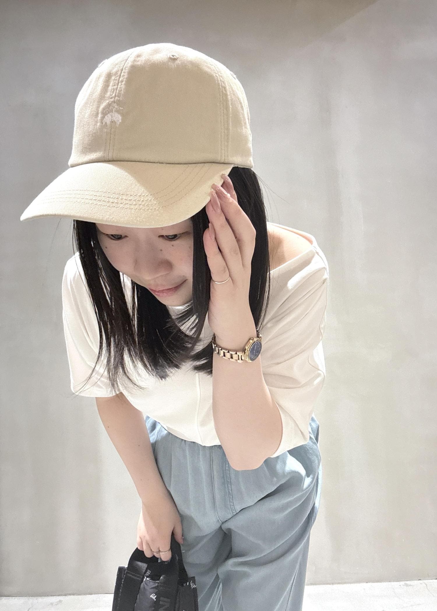 肩が出すぎるわけでもなく程よく肌見せができるのが嬉しい。インしてもアウトで着てもボトムスとのバランスが取りやすいと感じました。