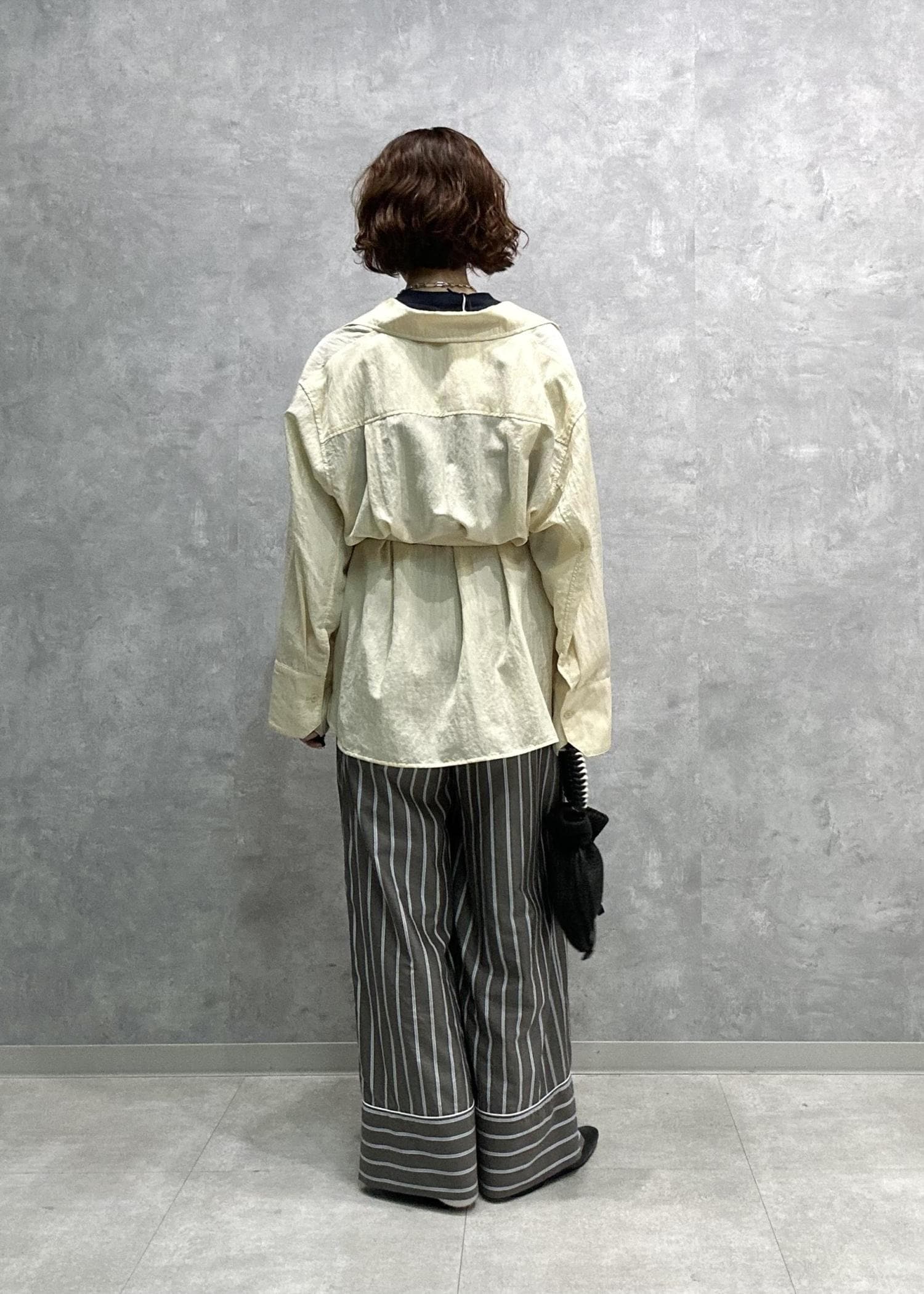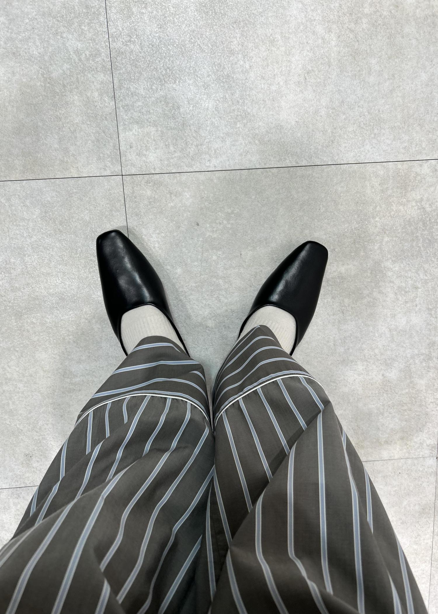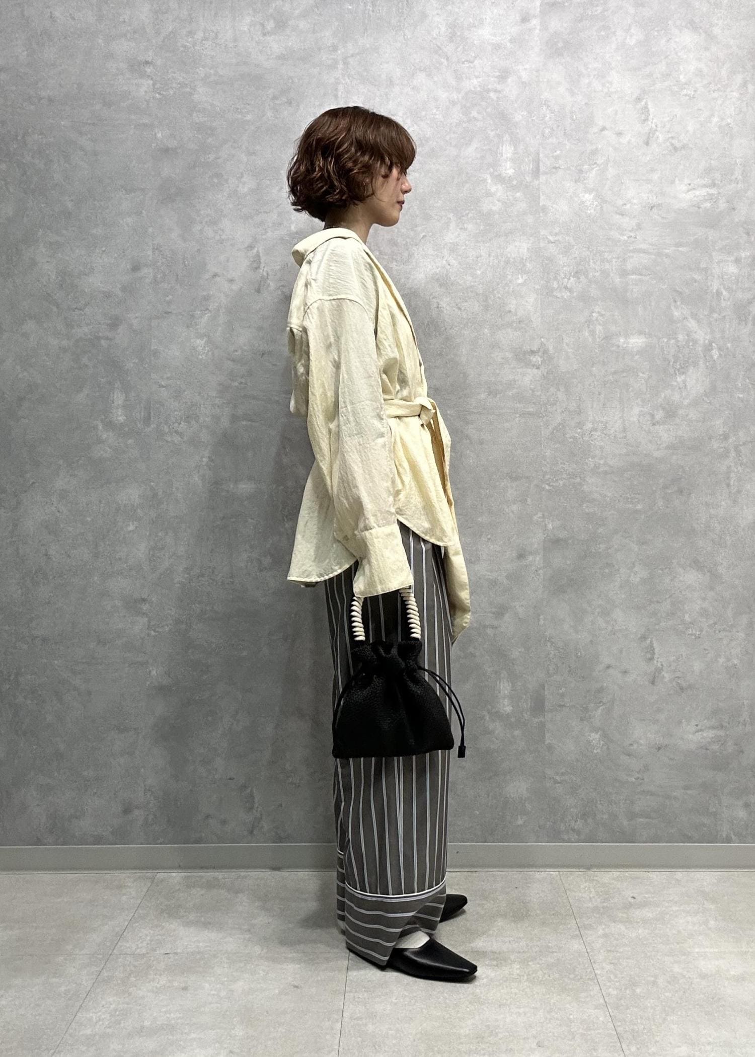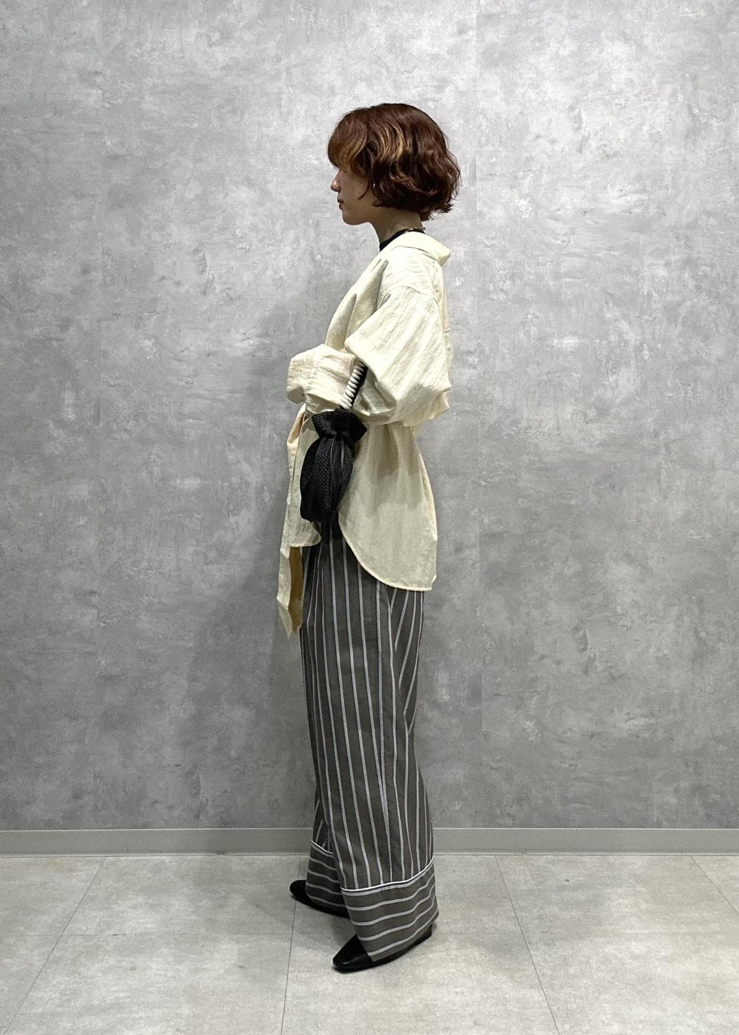 ADAM ET ROPÉ FEMMEストライプシャツスラックスグレー / 36¥22,000レビュー足のラインを拾わない太めシルエット、パジャマパンツの様な素材感とストライプ柄が春夏にぴったりです。