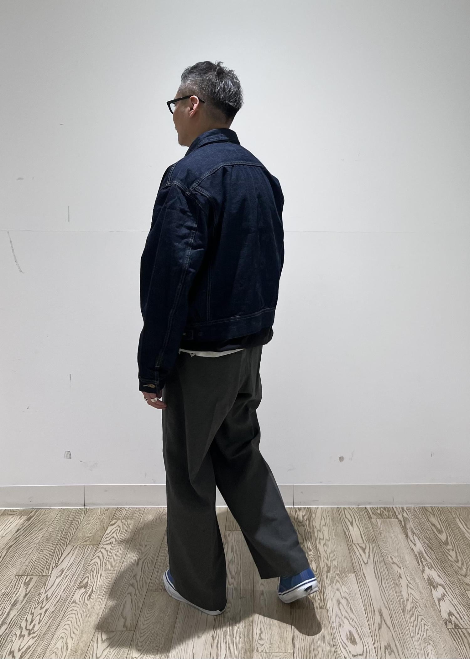 Leeの「101-J RIDERS JACKET」をモチーフに、パンツと同時期に制作されていた“COWBOY”のドーナッツボタンを使用したモデルを再現。「MARKAWARE」のパターンで、身幅や肩幅に適度なゆとり、短すぎない着丈の設定や、裾の前後差の調整がされ、洗練された仕上がりとなっています!