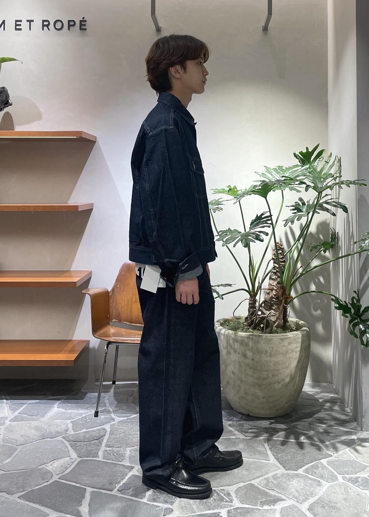 Lee×MARKAWARE×ADAM ET ROPÉのトリプルコラボ。ジャケットはゆったりとしたサイズ感で、パンツは清潔感のあるストレートシルエットです。セットアップで着ていただくのが1番かっこいいです!