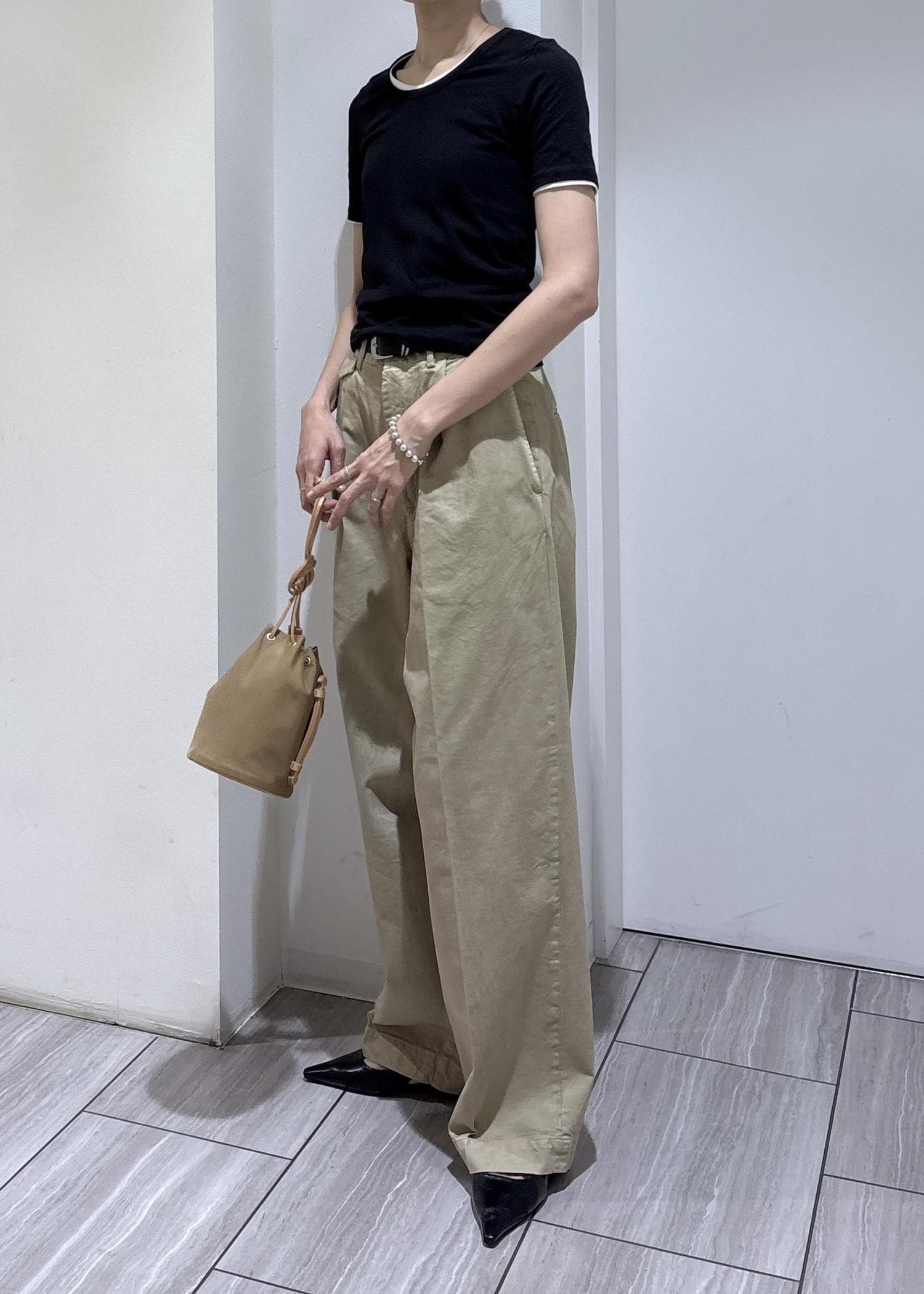 NEW!ADAM ET ROPÉ FEMME【AURALEE(オーラリー)】GARMENT-DYED FINX LIGHT CHINO ONE-TUCK WIDE PANTSベージュ / 1¥51,700レビュー軽くて柔らかいチノ素材で、ほどよい落ち感があり、ラフすぎず上品にはける一本です。