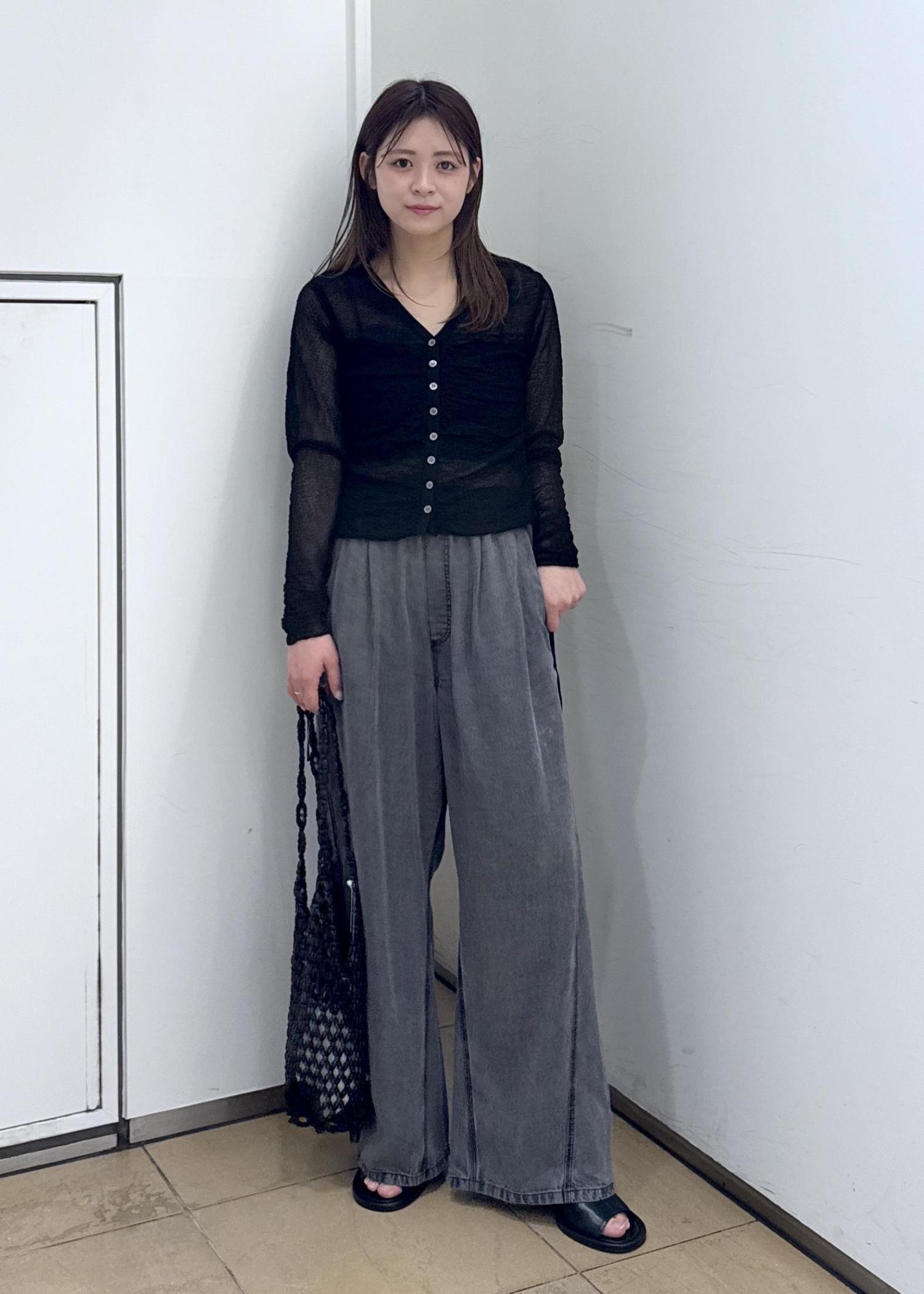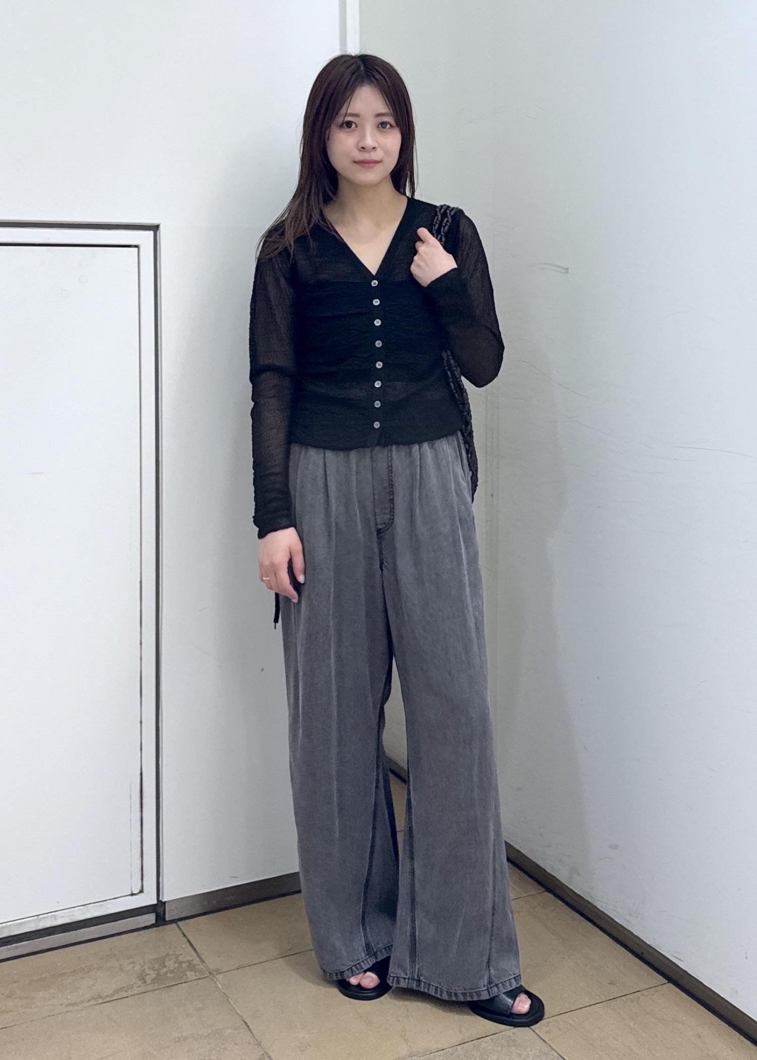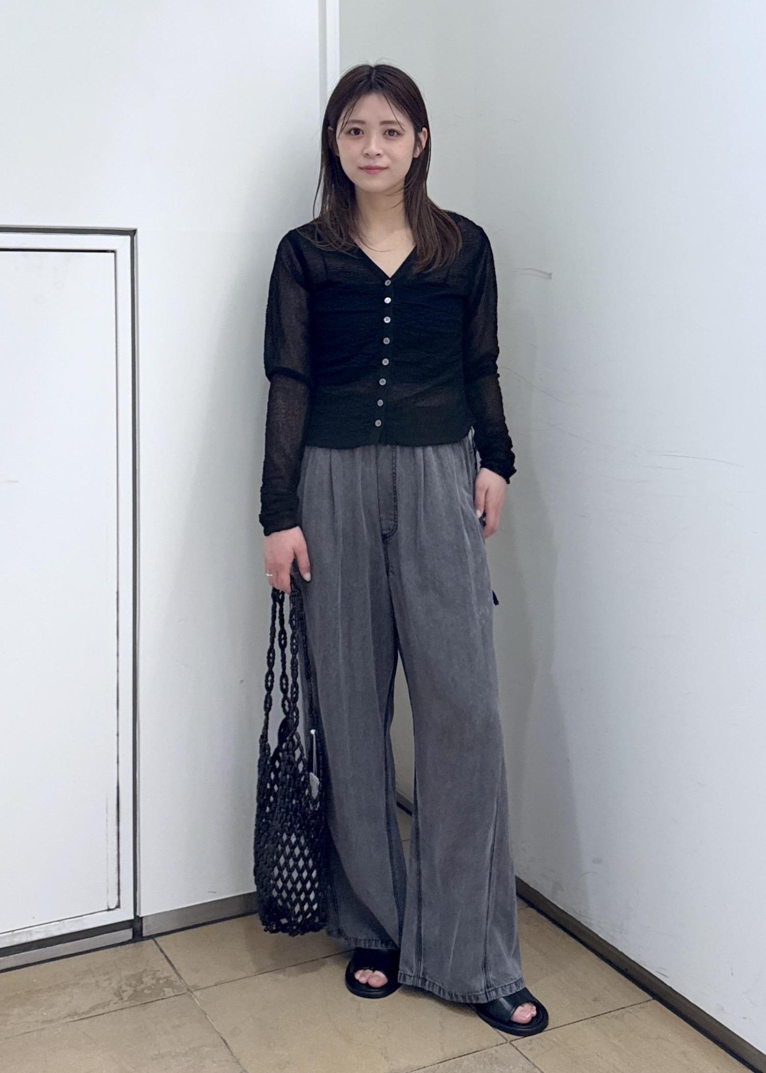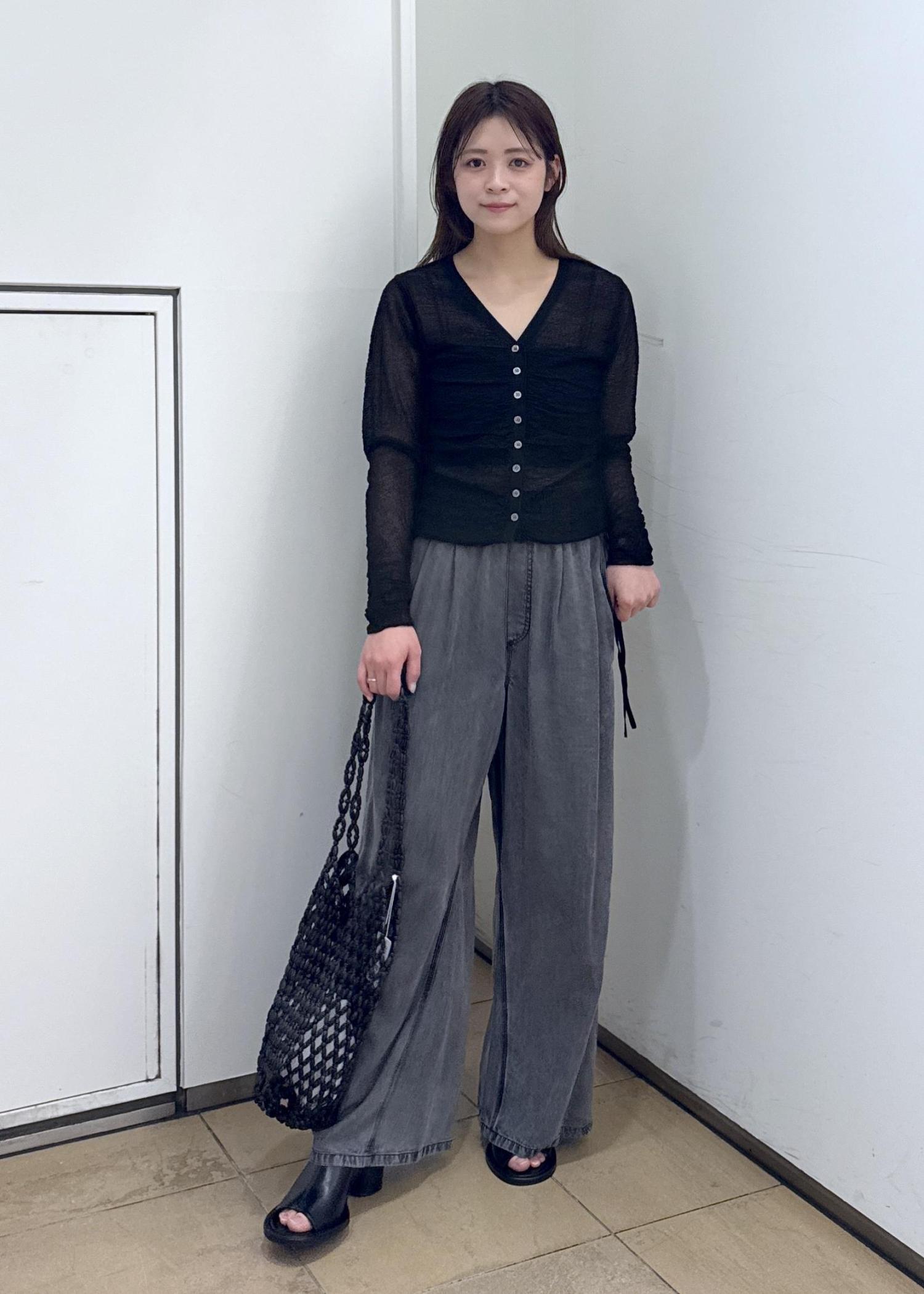 ADAM ET ROPÉ FEMMEクレープリンクスギャザーシアーカーディガンブラック / F¥17,600レビュー腰にかかるくらいの丈感です。