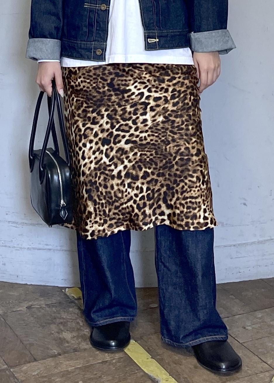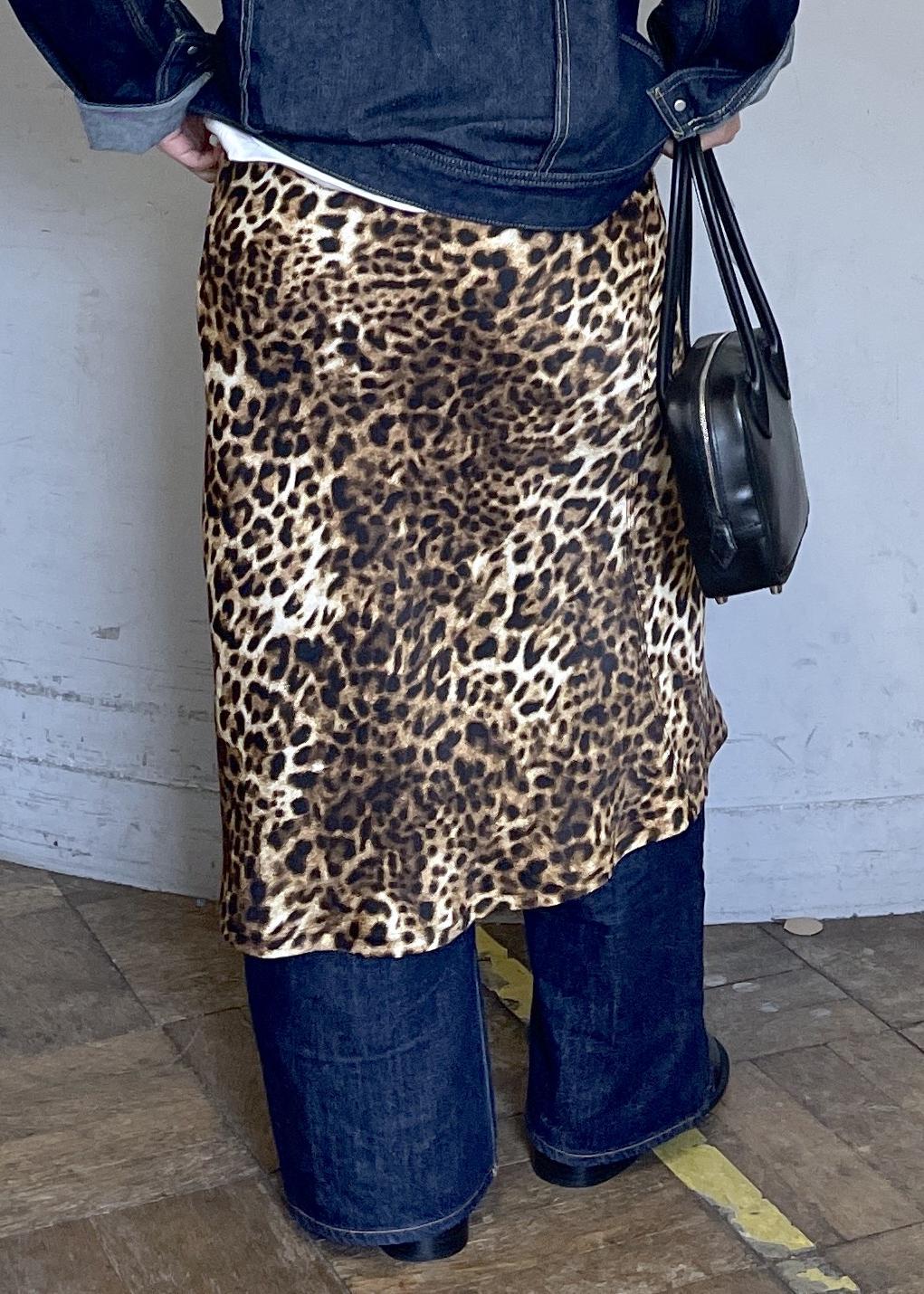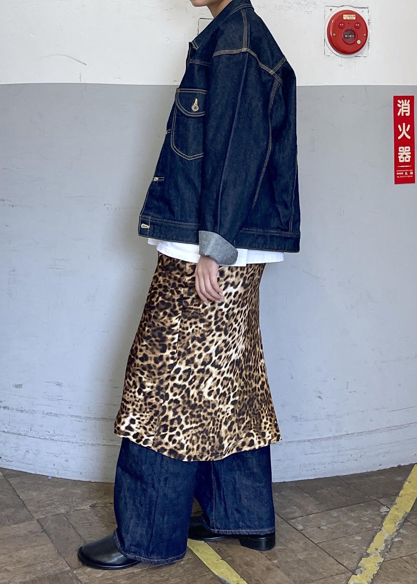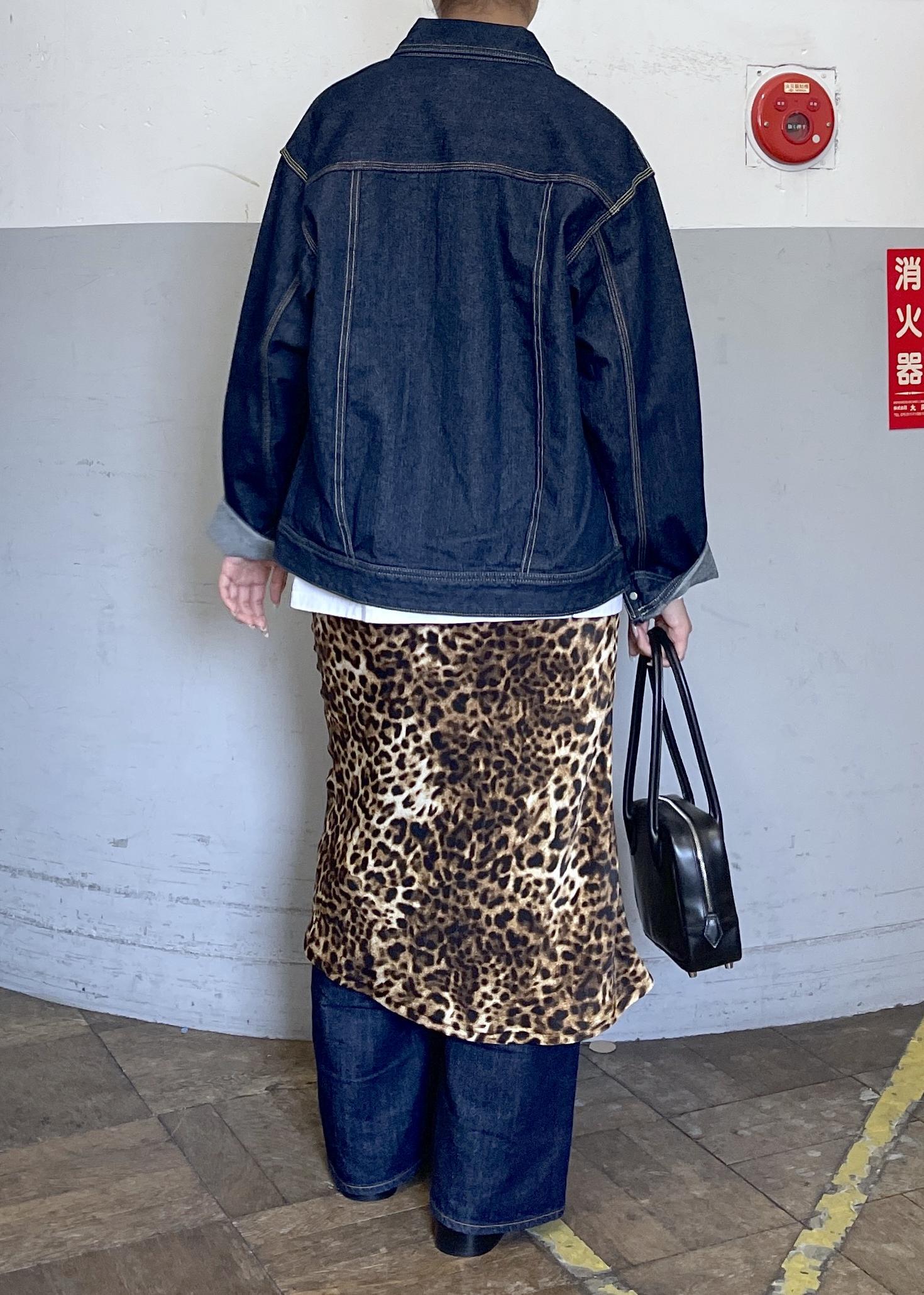 今回はデニムジャケットとストレートデニムのカジュアルな組み合わせに、レオパード柄のスカートを重ねることで、一気に個性が引き立つコーディネートです。