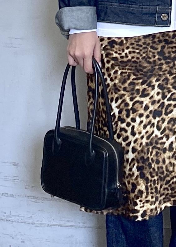 ベーシックな白Tと黒の小物で全体を引き締めているので、柄アイテムも主張しすぎず、デイリーに取り入れやすいです。