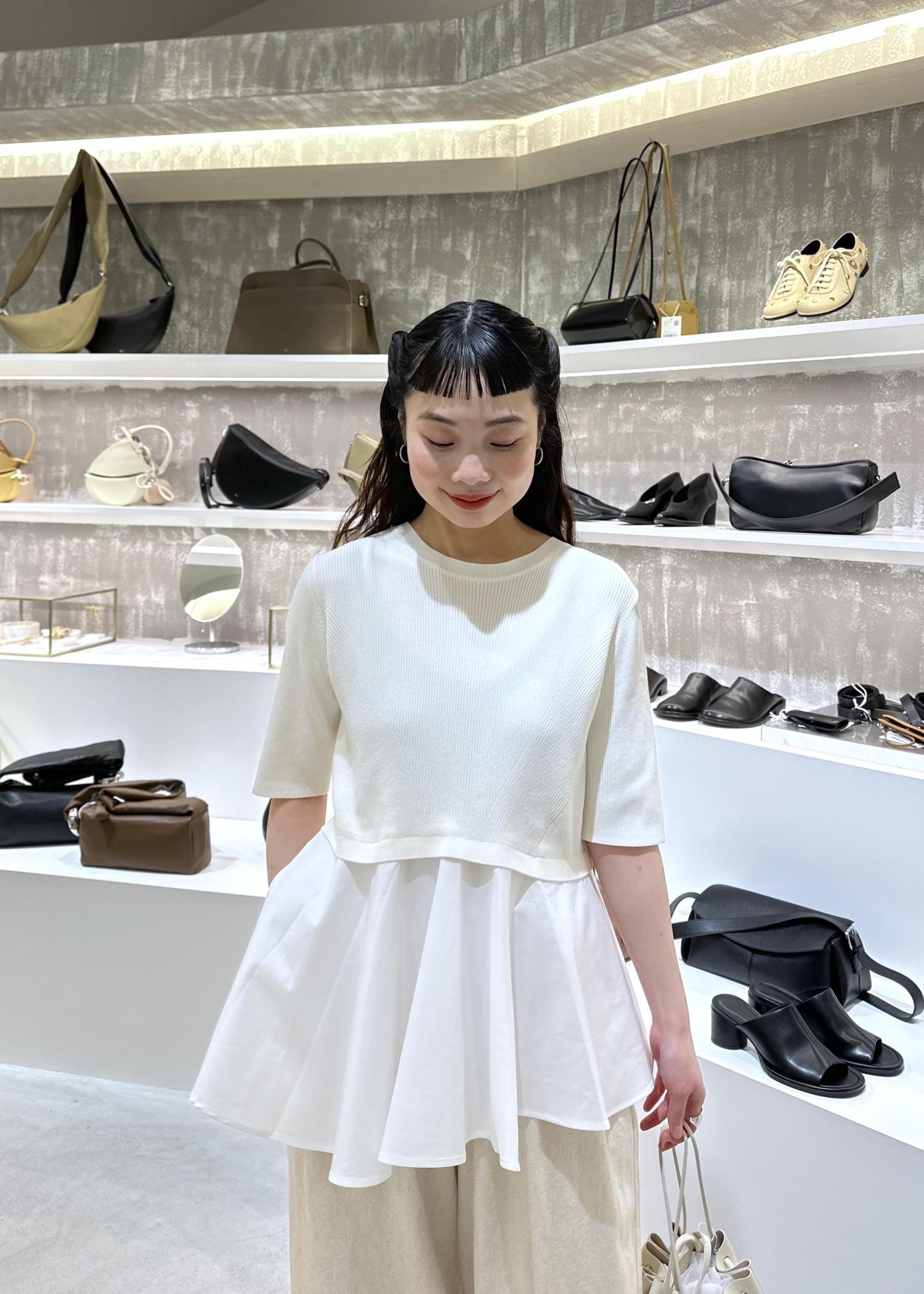 今回は毎シーズン人気のペプラムトップスを