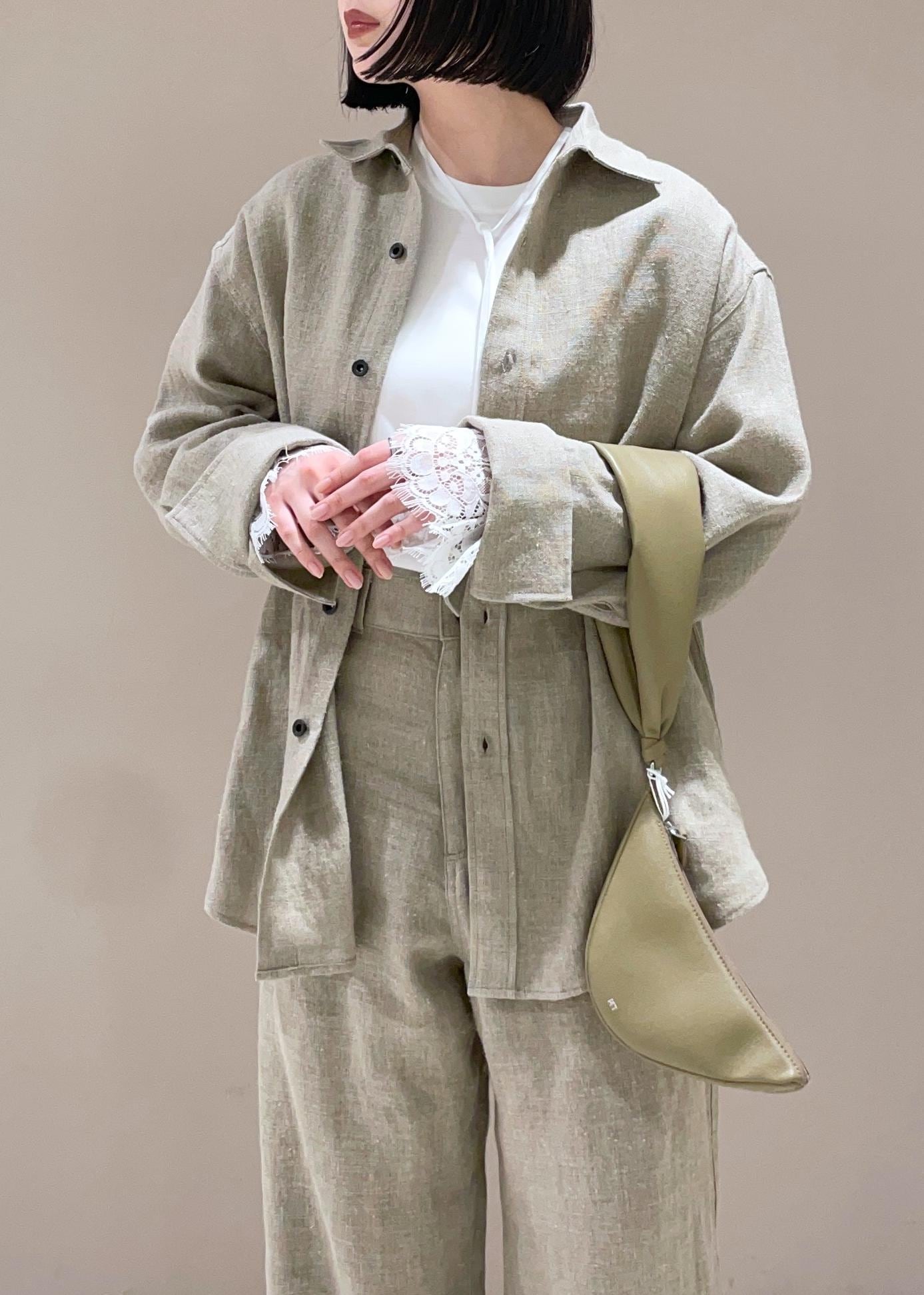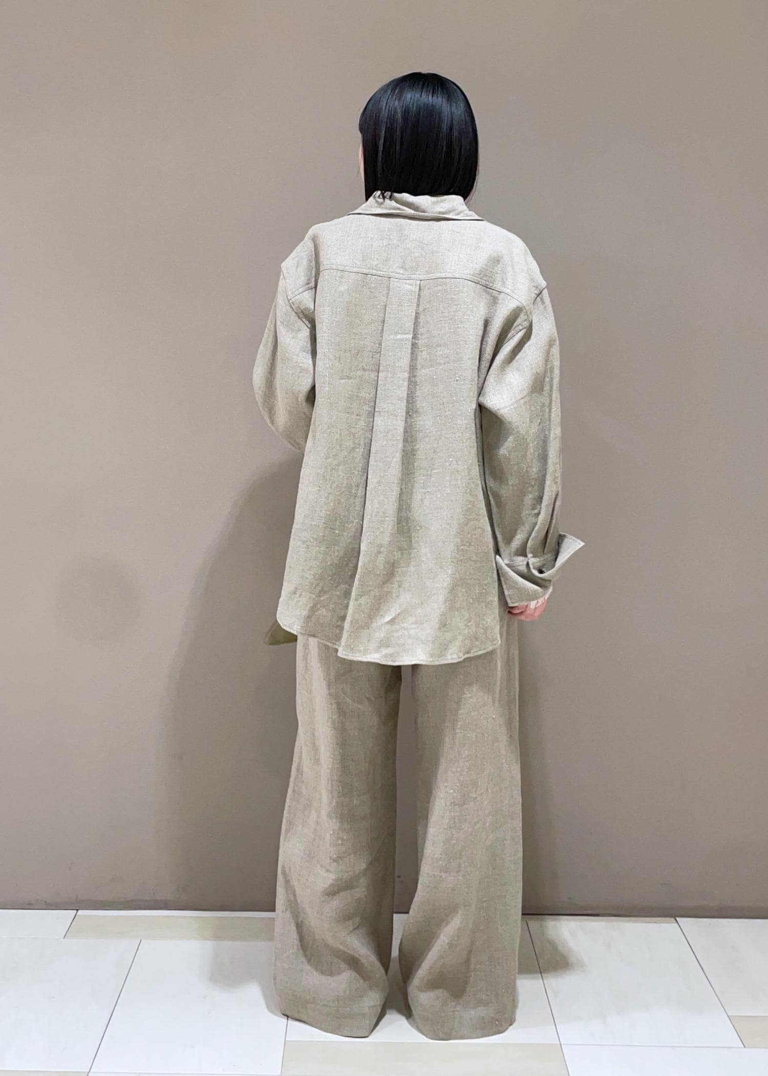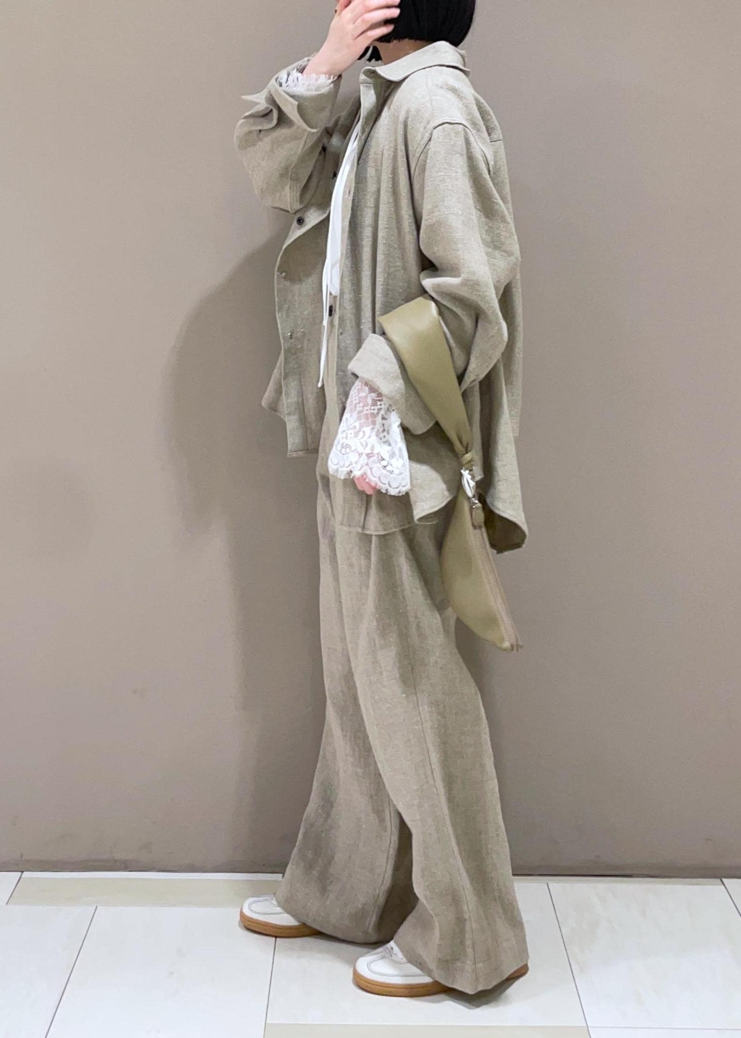 ADAM ET ROPÉ FEMMEリネンシャツベージュ系 / 38¥26,400レビュー38サイズは、余裕で重ね着ができるオーバーサイズ◎やや厚手で存在感のあるリネン素材で、シンプルですが一枚でスタイリングが決まります◎