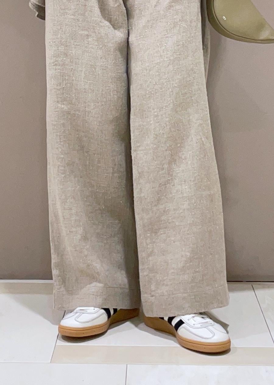 ADAM ET ROPÉ FEMMEリネン5ポケットパンツベージュ系 / 38¥26,400レビュー162cmの私で38サイズ着用だと、若干地面に着くくらいの着丈でした。ヒールや厚底のシューズで合わせると安心です!くたっとした生地感、シルエットが涼しげで素敵です◎