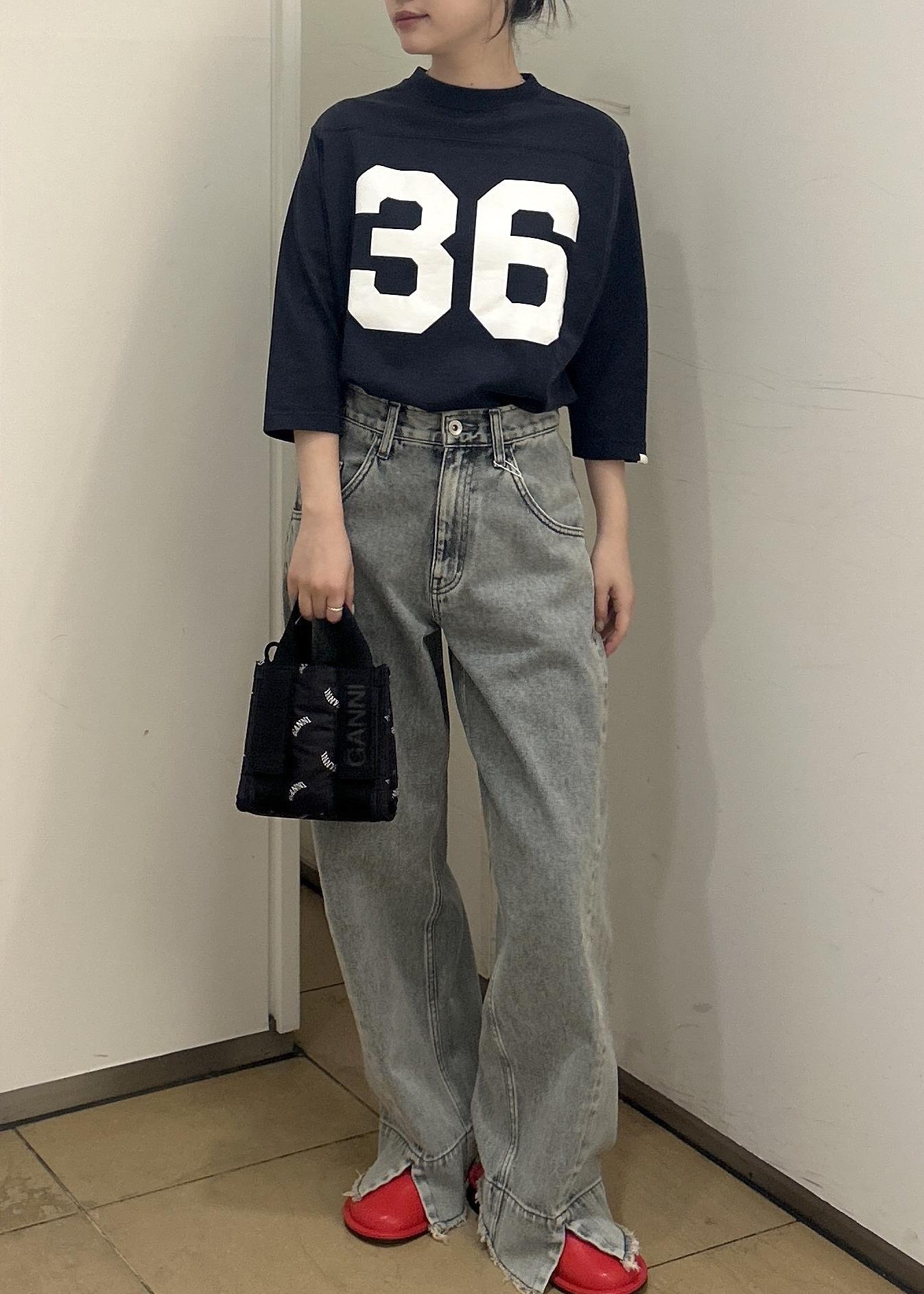 ブーツカットで脚が綺麗に見えるシルエットです! -