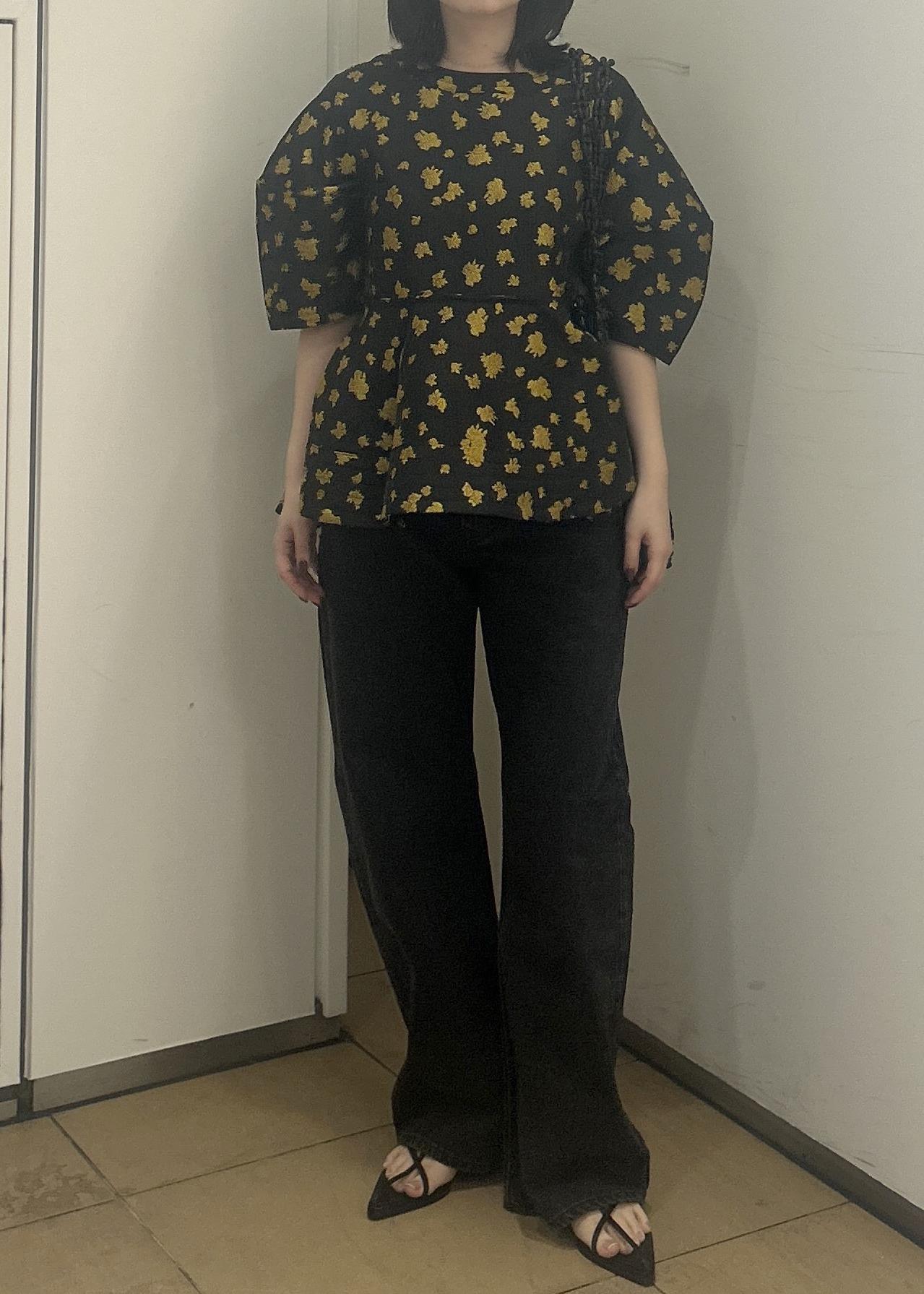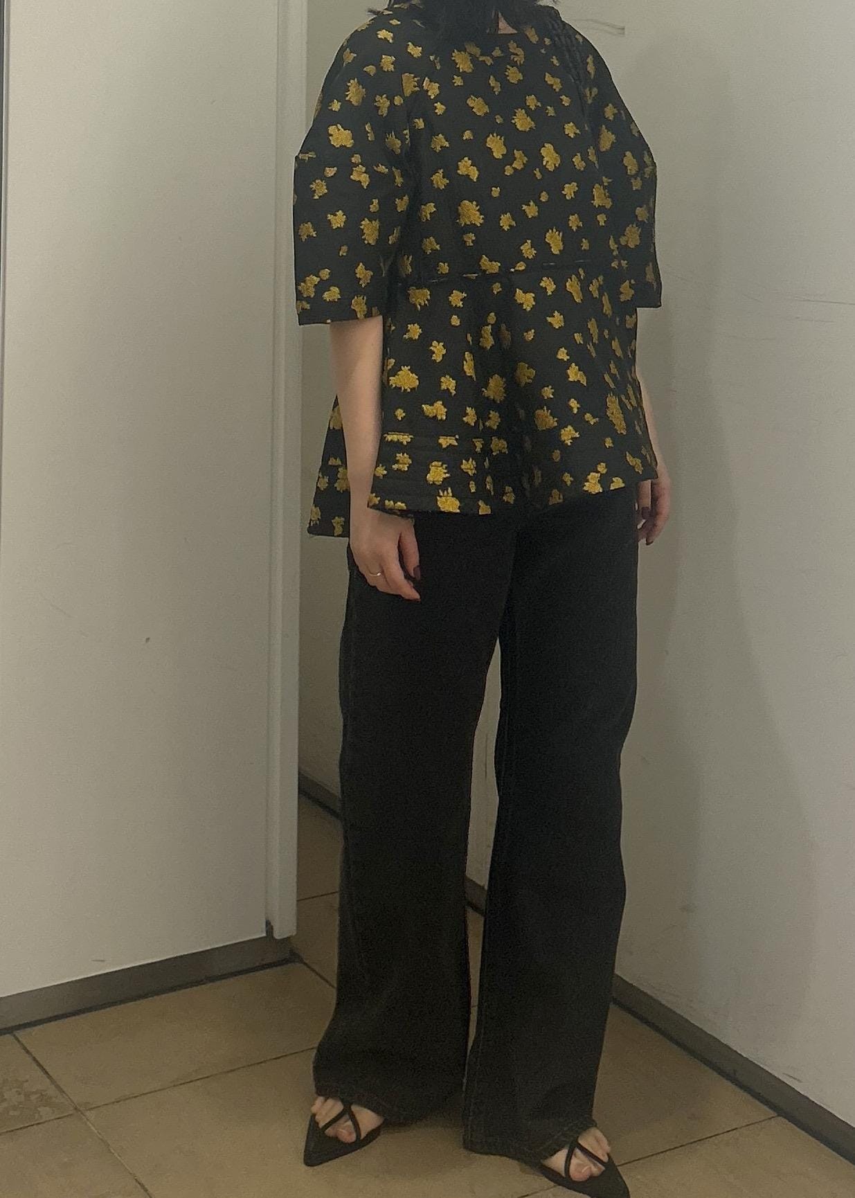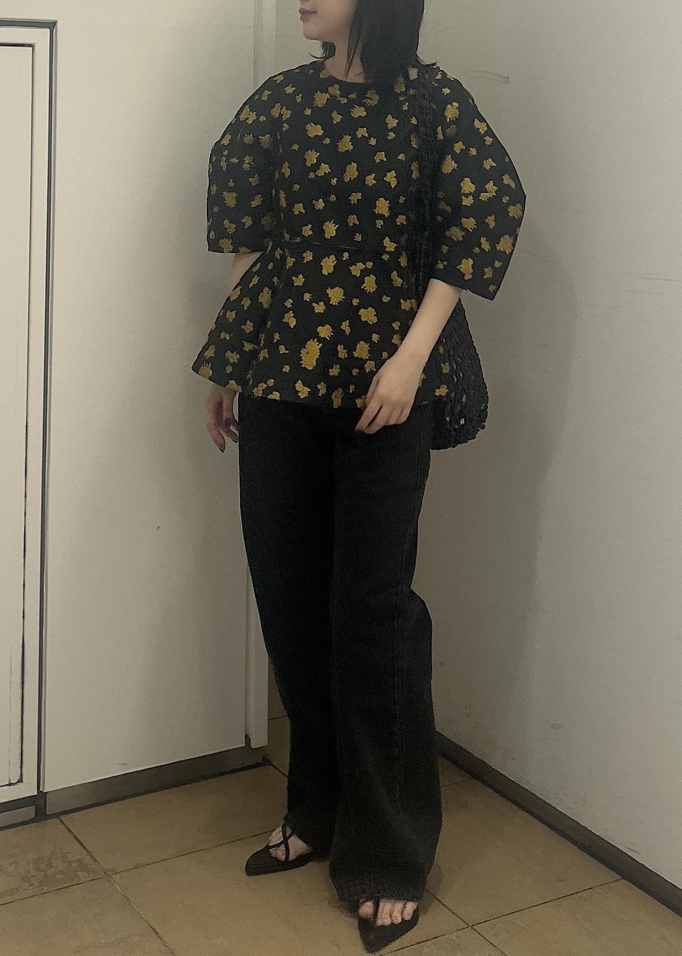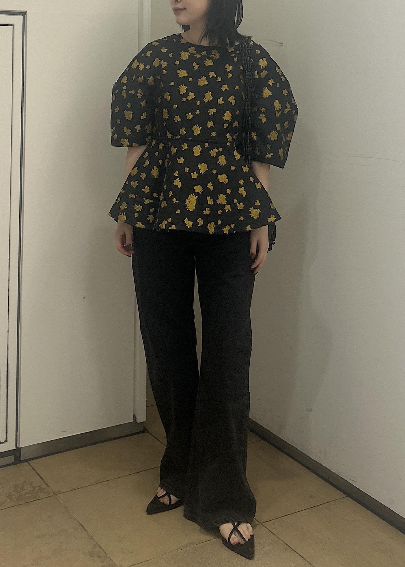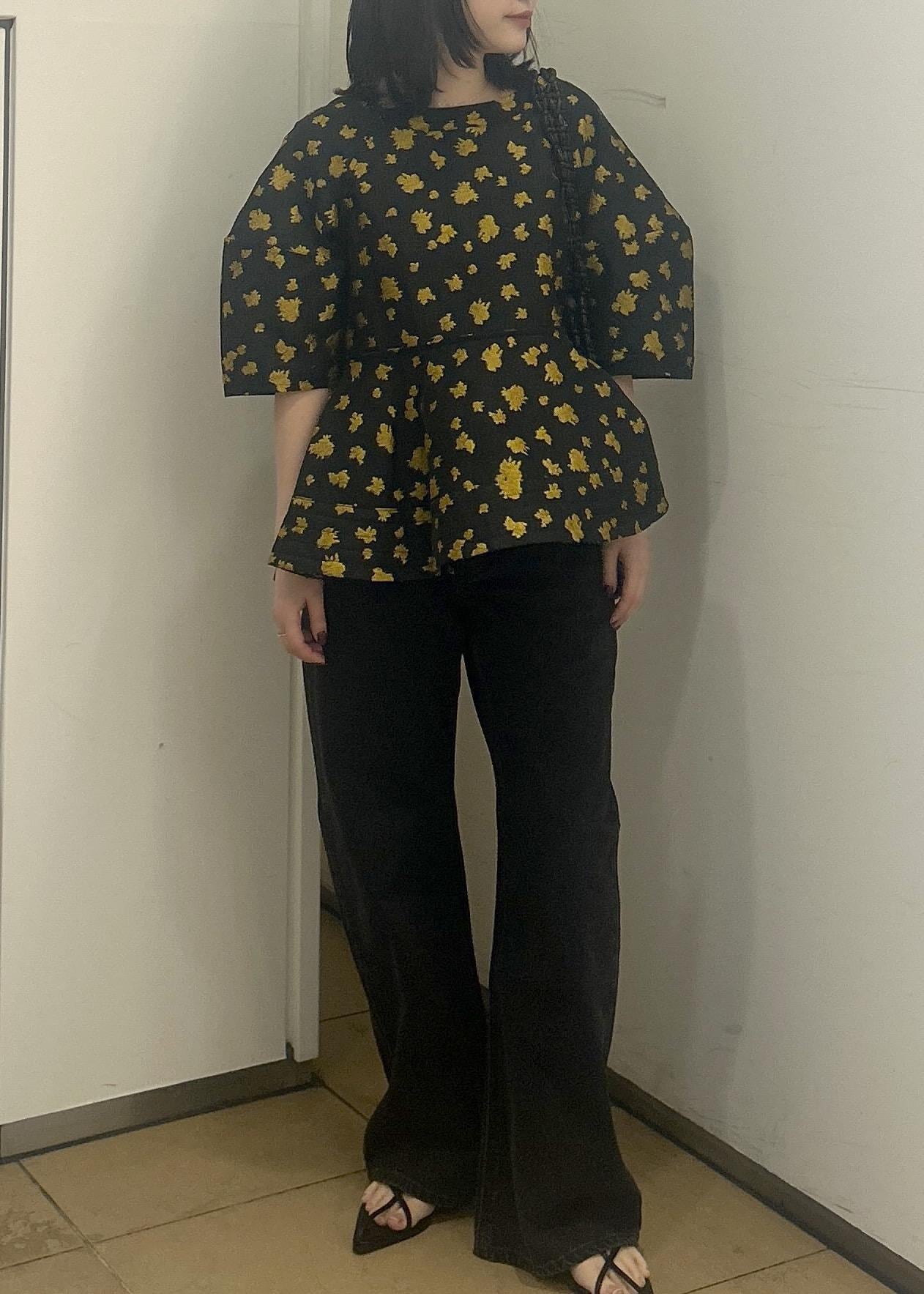 ADAM ET ROPÉ FEMMEコクーンスリーブペプラムトップスブラック系 / F¥17,600レビュー黒地に黄色の花柄の差し色が可愛いです♡