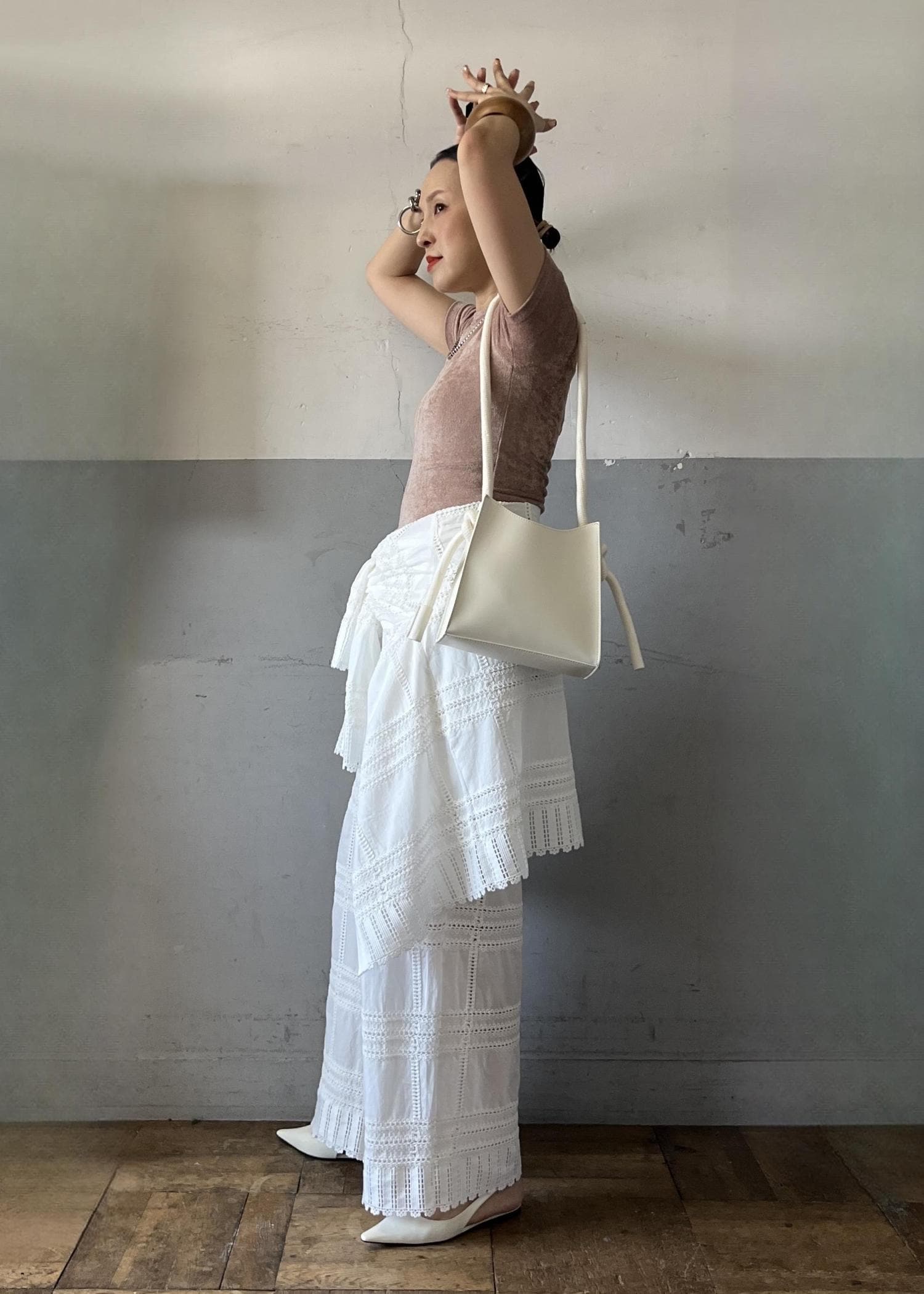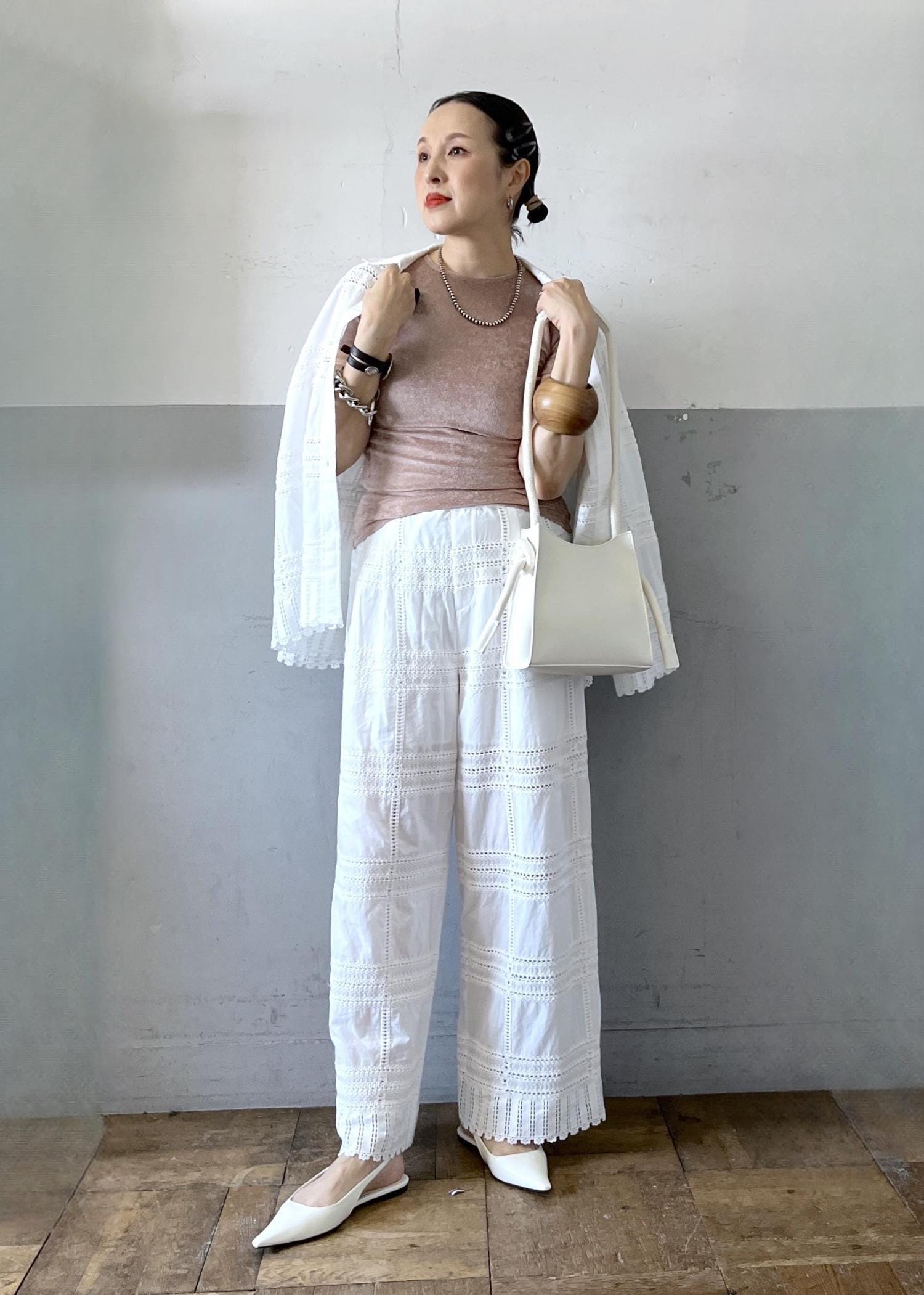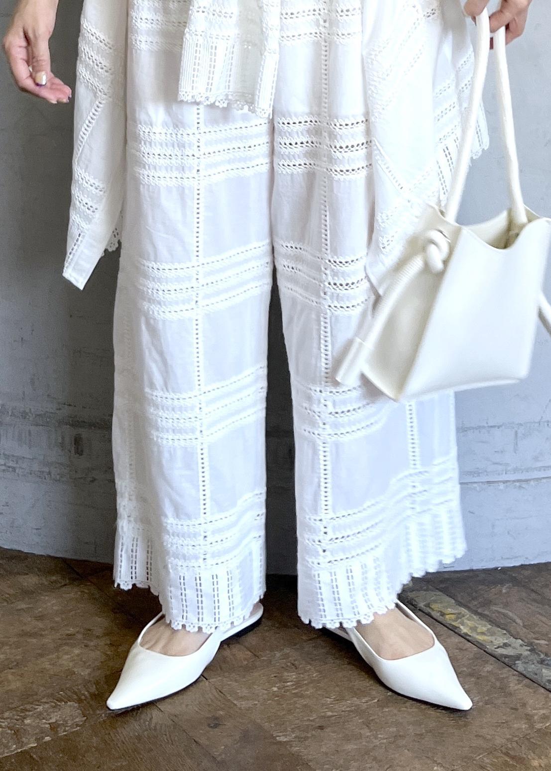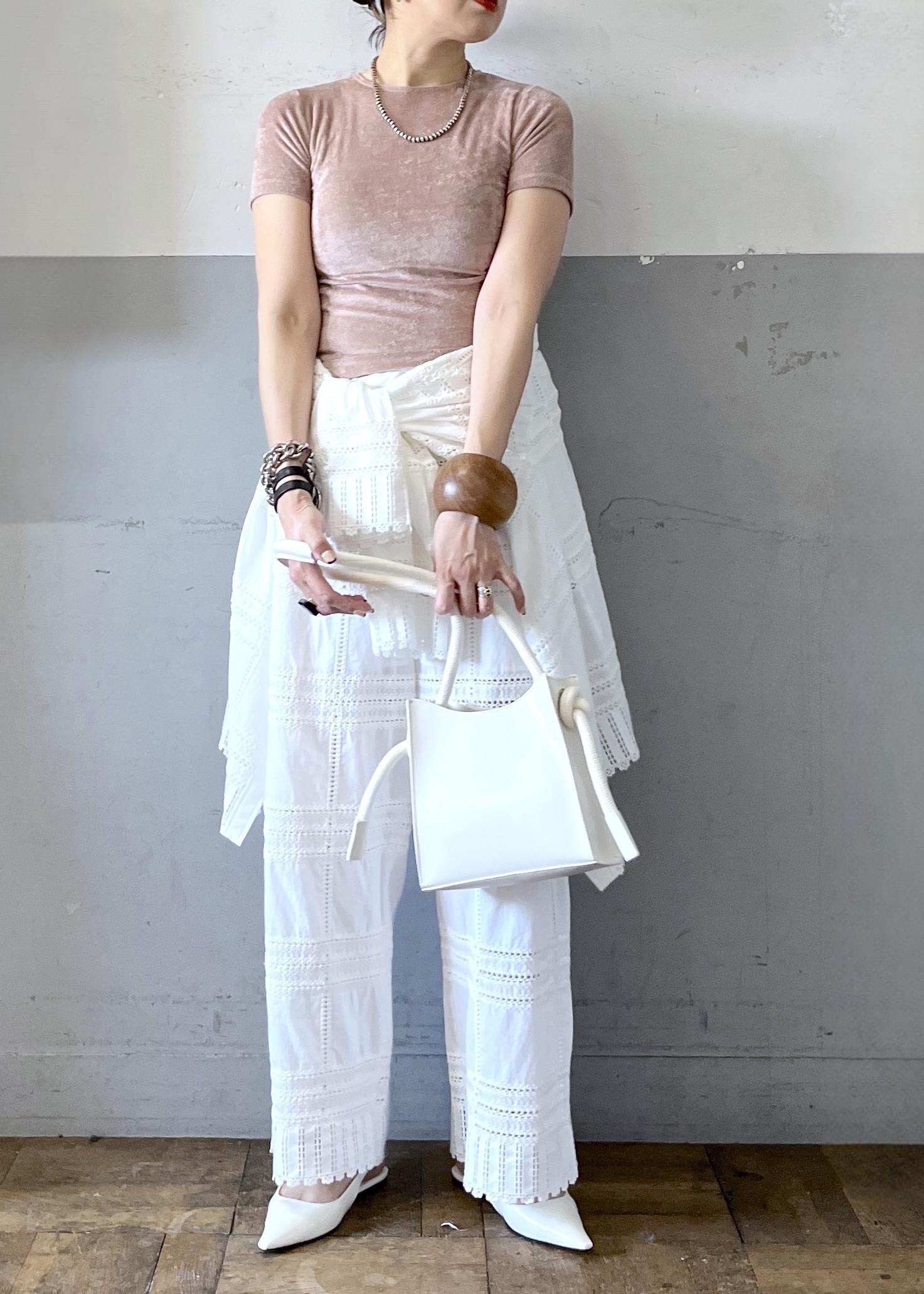 繊細なエンブロイダリーが目を引くセットアップを主役にした、