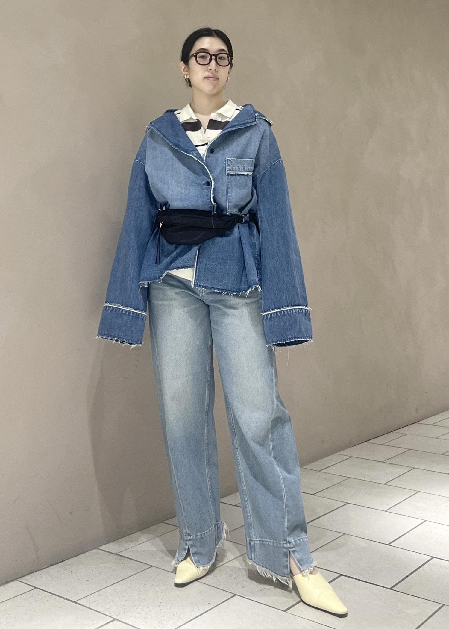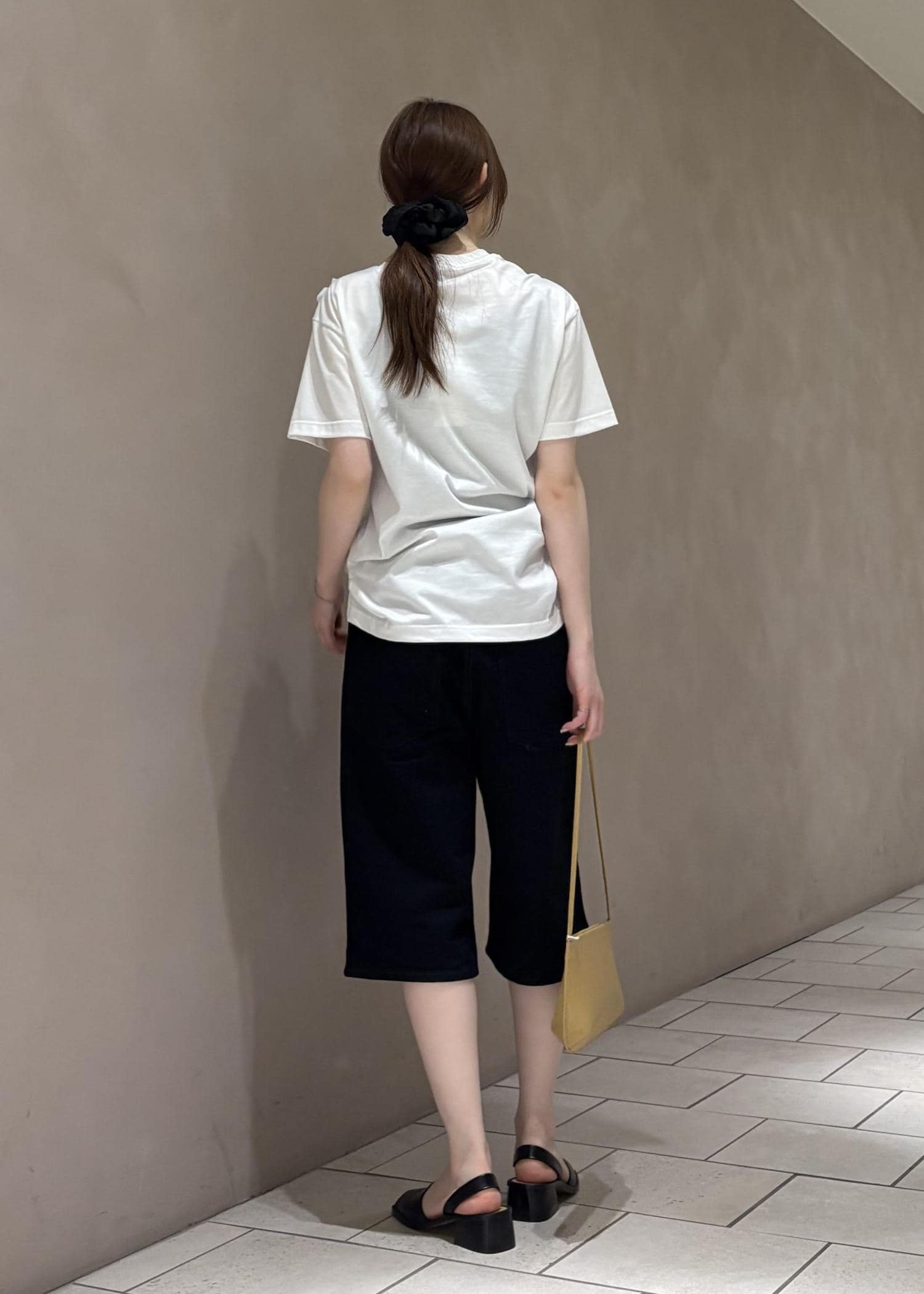 ハーフパンツは膝が隠れるくらいの長めデザインになっています。太すぎないシルエットなのでデニムですが綺麗めにも着用できておすすめです♪