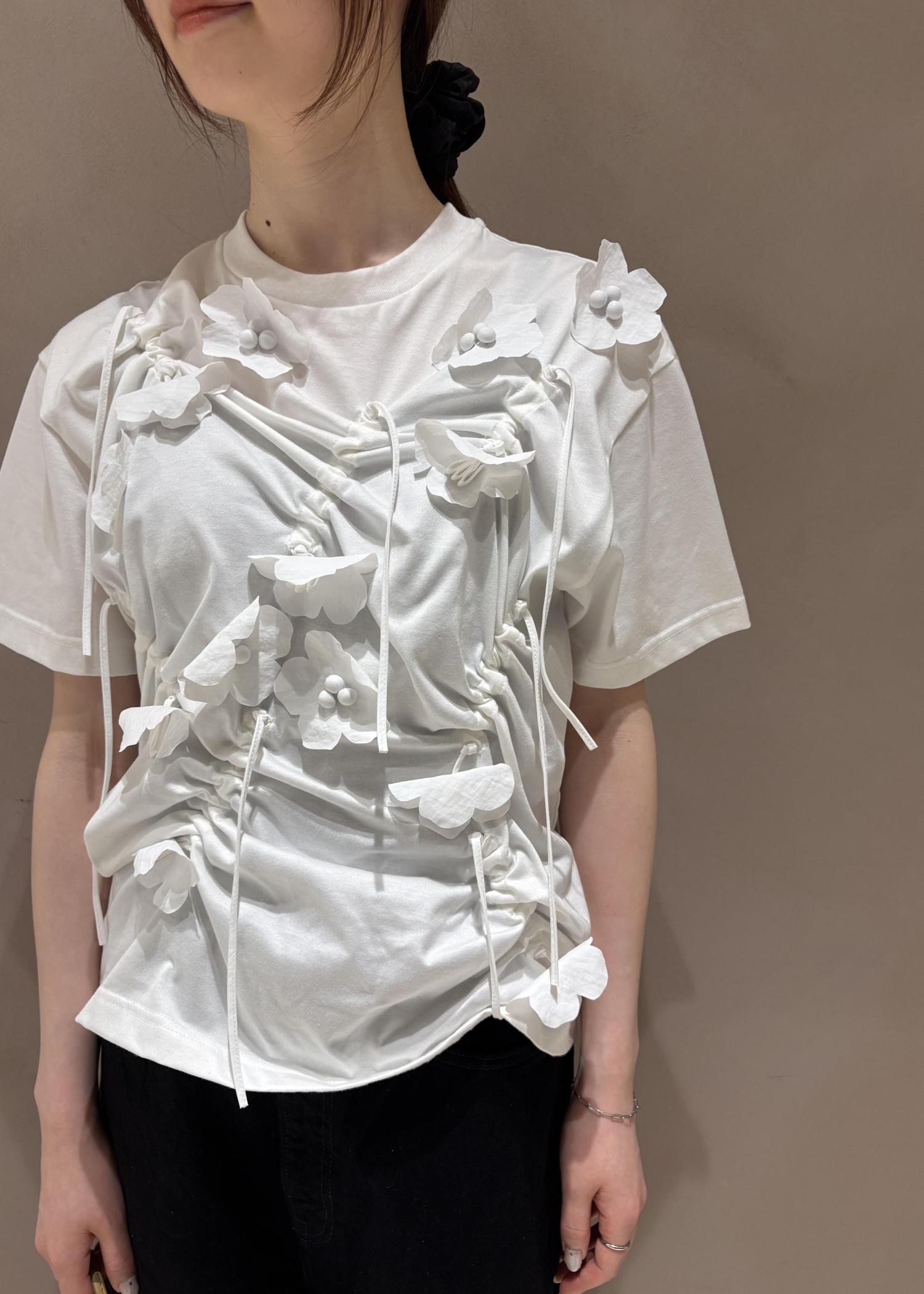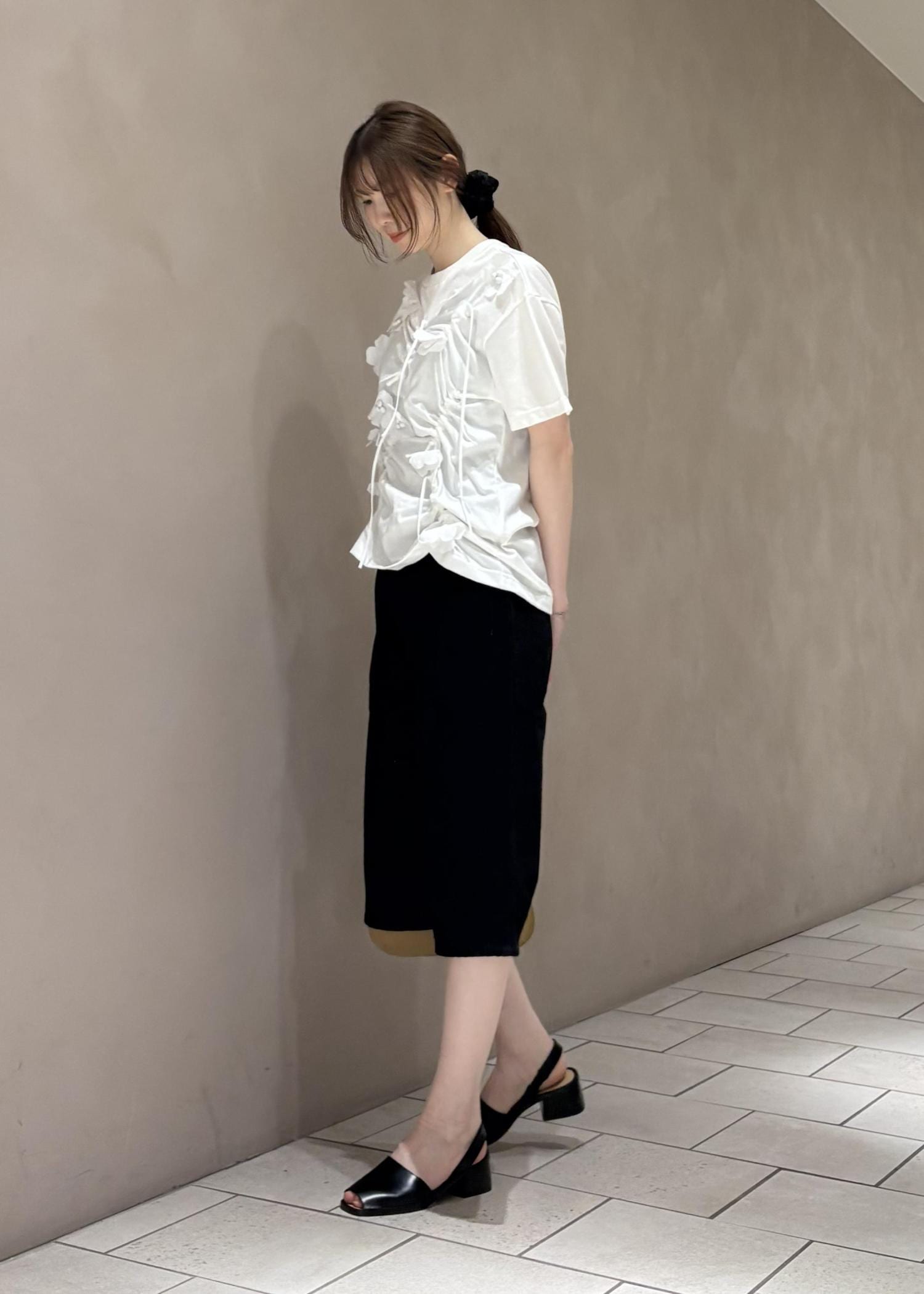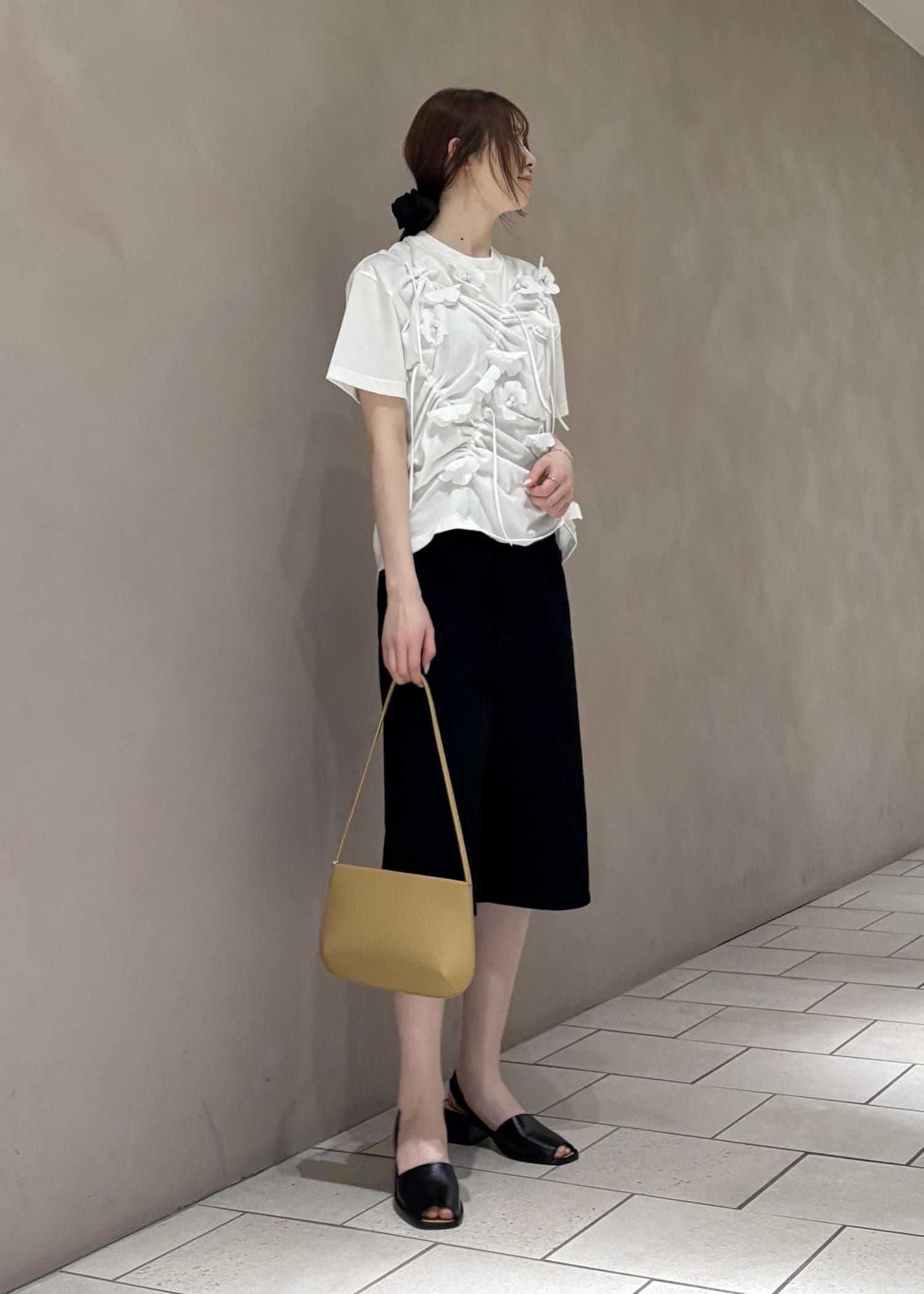 トップスはお花があしらってあるデザインで一枚でコーディネートの主役になってくれます。