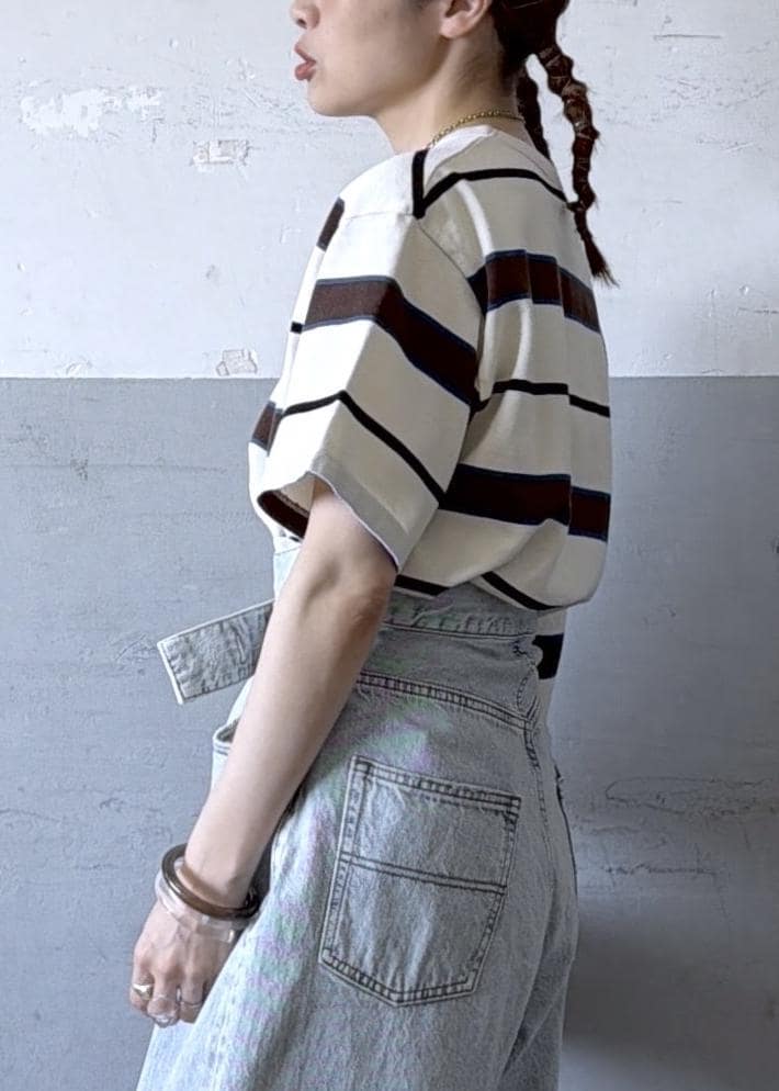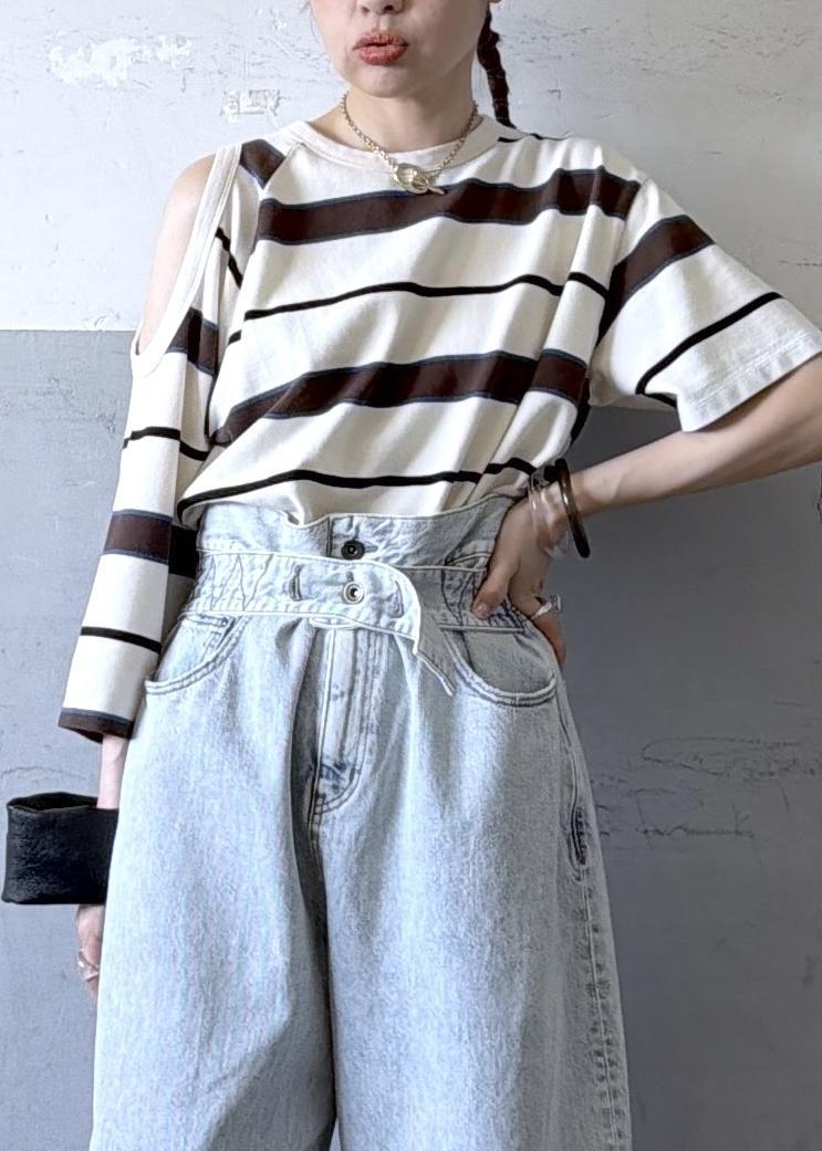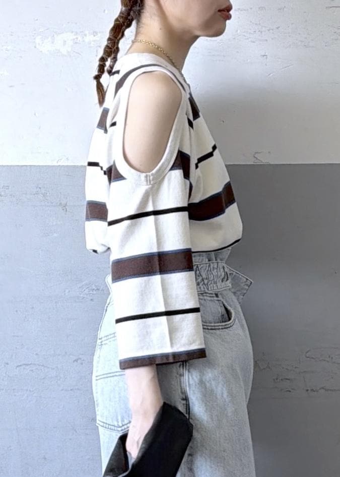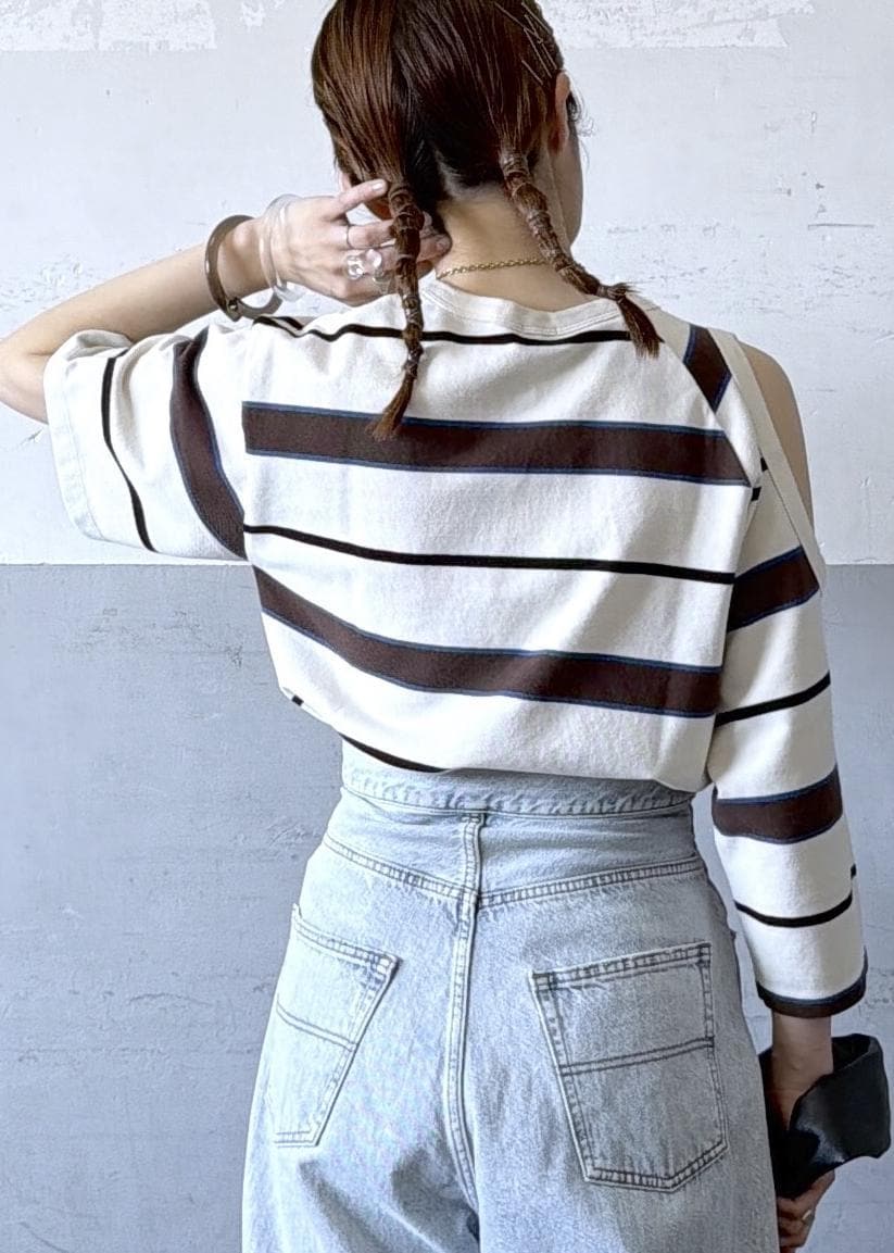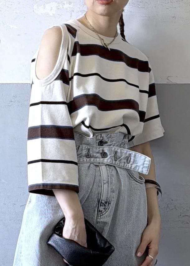 ボーダーでもチラッと肌見せ部分があるだけで女っぽさが出るのがかわいい♡