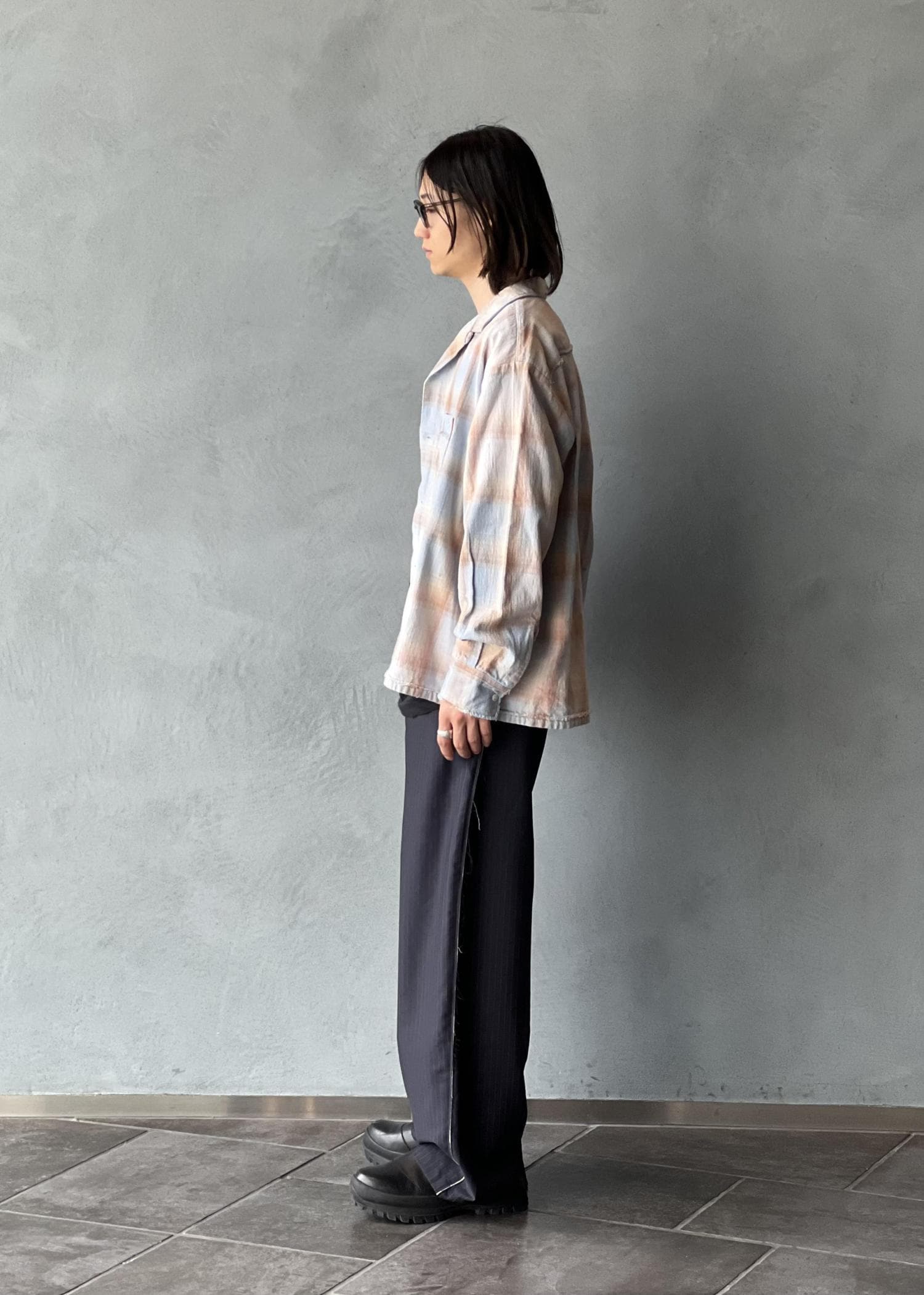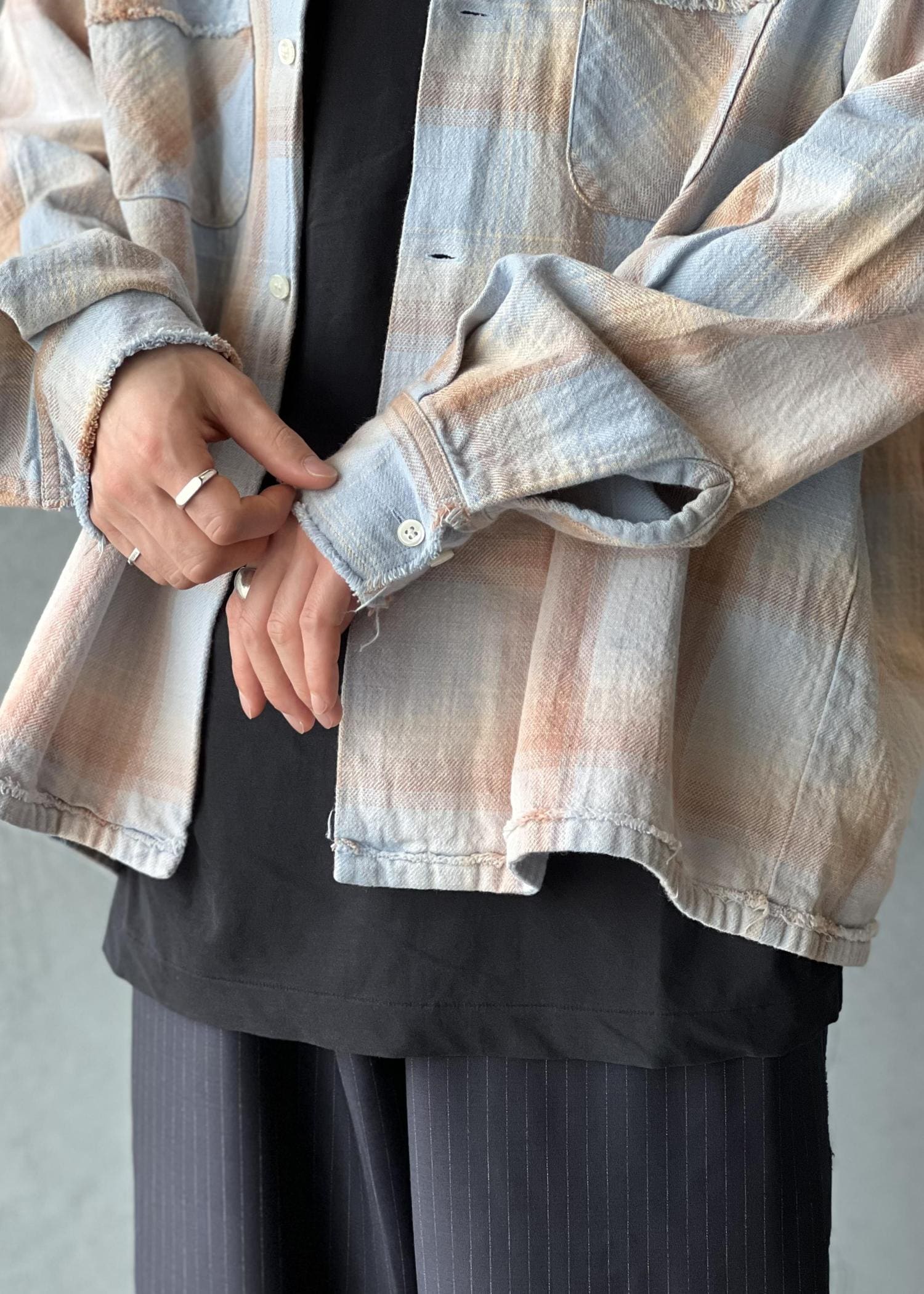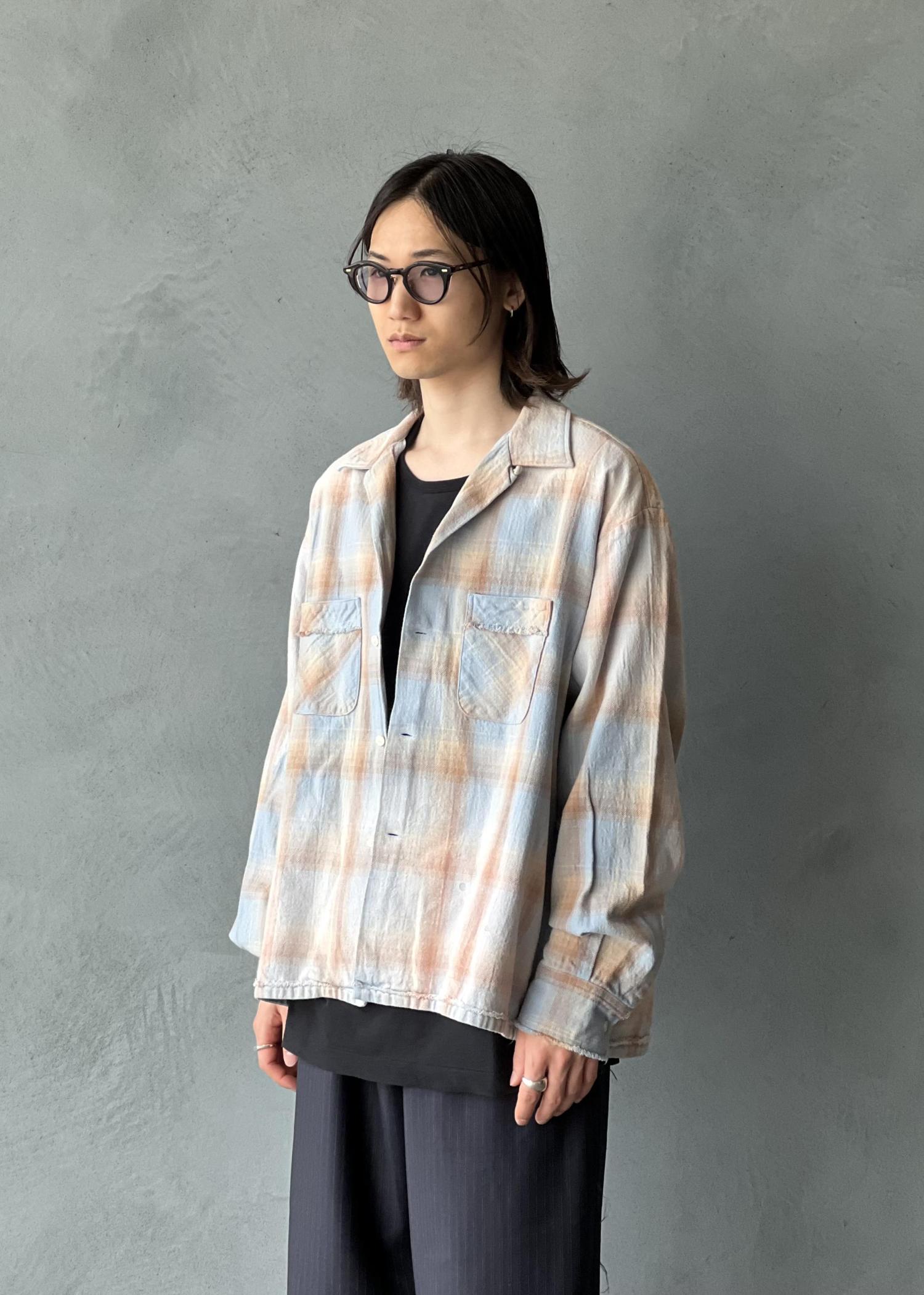 "COTTON FLANNEL PLAID OPEN COLLAR SHIRT : DISTRESSED"