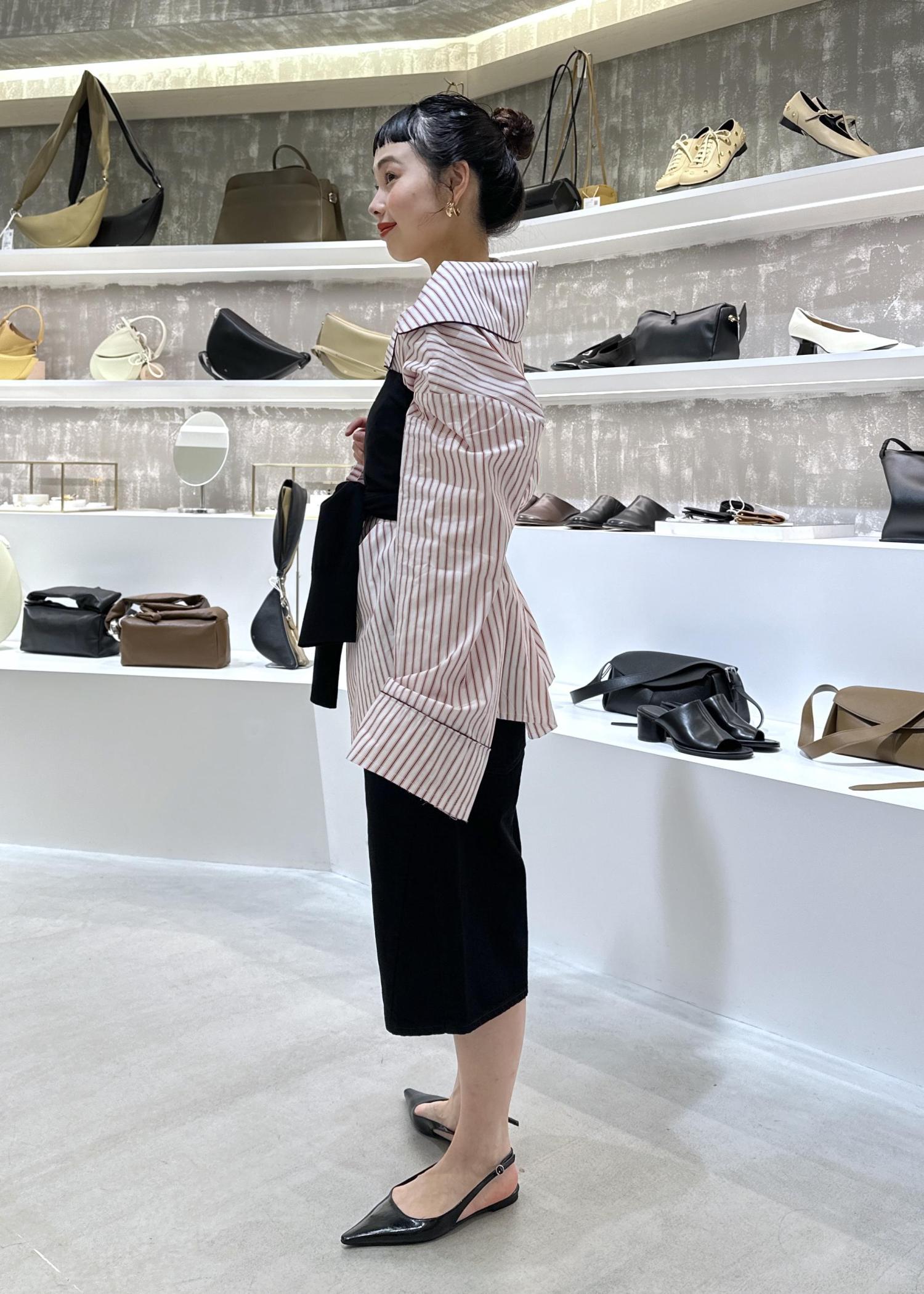 今回はストライプシャツにビスチェを