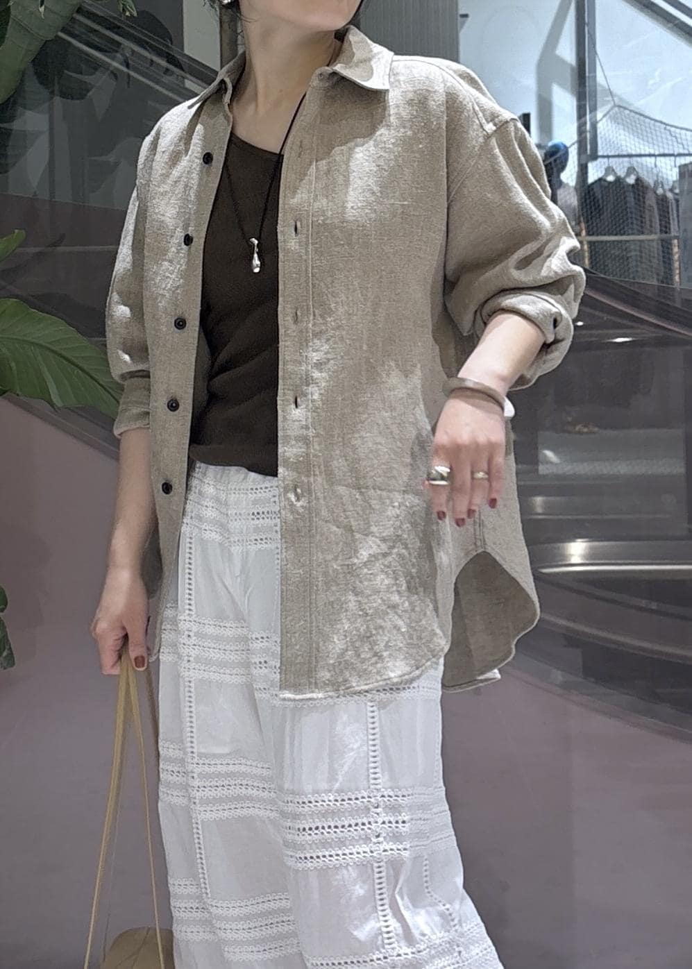 ADAM ET ROPÉ FEMMEリネンシャツベージュ系 / 36¥26,400レビューオーバーサイズで羽織りのようにも使えるアイテム。リネン特有のザラっとした肌触りが夏場にも使いやすいです。ナチュラルな色も合わせやサイト思います♪