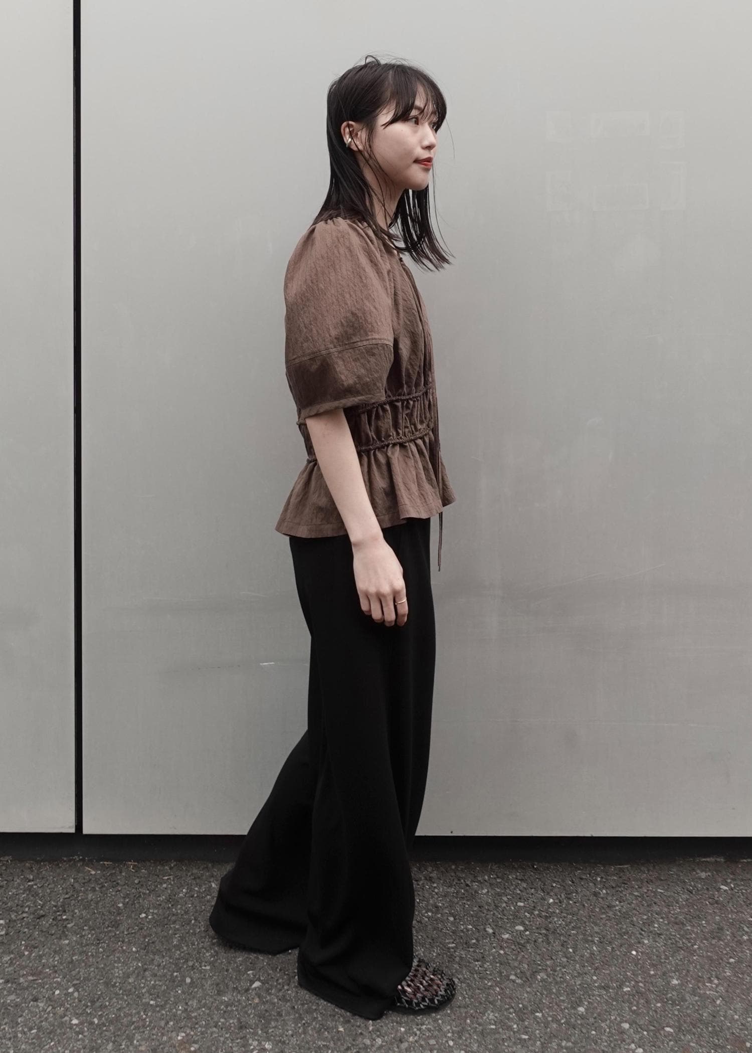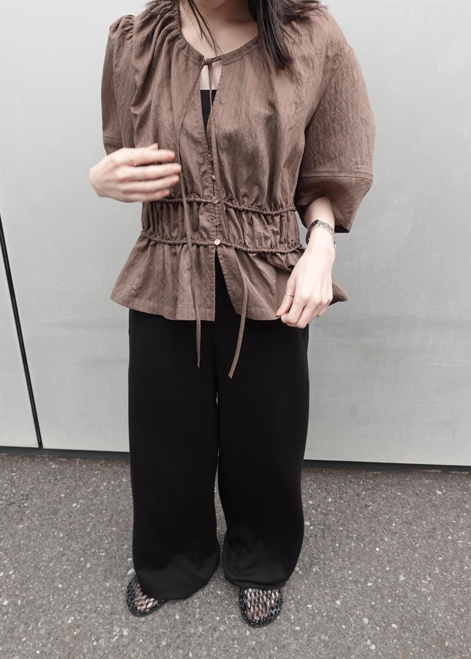 本日はウエストギャザーリボンブラウスを着用いたしました。