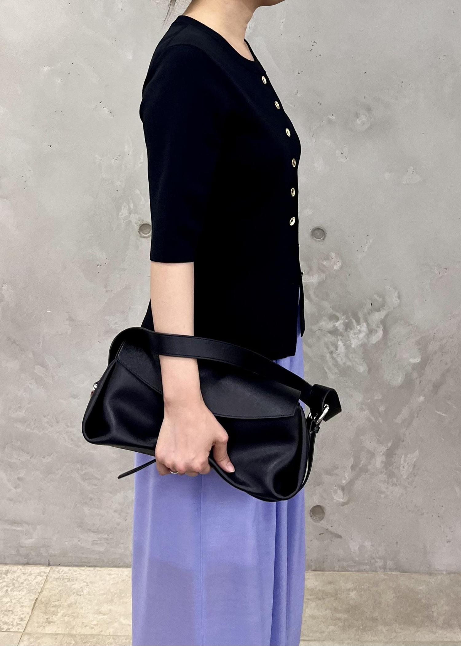 伸縮性がありコンパクトながらも体に程よいゆとりもあるサイズ感なので、体のラインを拾わずキレイに着られます。 -
