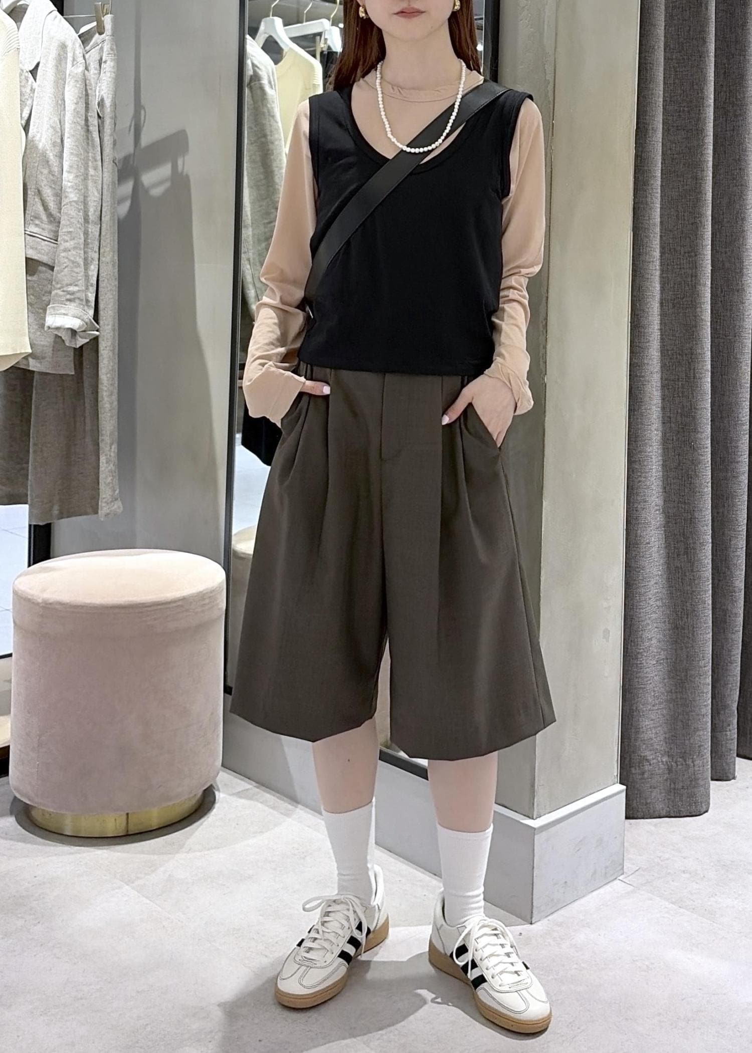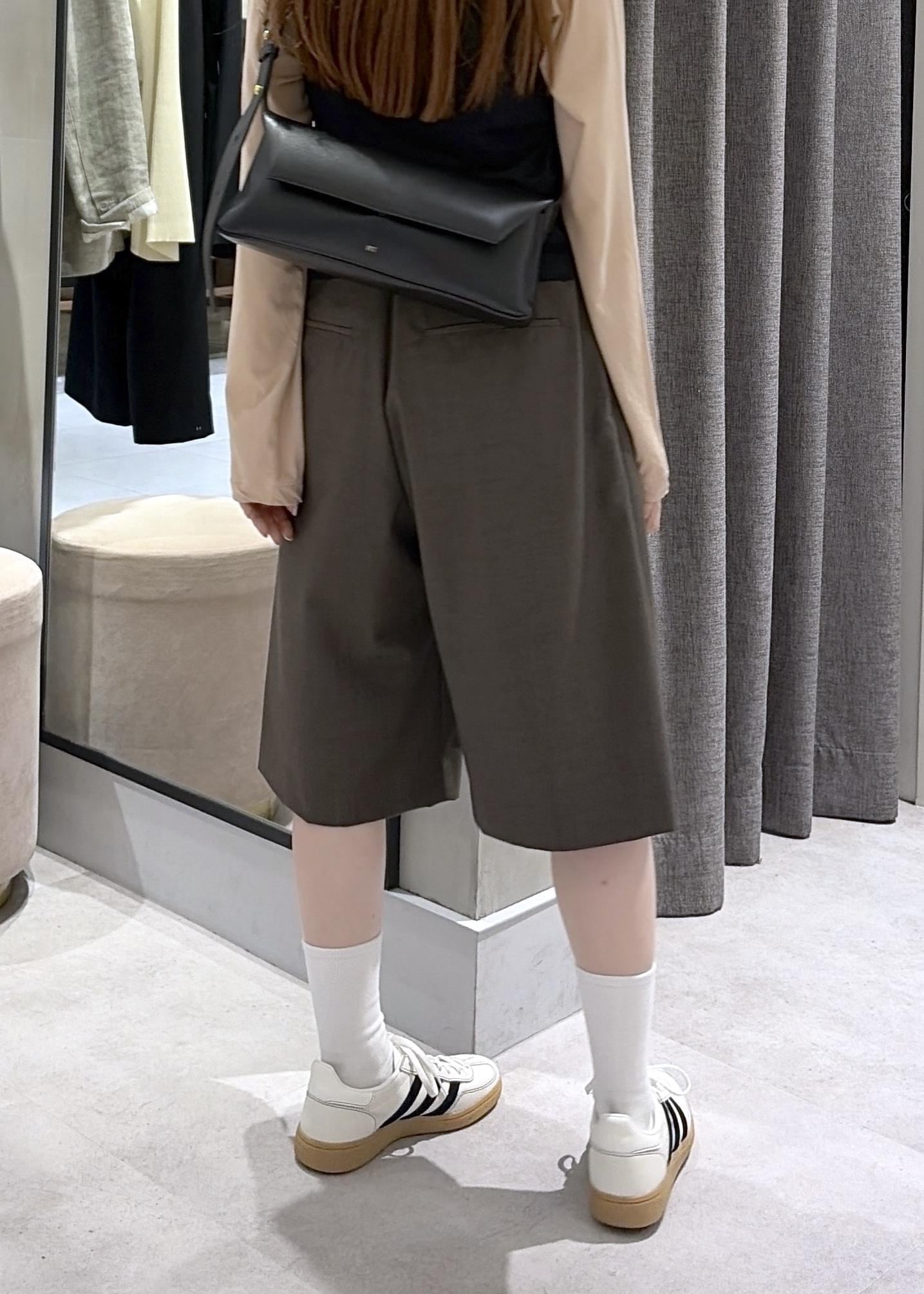 ADAM ET ROPÉ FEMME【サステナブル】アジャストハーフパンツブラウン系 / 36¥19,800レビューウール混で上品な素材感ながら、サラッと肌離れ良く着心地も抜群です。ウエストのボタンでサイズ調整が可能です◎膝が隠れる長さも嬉しいポイント。
