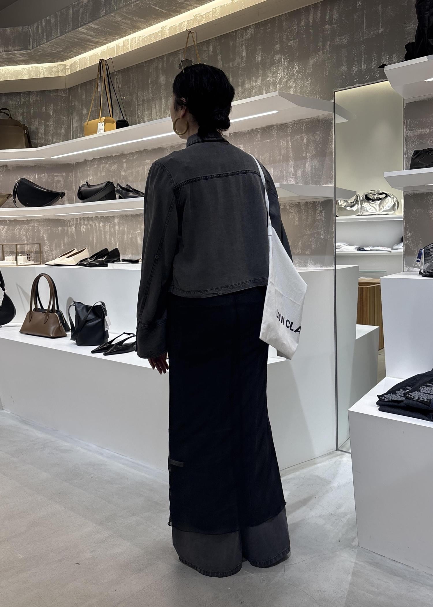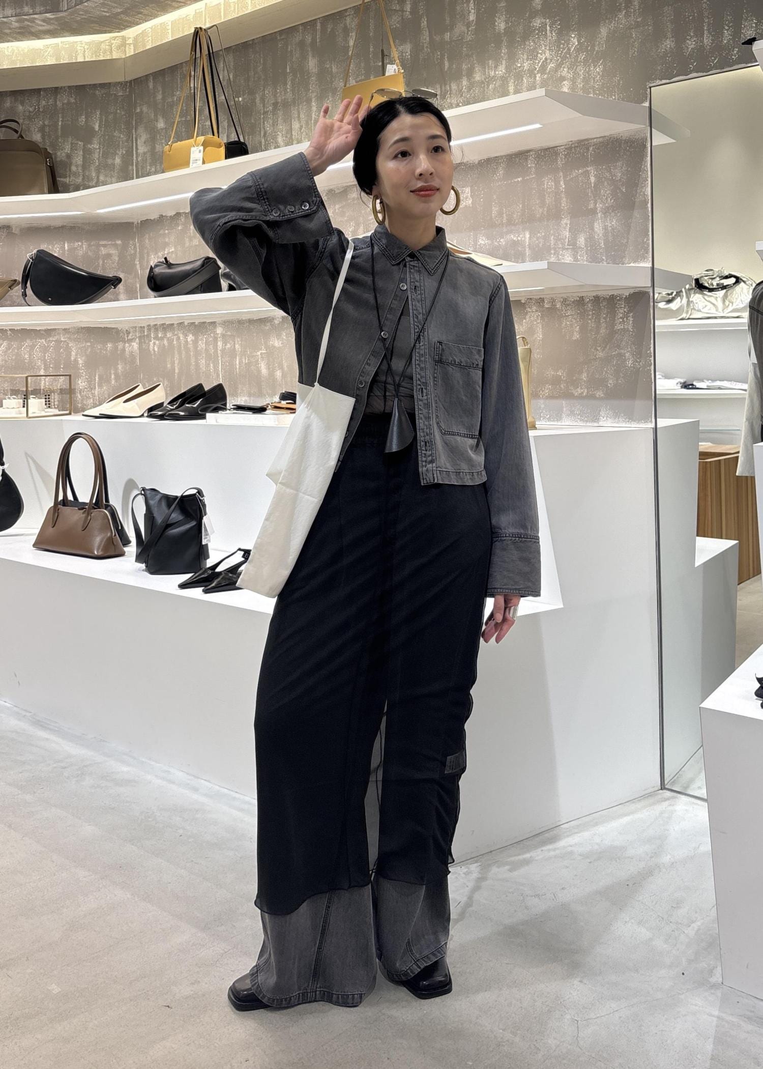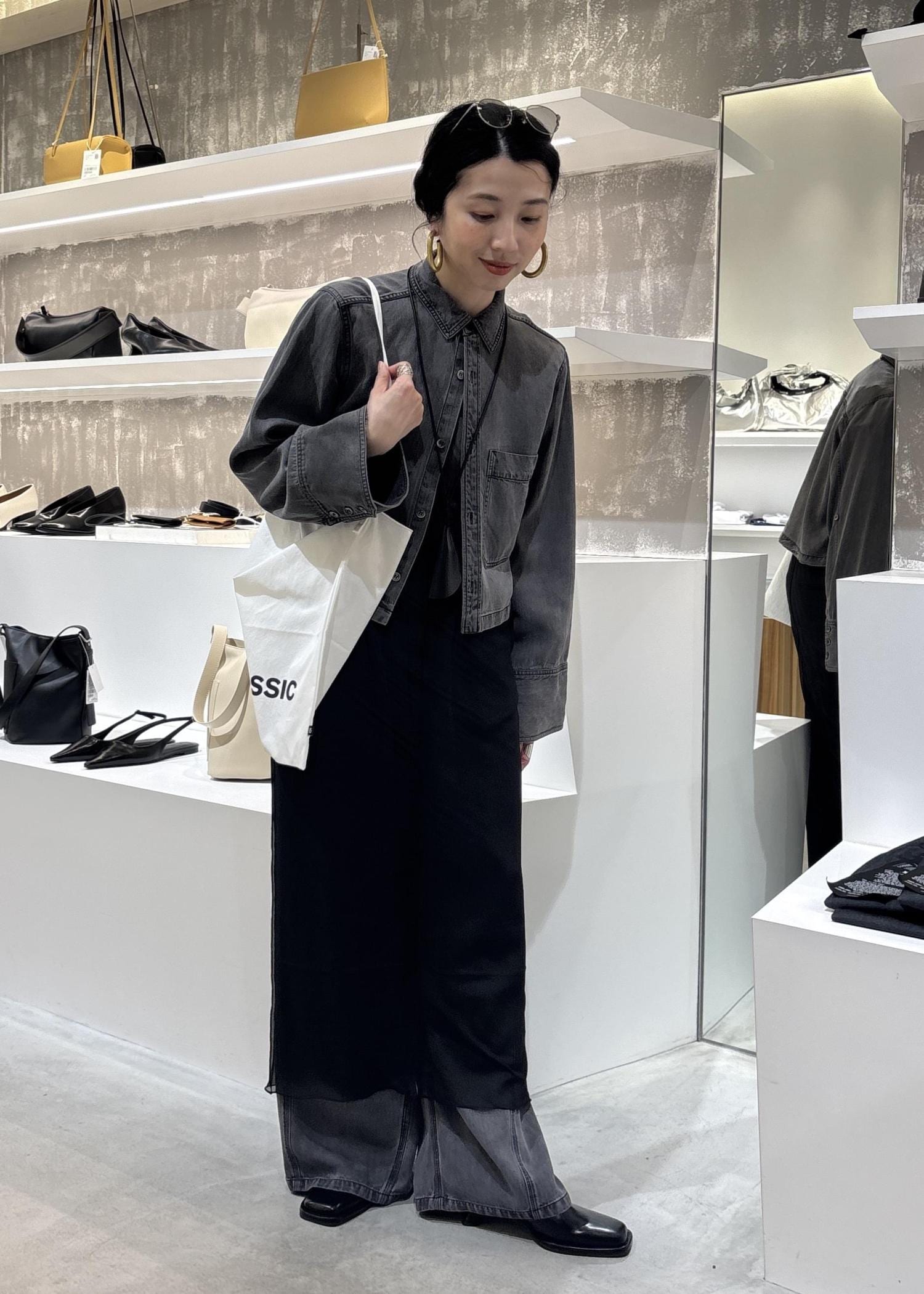 今回はデニムシャツのセットアップにシアーワンピースをレイヤードし、アレンジしてみました!