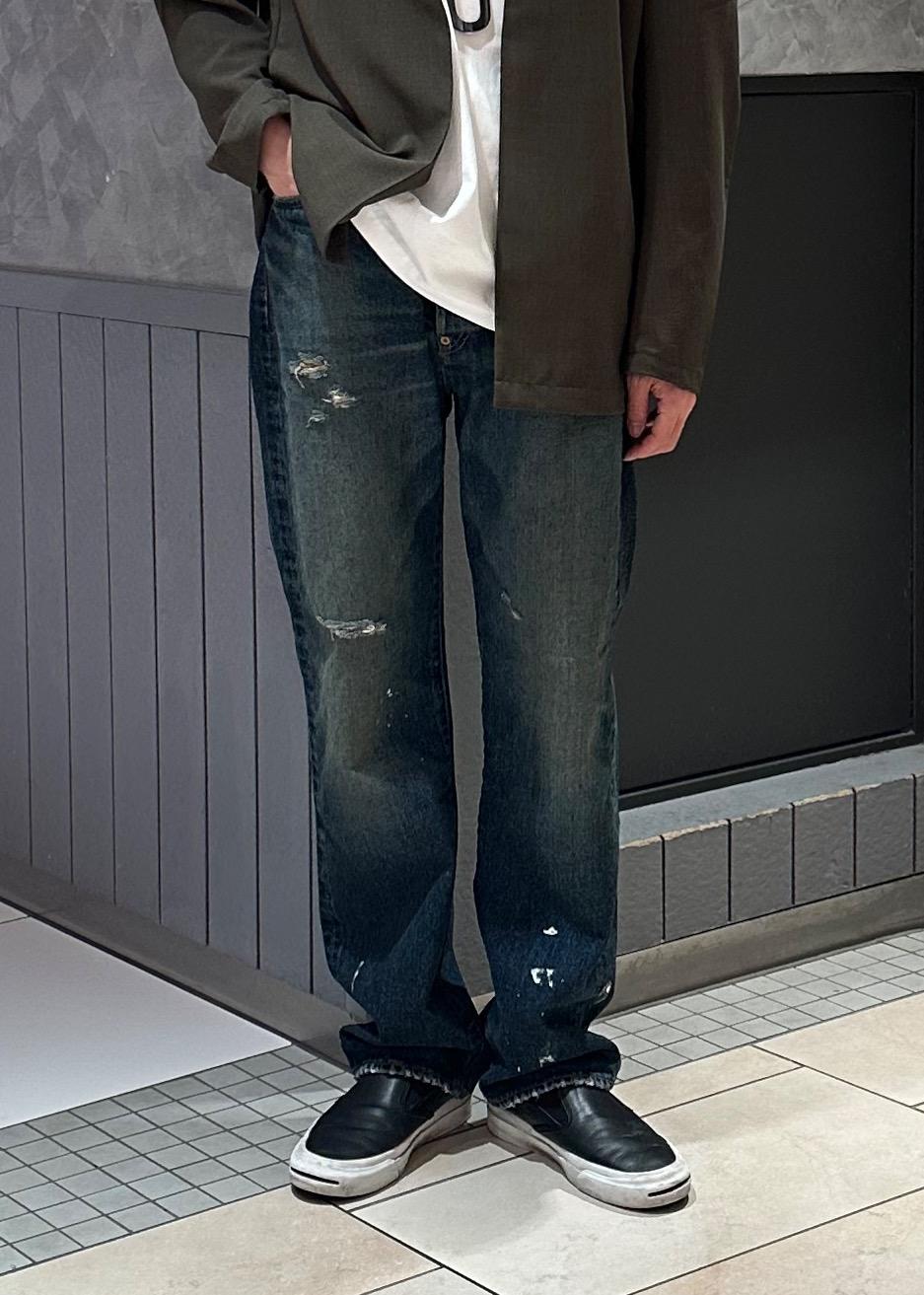 ヴィンテージの Levi’s 501(XX・BIG-E)を再現し、色落ちやダメージ、土落ち加工までリアルに表現。岡山製のセルビッジデニムを使用した、こだわりの一本。 -