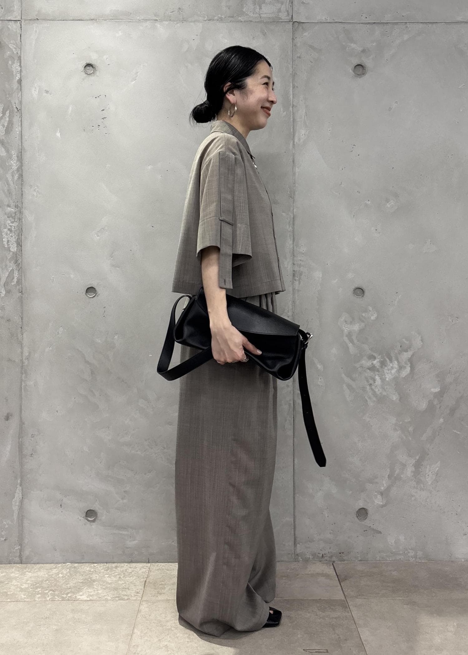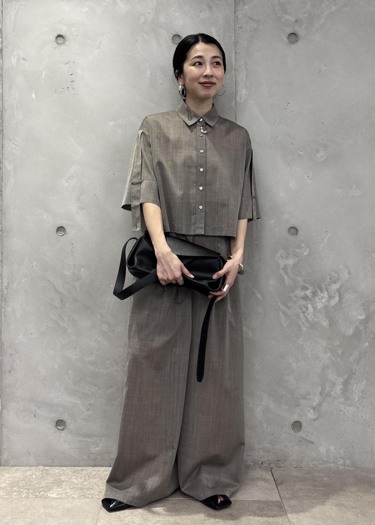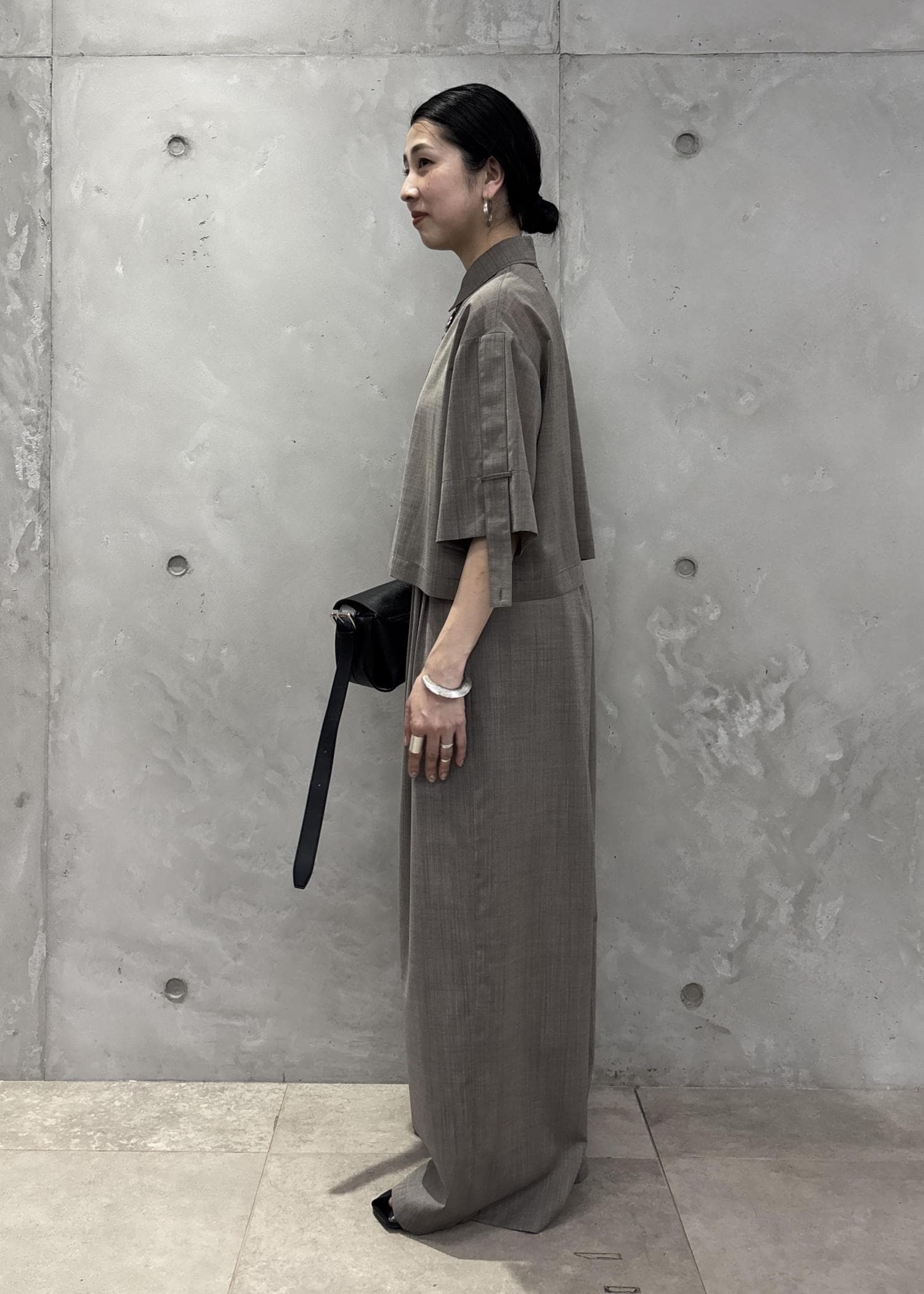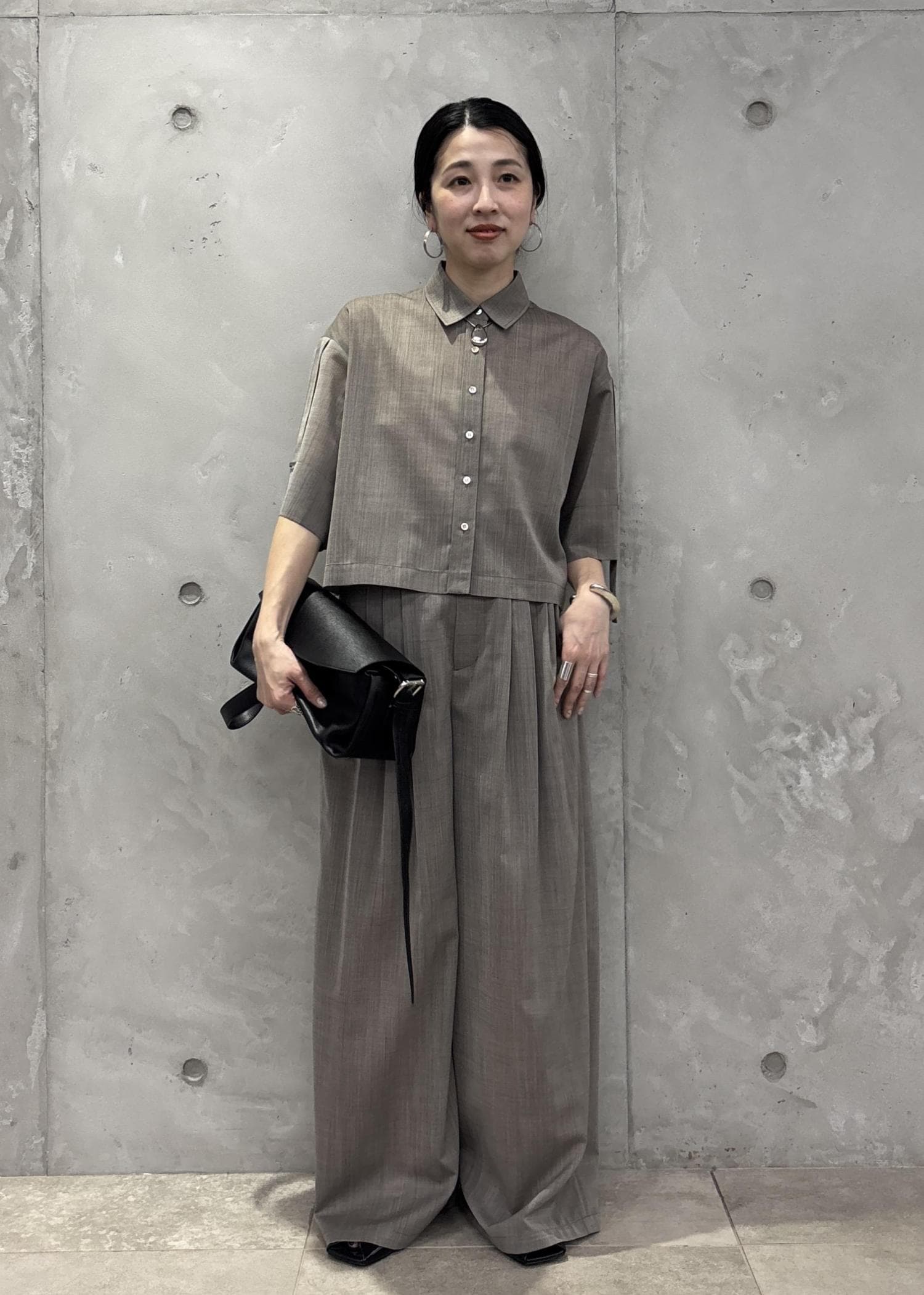 セットアップで合わせ、きちんと感。アクセサリーもキレイめにすっきりとまとめてみました!