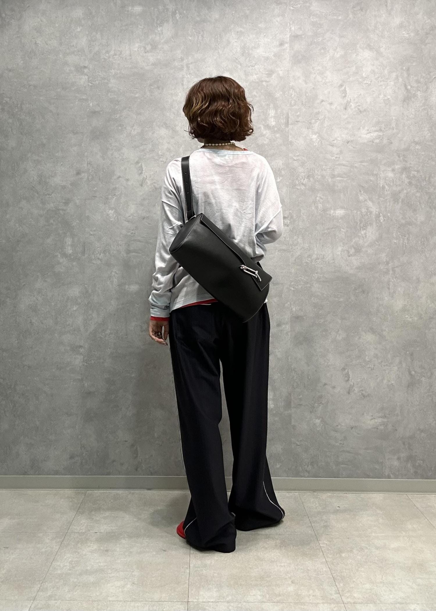 ADAM ET ROPÉ FEMME【TAD FAB(タッド ファブ)】SOFTIE MAXIブラック / F¥77,550レビューシルバーの留め具がワンポイントの大きめバッグ。長さが調整できるため、肩掛けでも斜め掛けでも使えます◎サイズは大きめですが、角張っていないため柔らかい印象があり使いやすいです。