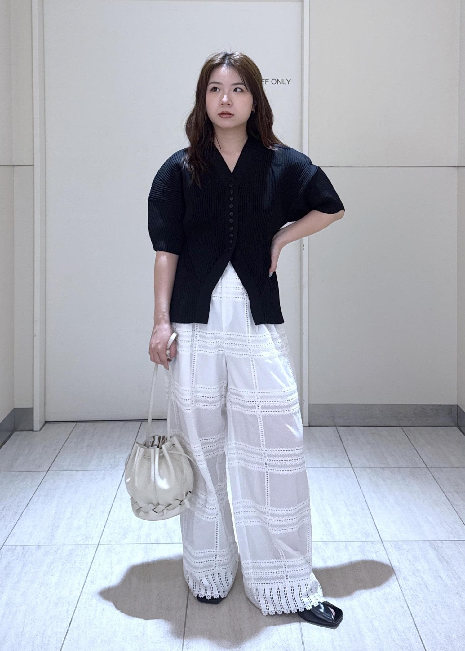 白は若干透け感がありますので、中に合わせる下着は注意が必要です! -