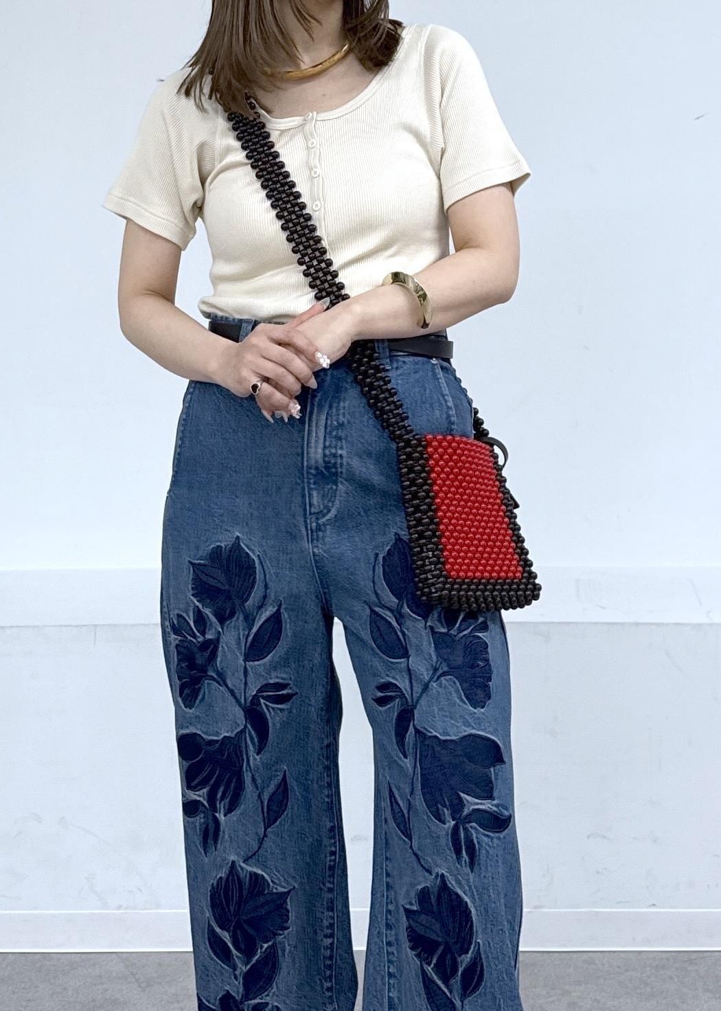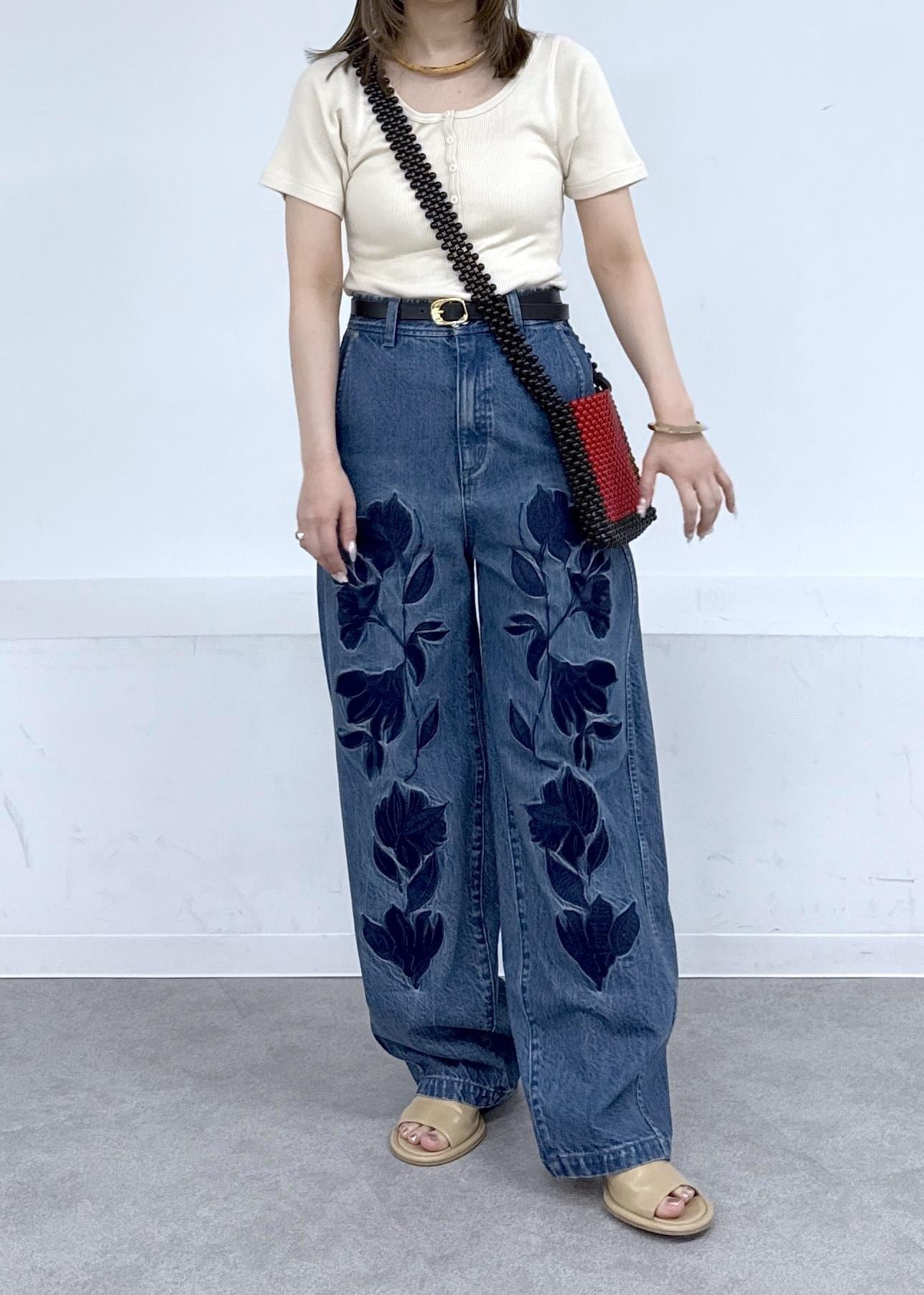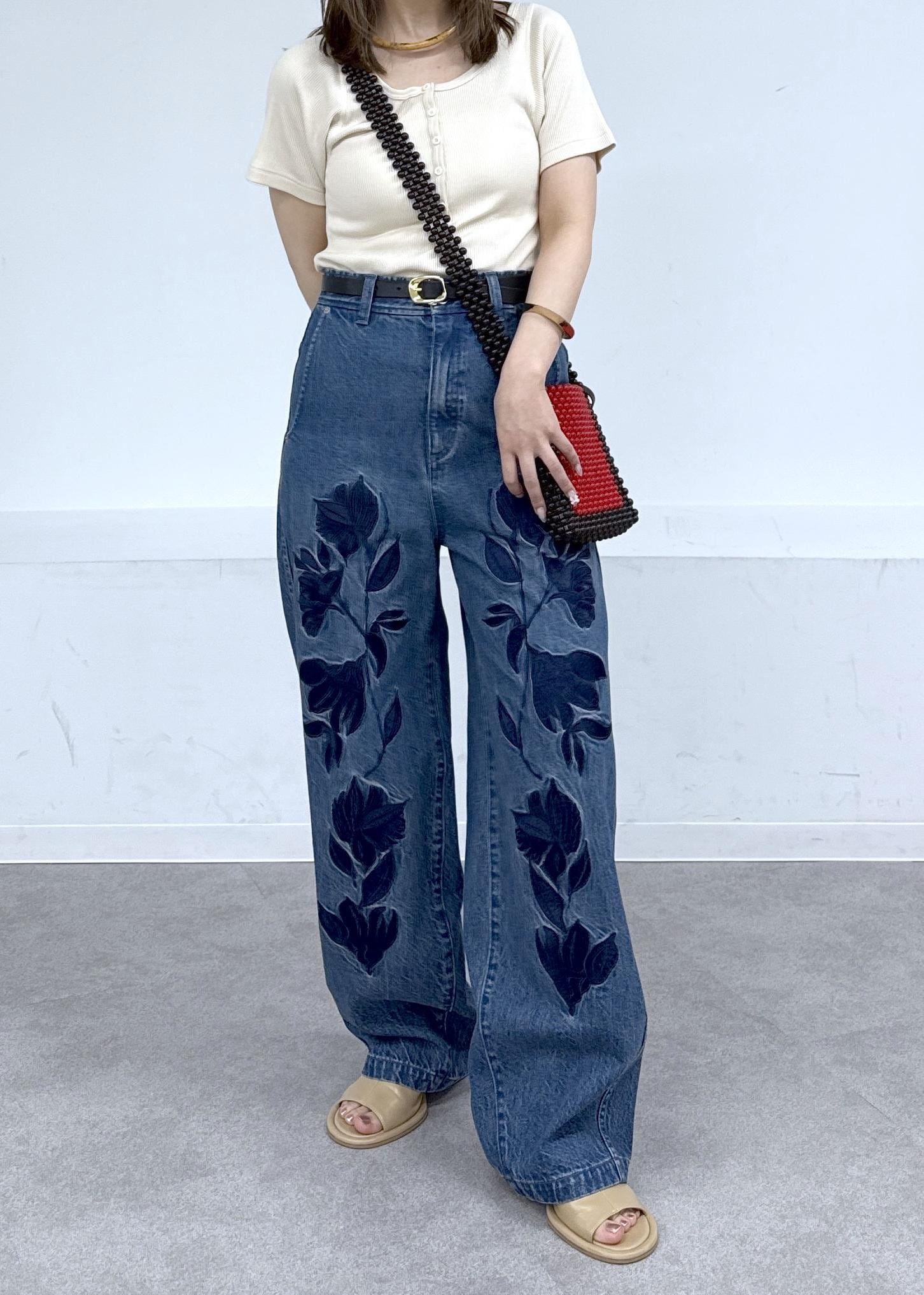 存在感のあるデニムなのでトップスはシンプルに♪