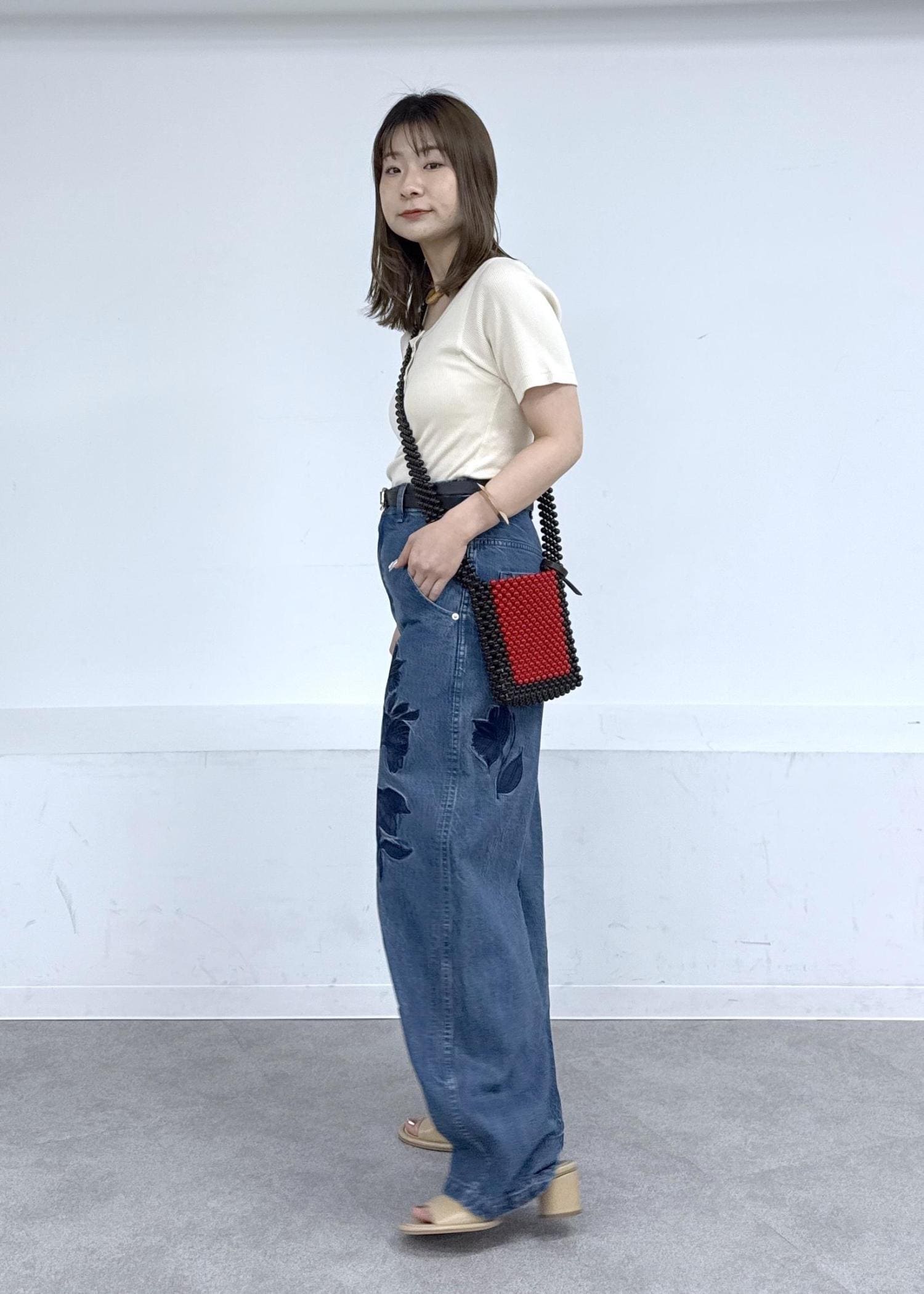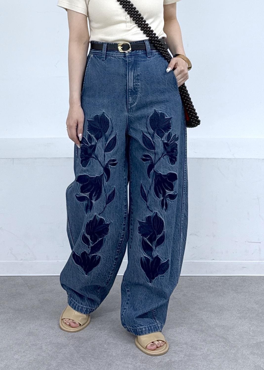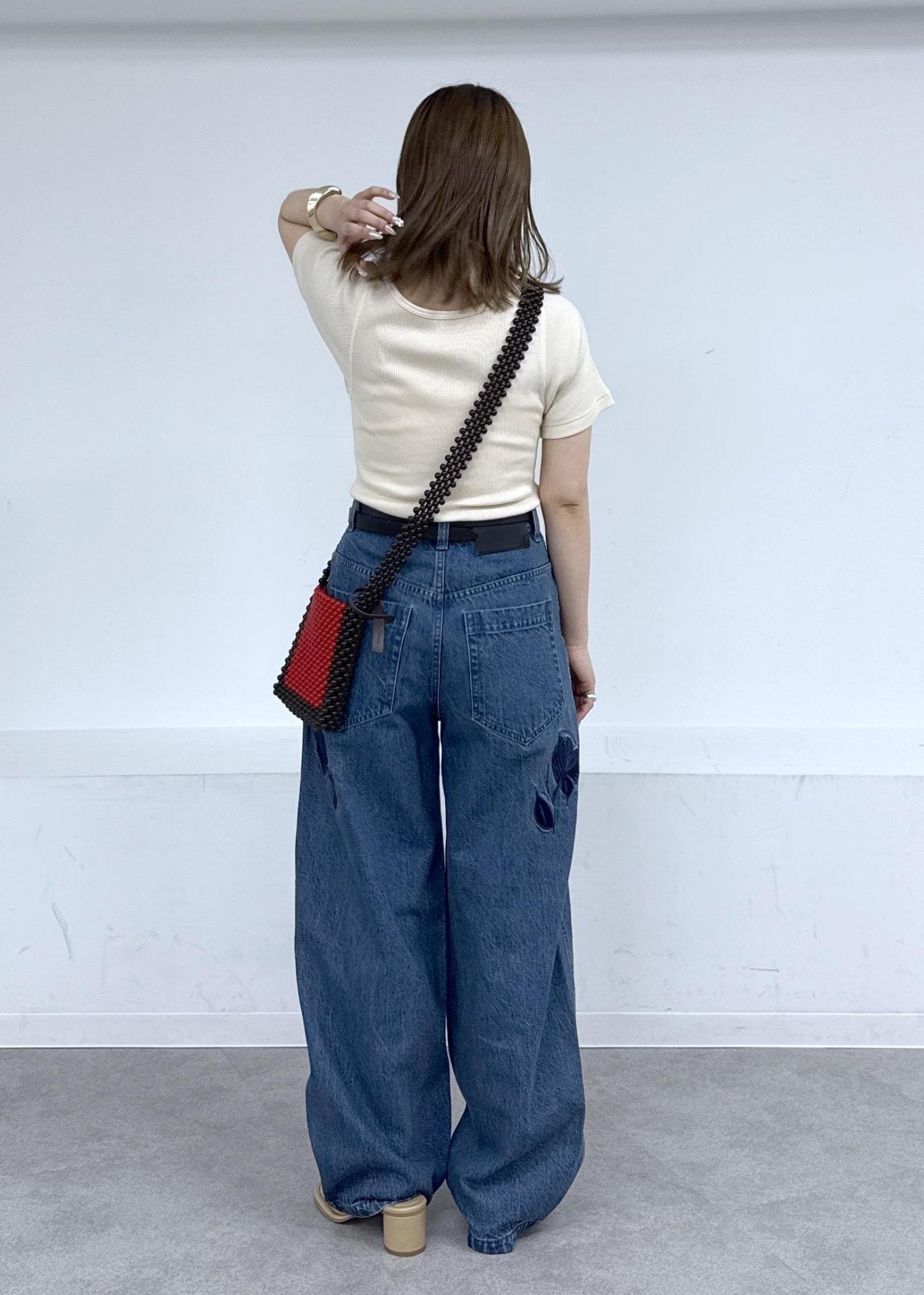存在感のあるデニムなのでトップスはシンプルに♪