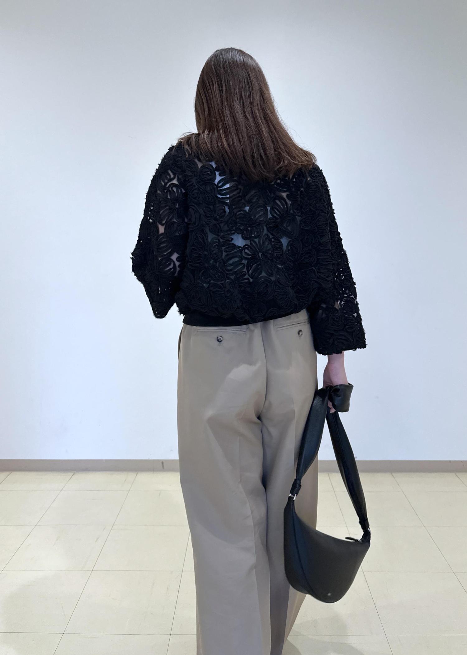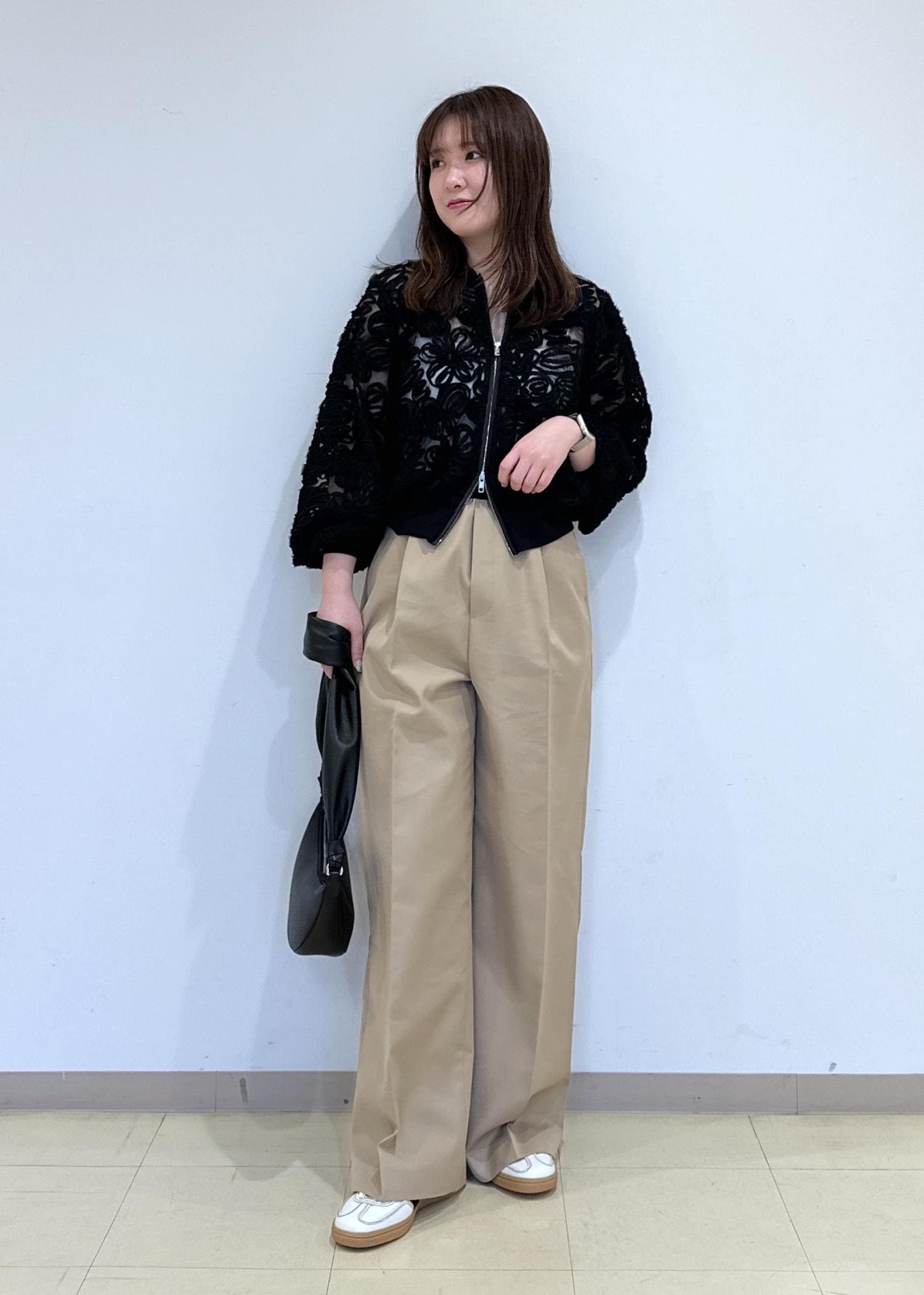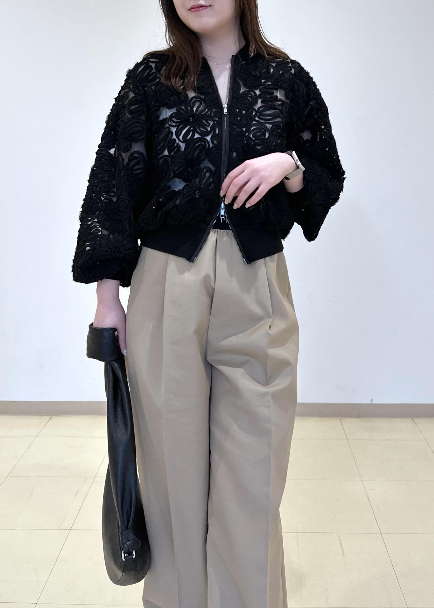 ADAM ET ROPÉ FEMMEラインアートレースブルゾンブラック / F¥19,800レビューラインアートが可愛い透け感のあるブルゾン。1枚で着ても、羽織でも映えてくれるアイテムです:)