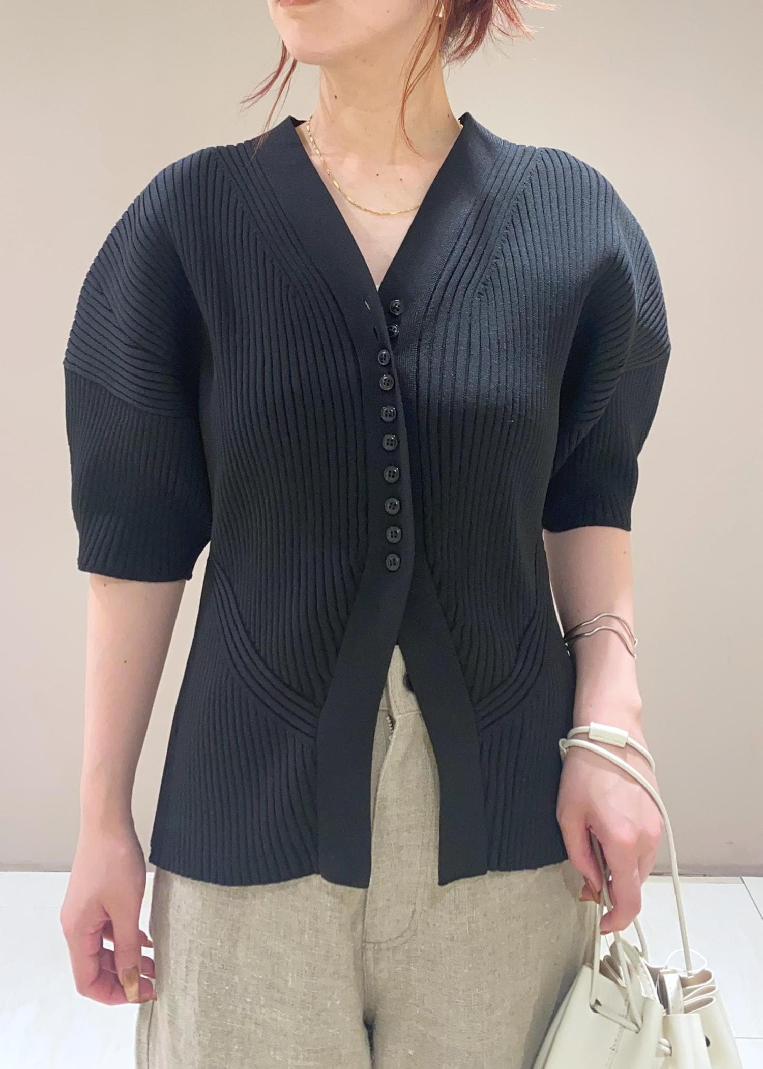 ADAM ET ROPÉ FEMME【サステナブル】フォルムニットカーディガンブラック / F¥16,500レビューパフスリーブが可愛いニットカーディガンです。