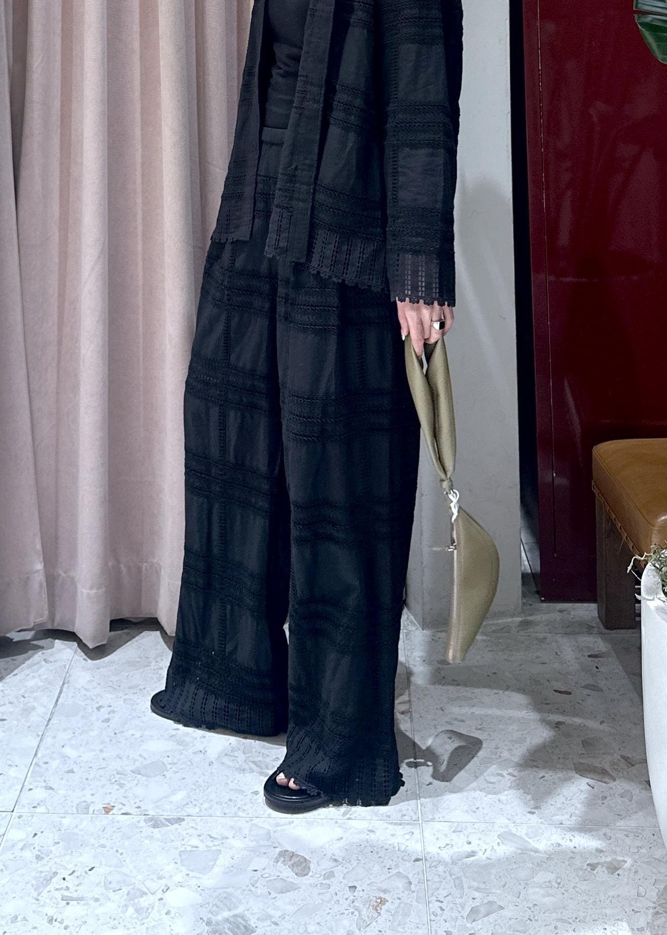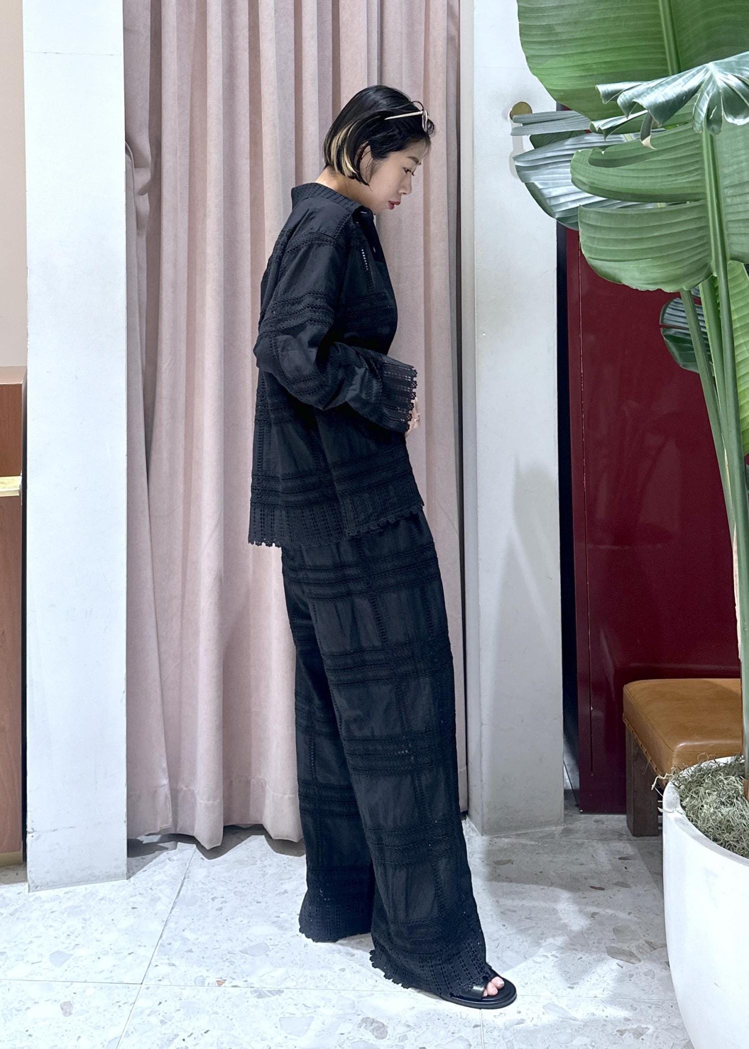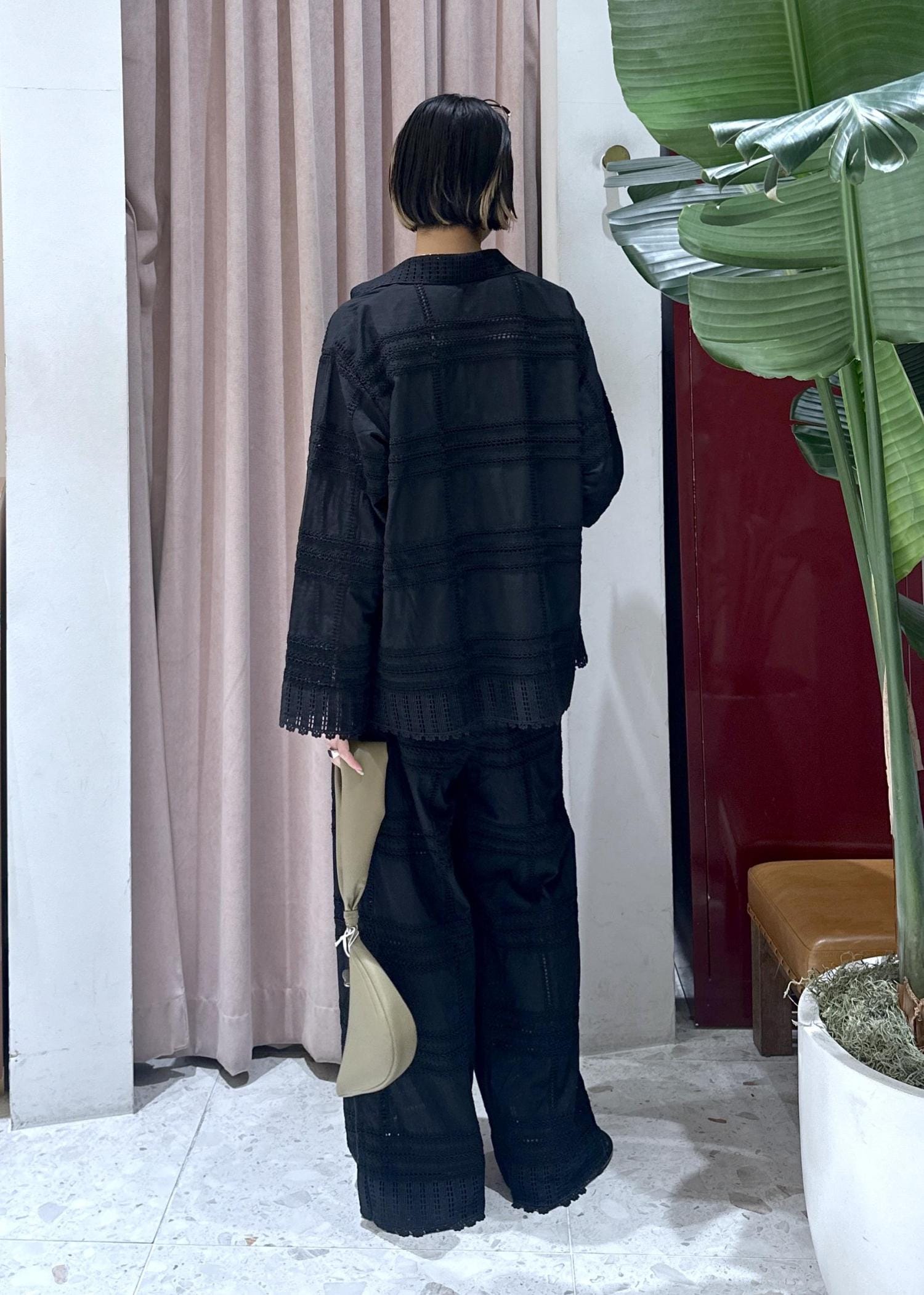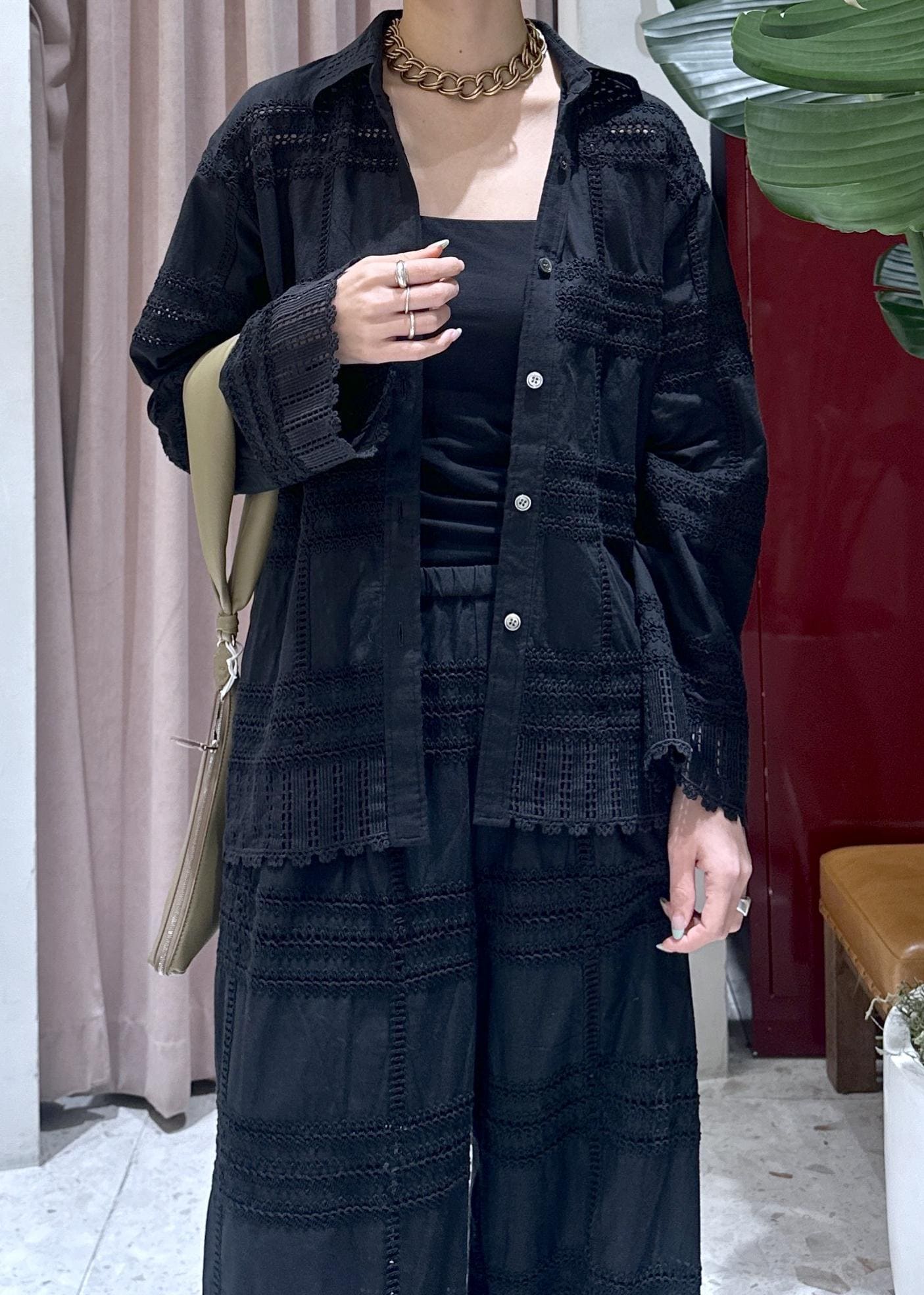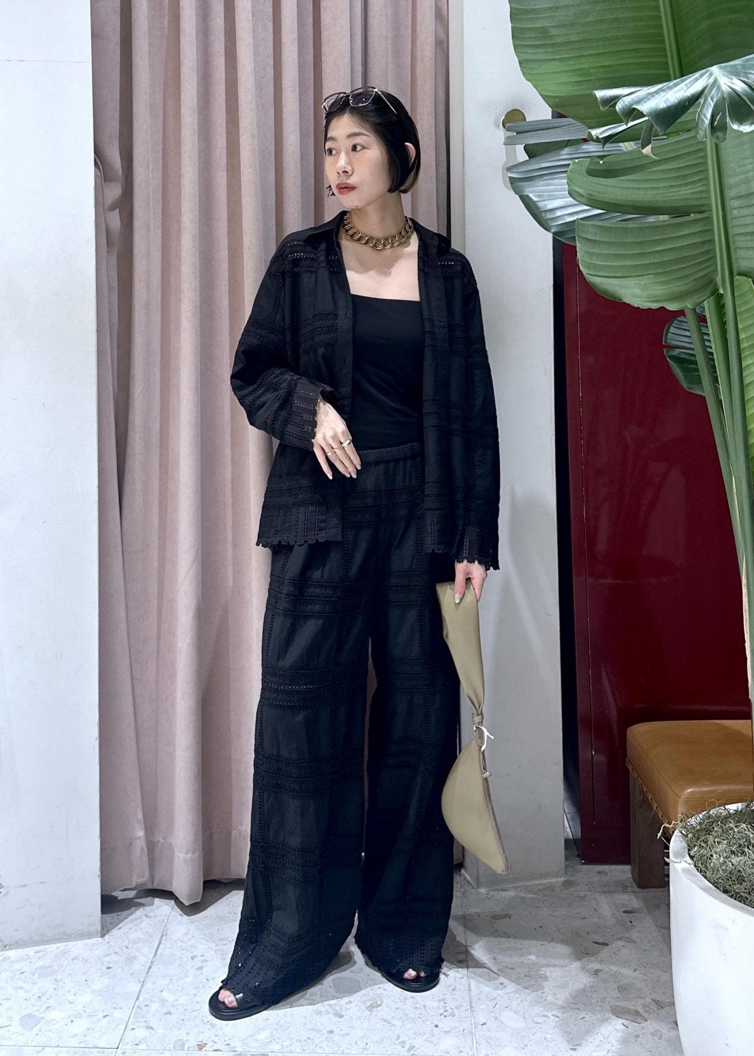 レース=甘い印象がありますが、黒だと特に大人っぽく合わせていただけます◎
