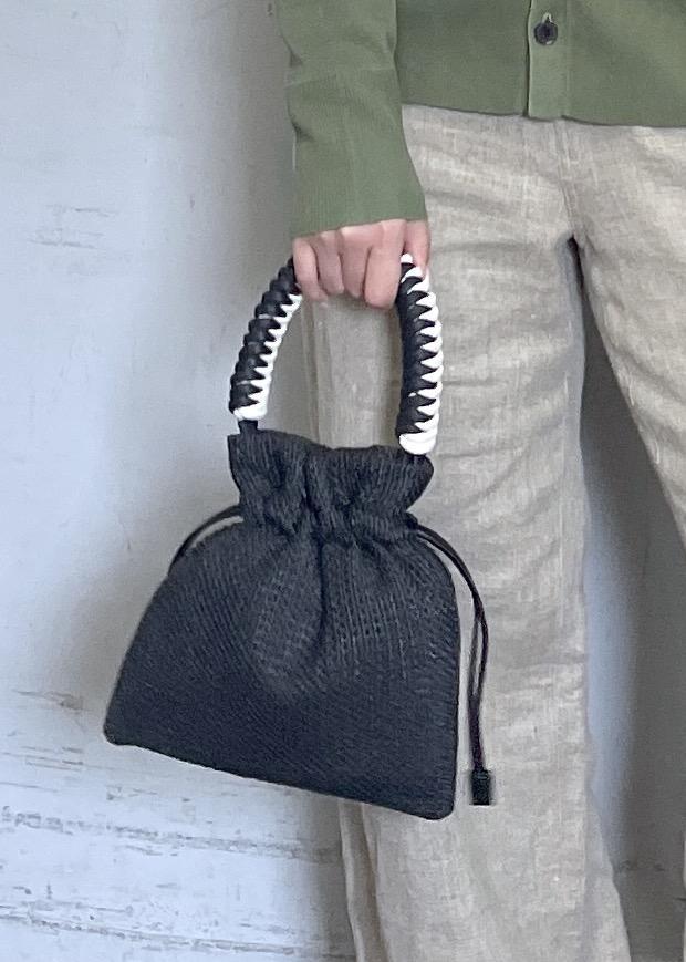 ADAM ET ROPÉ FEMMEブレイドハンドル巾着バッグブラック / F¥9,900レビュー持つだけでコーディネートのアクセントになり、シンプルなスタイリングを引き締めてくれます。携帯も入ります。