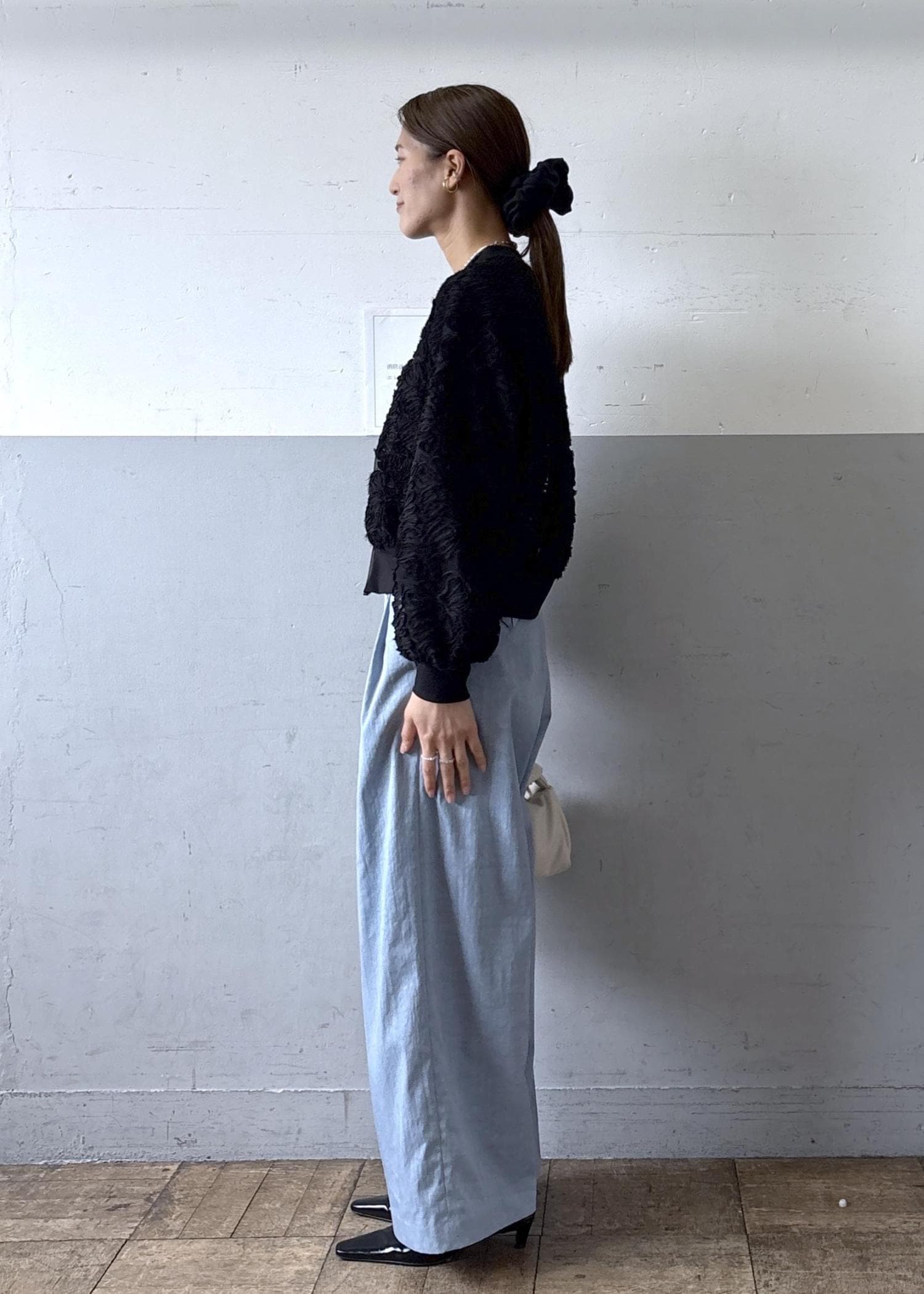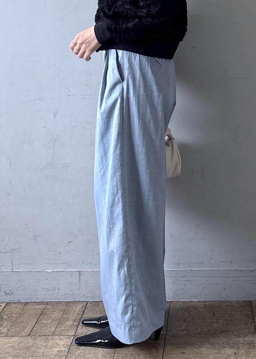 私はシンプルにドレスパンツと合わせてコーディネートしてみました。