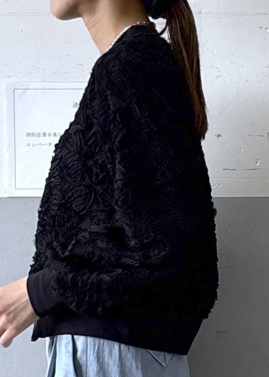 生地は透け感もあり、軽い素材感なのでカーディガン感覚でお召し頂けるアイテムかと思います。