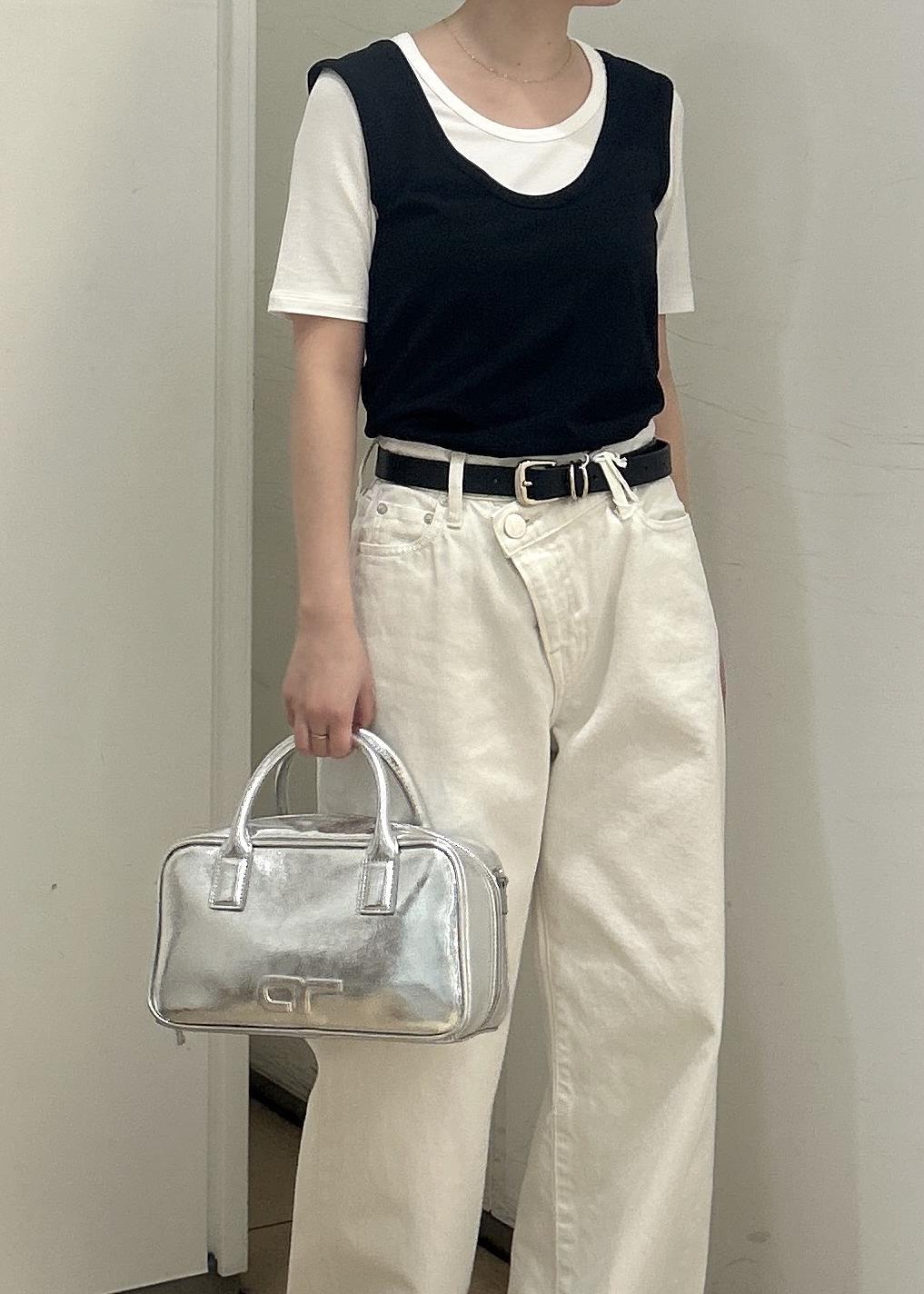 ADAM ET ROPÉ FEMME【サステナブル】ロゴスクエアボストンバッグシルバー / F¥11,000レビュー横に長いので、長財布や折りたたみ傘、ペットボトルも入ります!