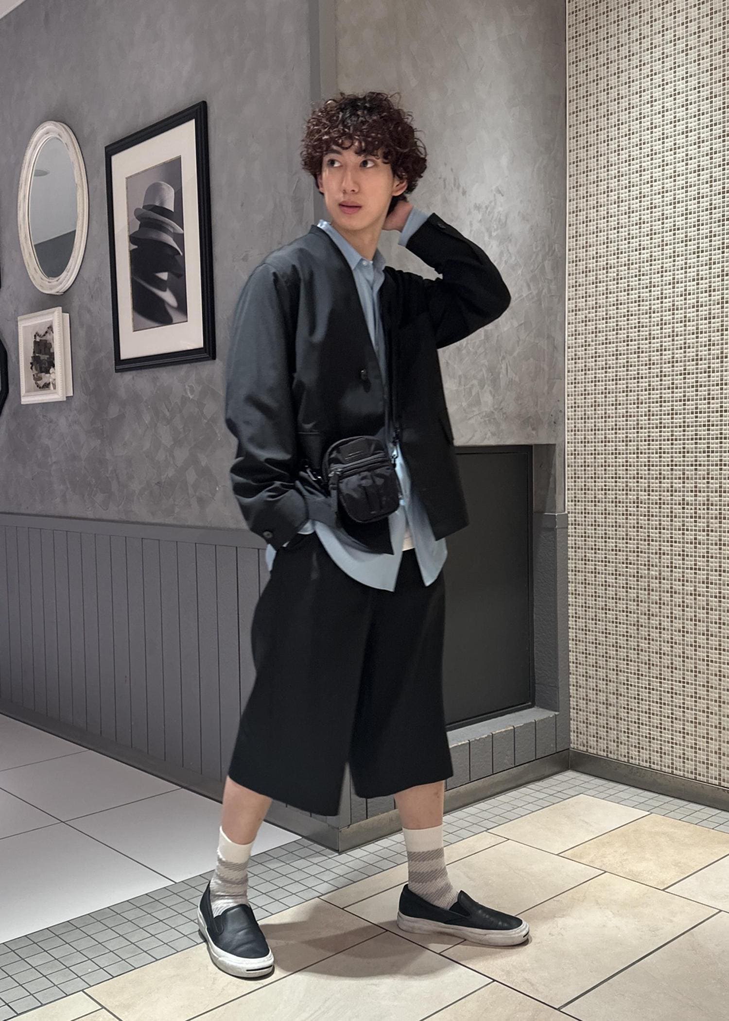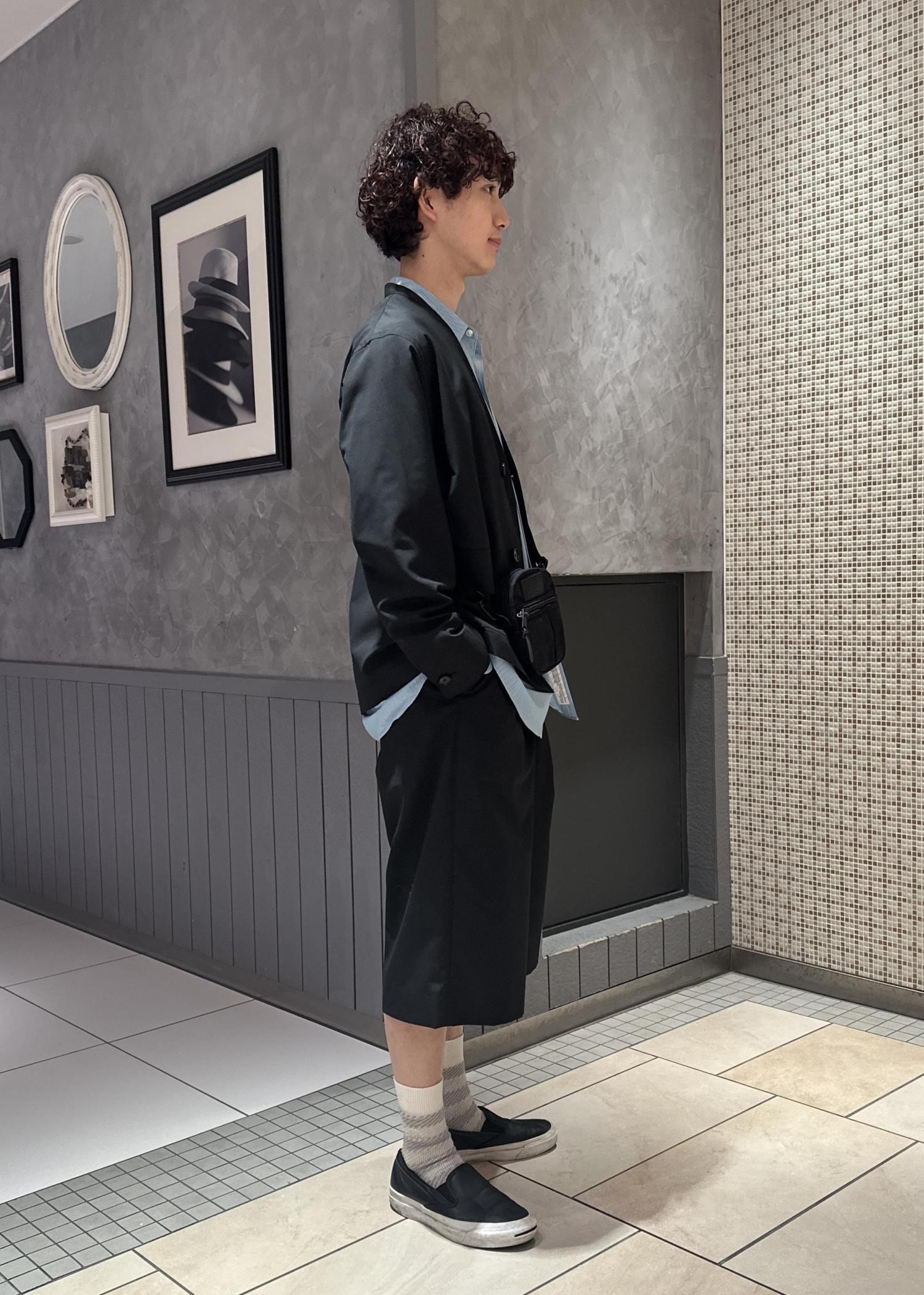ADAM ET ROPÉ HOMMEドライウーステッドワイドショートスラックスブラック / M¥23,100レビュー178cm、痩せ型、骨格ウェーブでMサイズを着用しています。