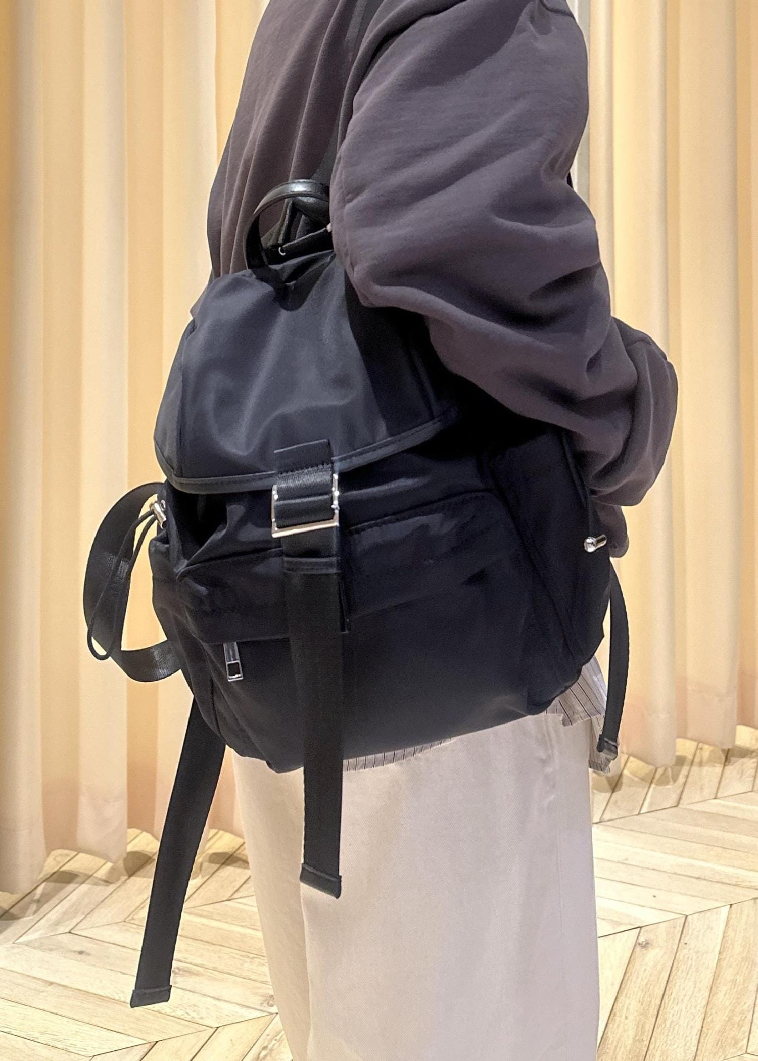 ADAM ET ROPÉ FEMMEフラップベルトミディアムリュックブラック / F¥16,500レビューコンパクトで持ちやすく、沢山収納できるミニリュックです!シンプルなデザインなので