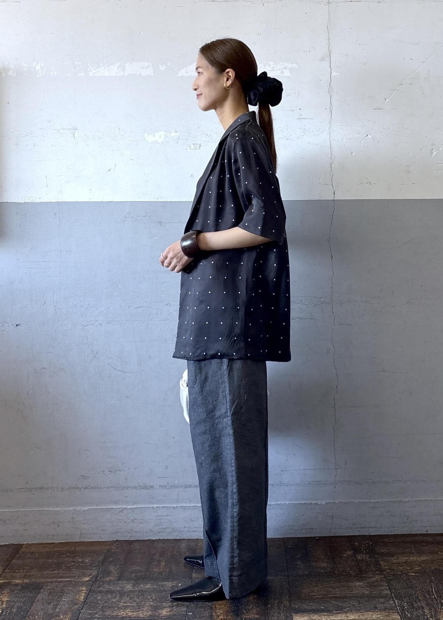 ドット柄でコーディネートの主役アイテムとしておすすめです! -